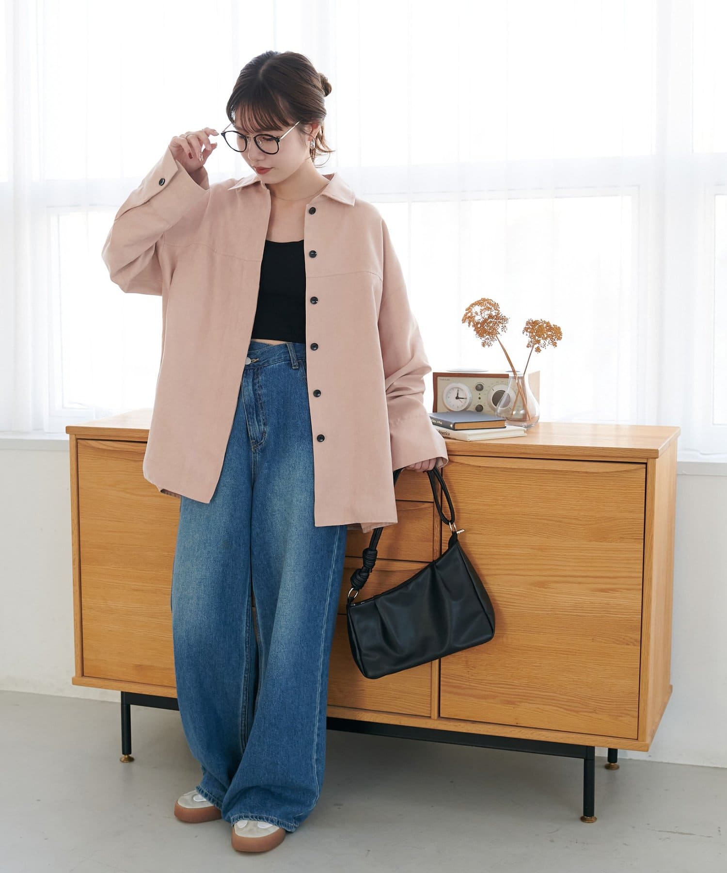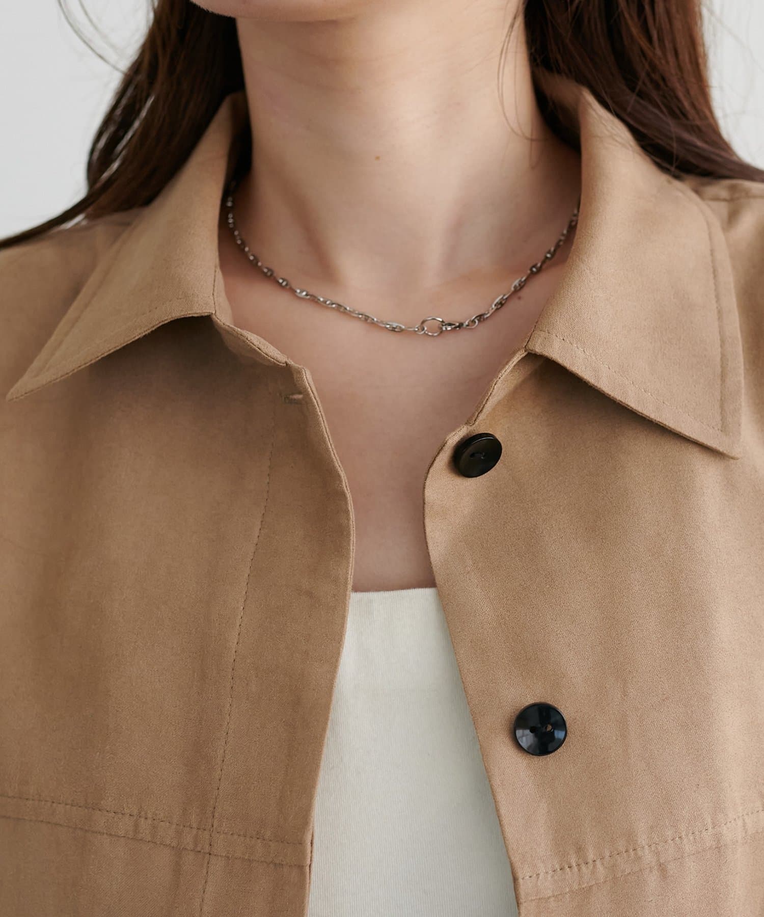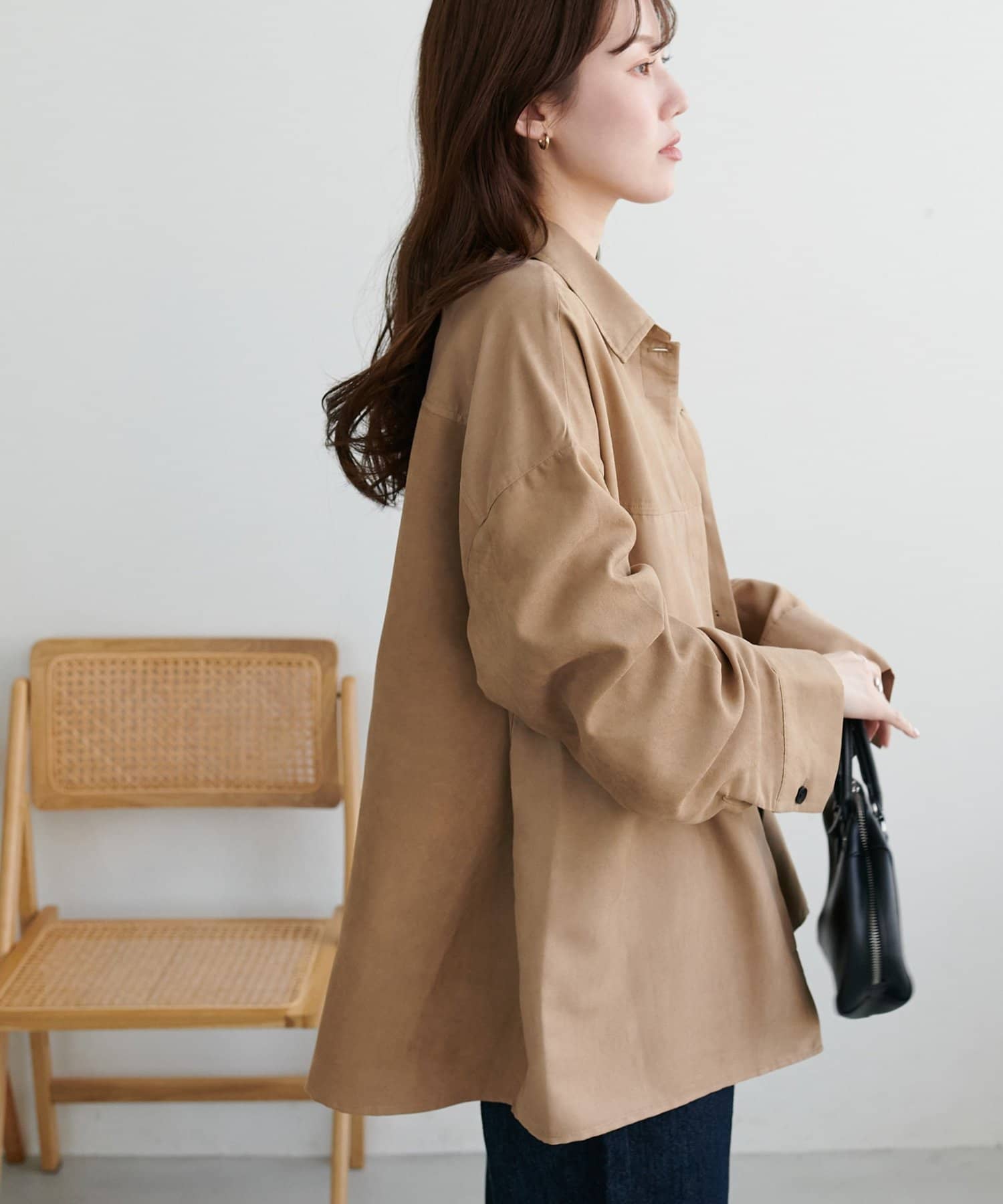 157cmスタッフ:程よいゆとりがあり、中にインナーを合わせてももたつきません。フェイクスエードの上品な質感で、カジュアルにもきれいめにも使える万能アイテム!