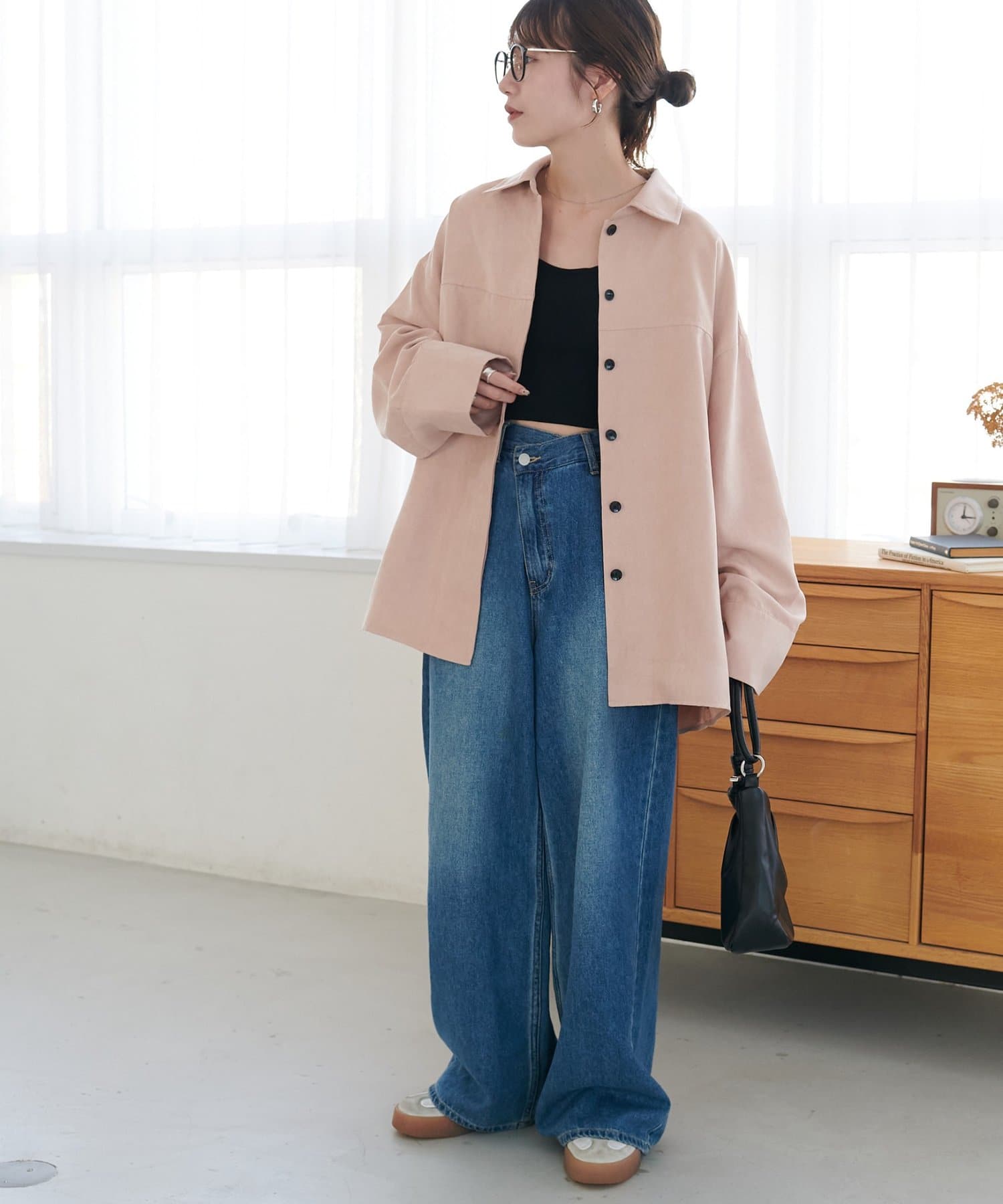153cmスタッフ:落ち感のある素材感で、小柄でもすっきりとした印象に◎前を開けて羽織ったり、ボタンを留めてトップス風に着るなど、着こなし次第で印象を変えて楽しめます♪