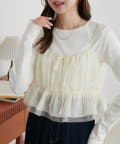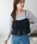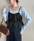 ・シンプルなロングTシャツやリブカットソーの上に重ねるだけで、トレンド感のあるレイヤードスタイルが完成♪