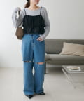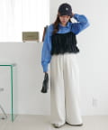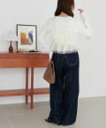 ▶ハイウエストステッチ使いデニムワイドパンツ