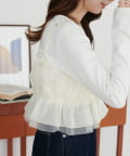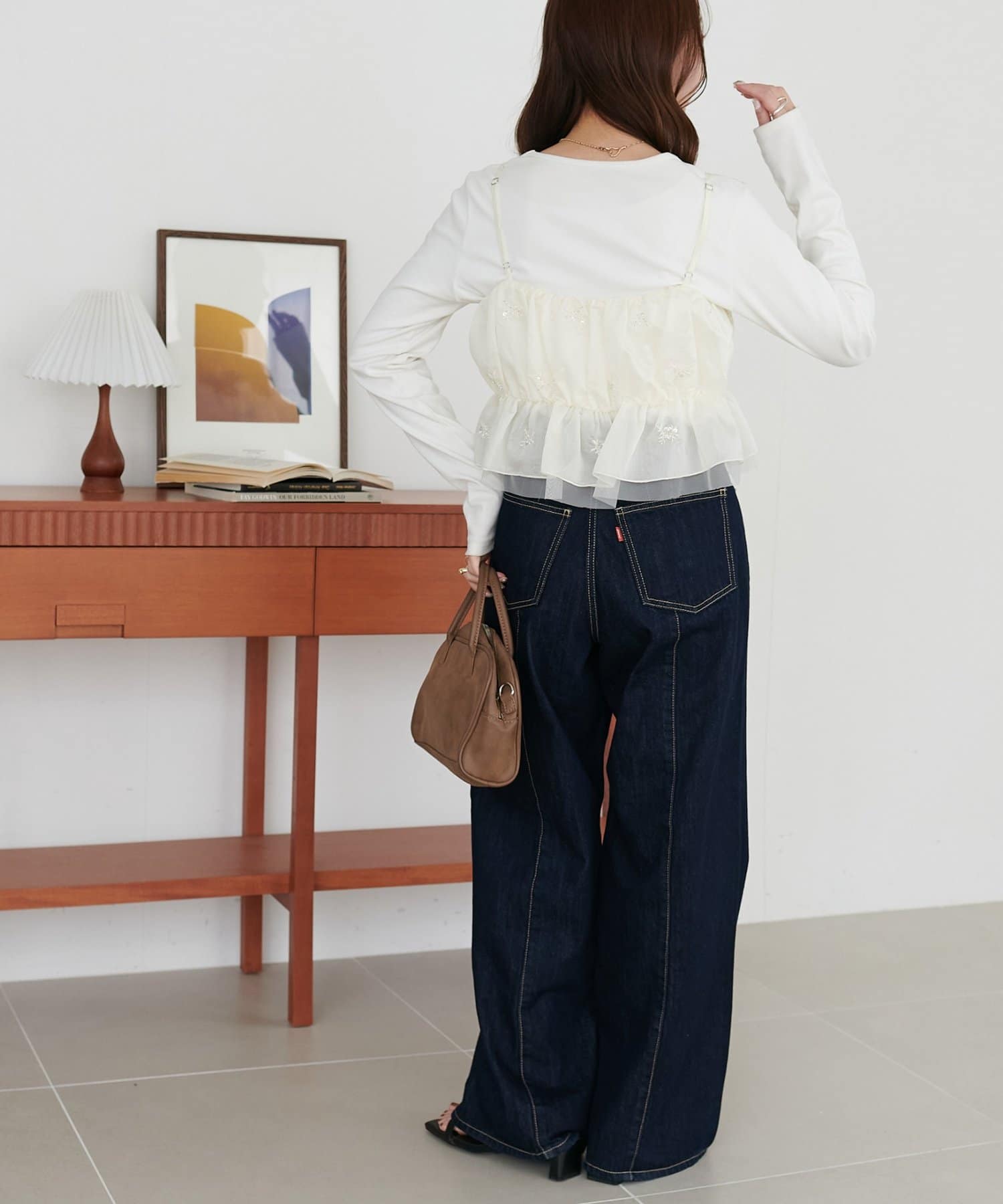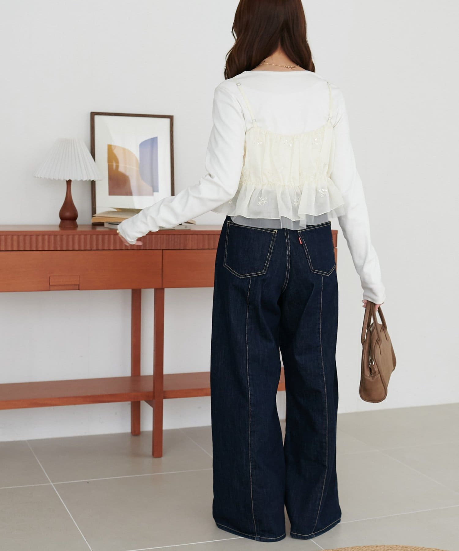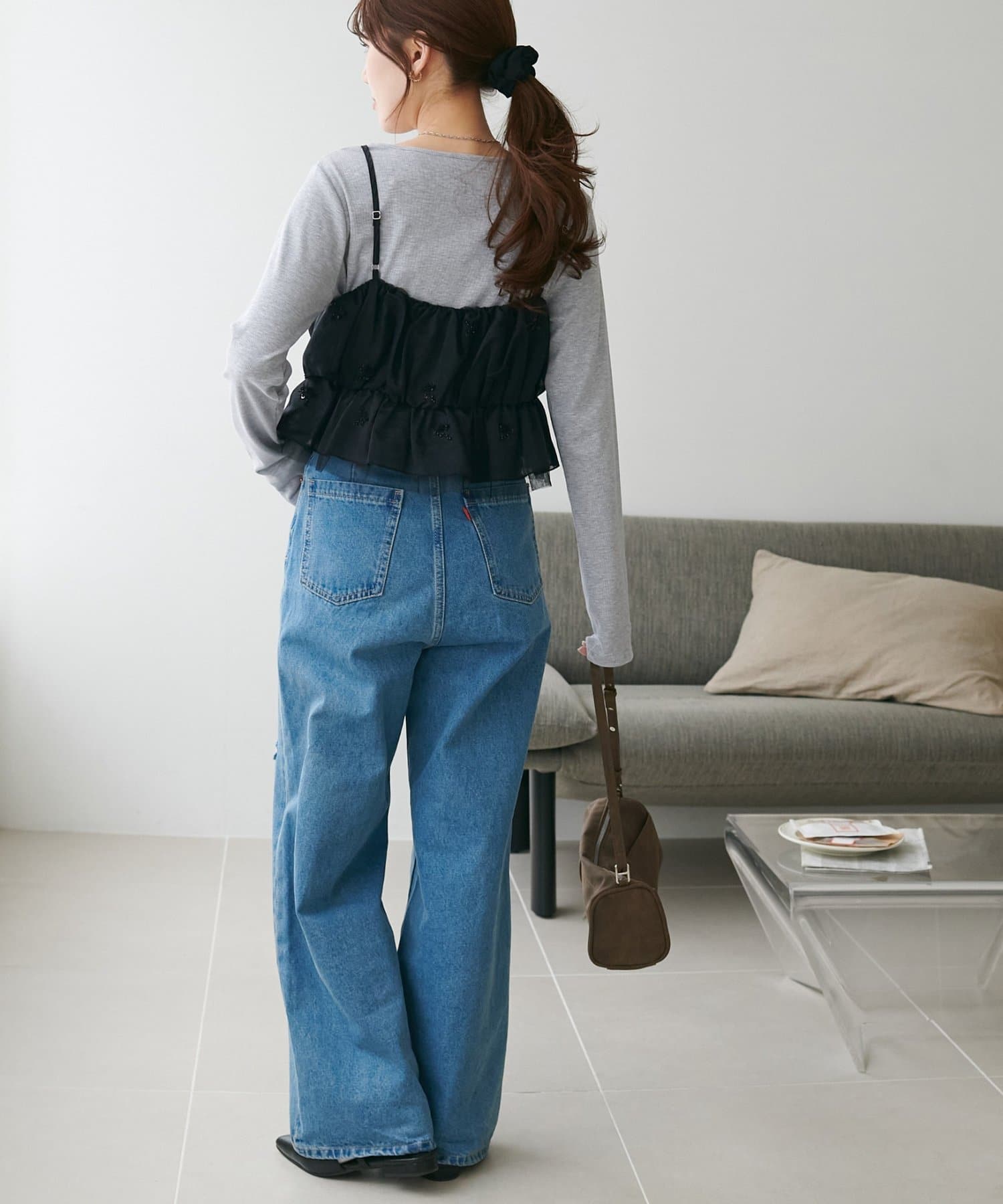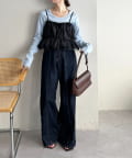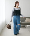 ・カジュアルなデニムパンツと合わせれば、甘さと辛さのバランスが絶妙な大人可愛いカジュアルコーデに。