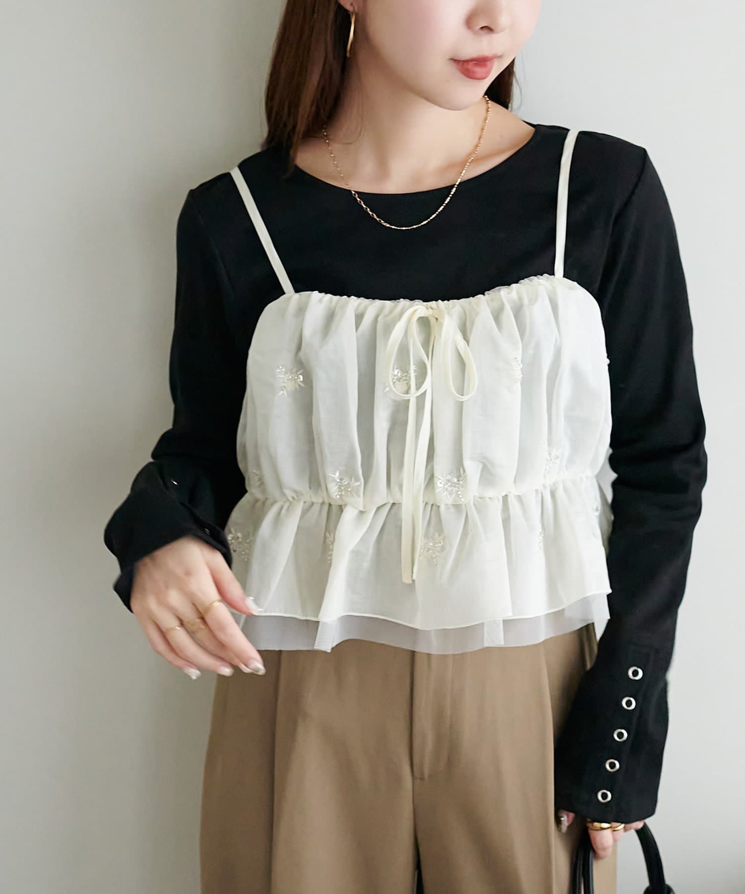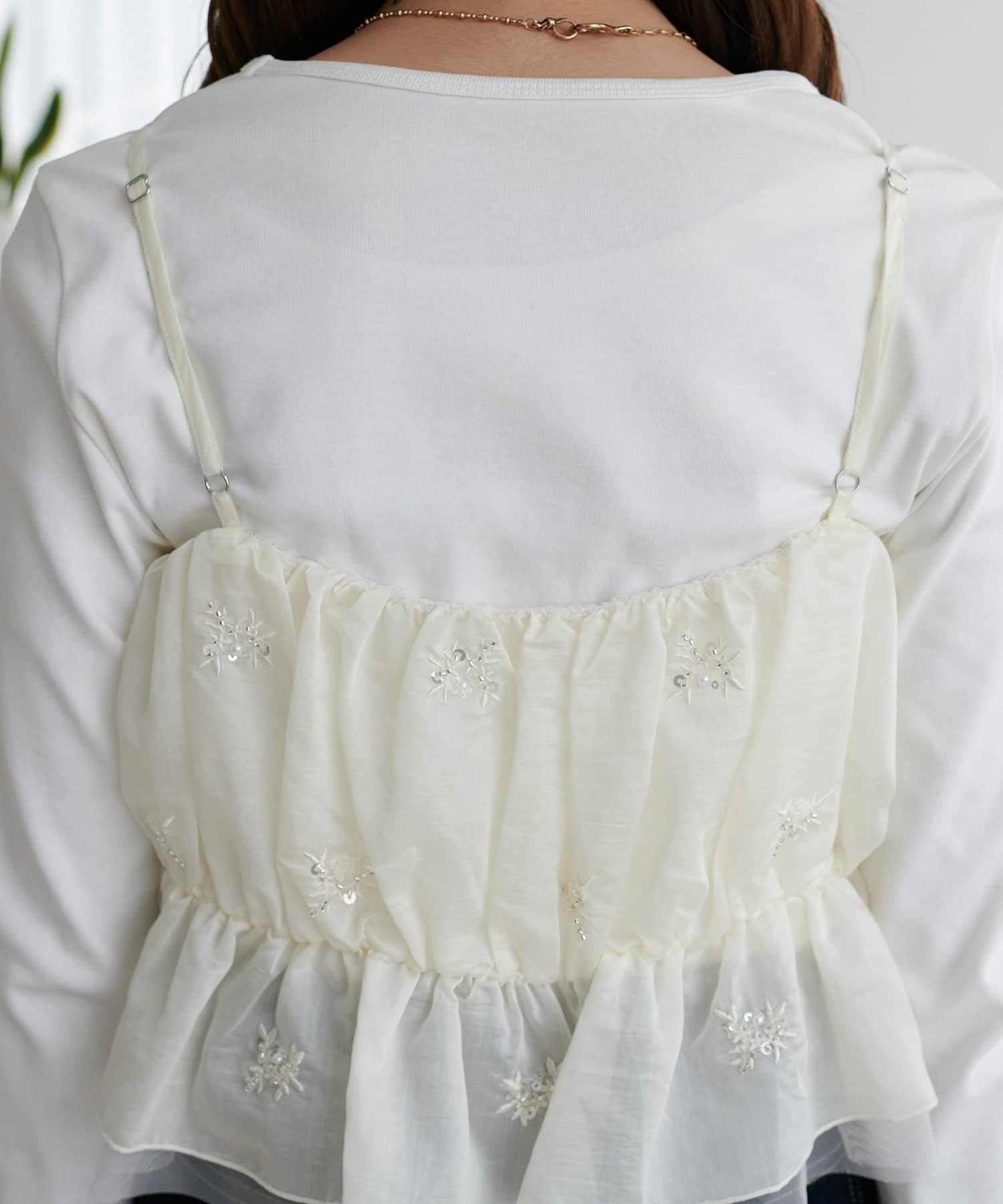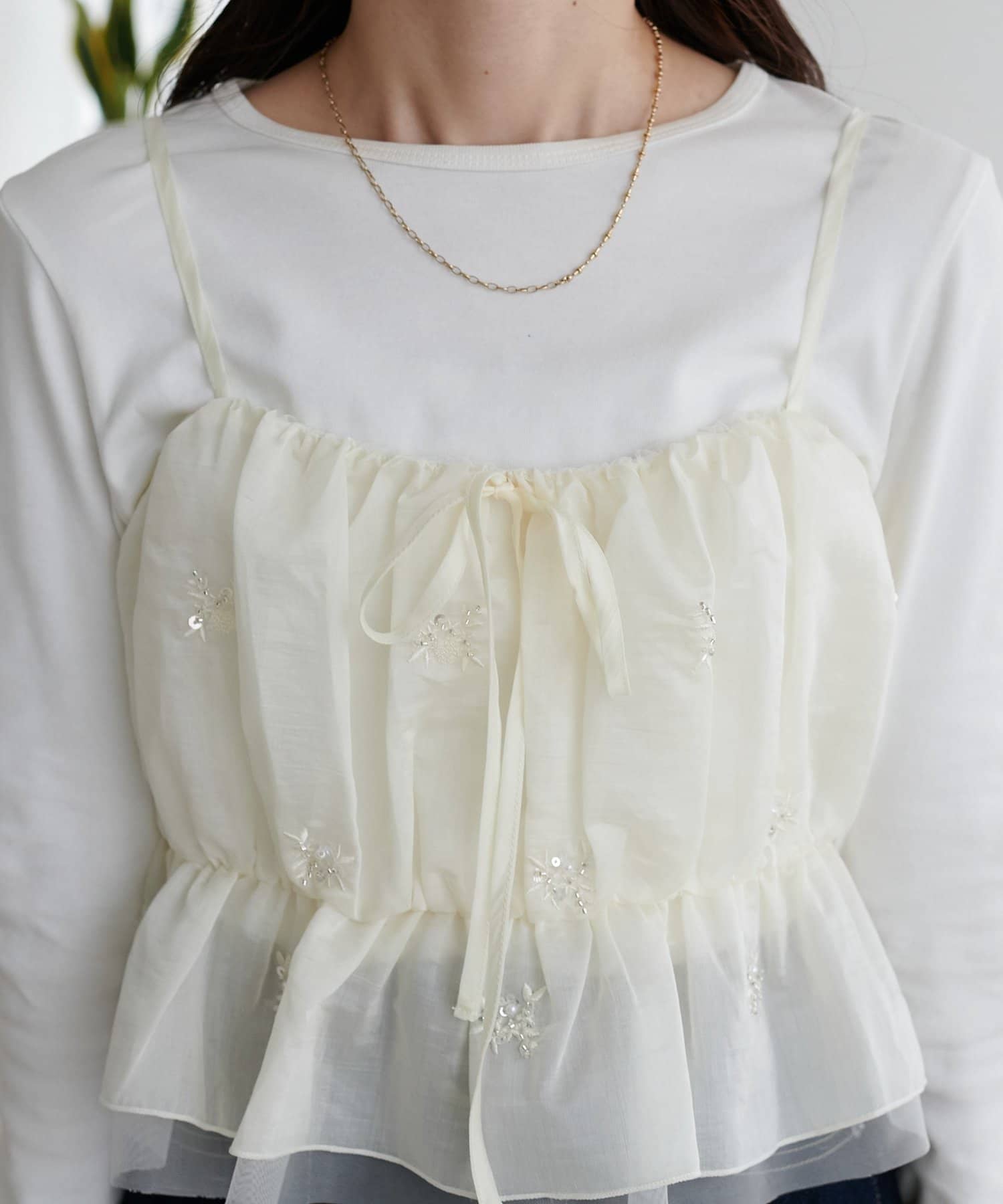 いつものコーデを格上げする、華やかビジューキャミ