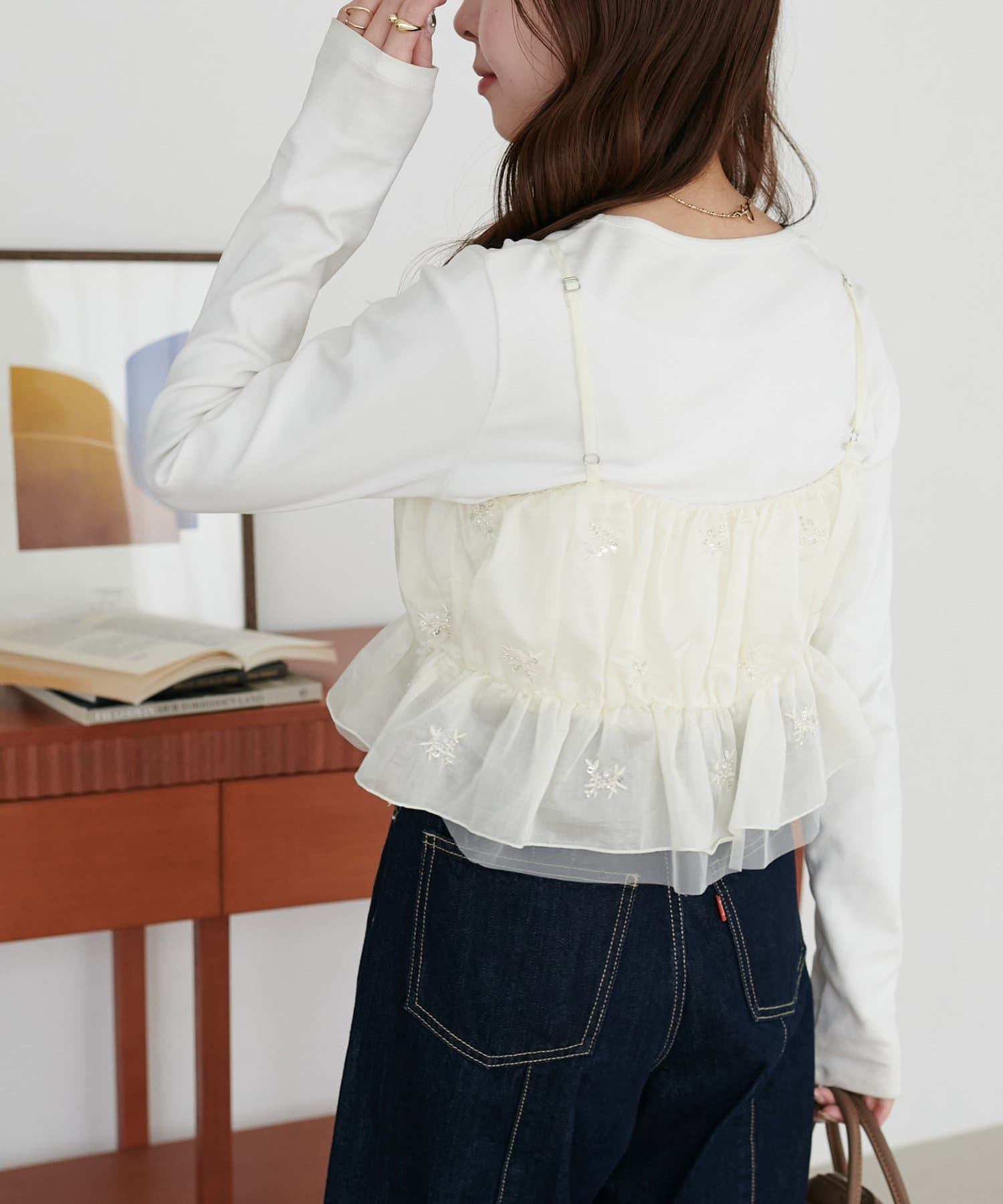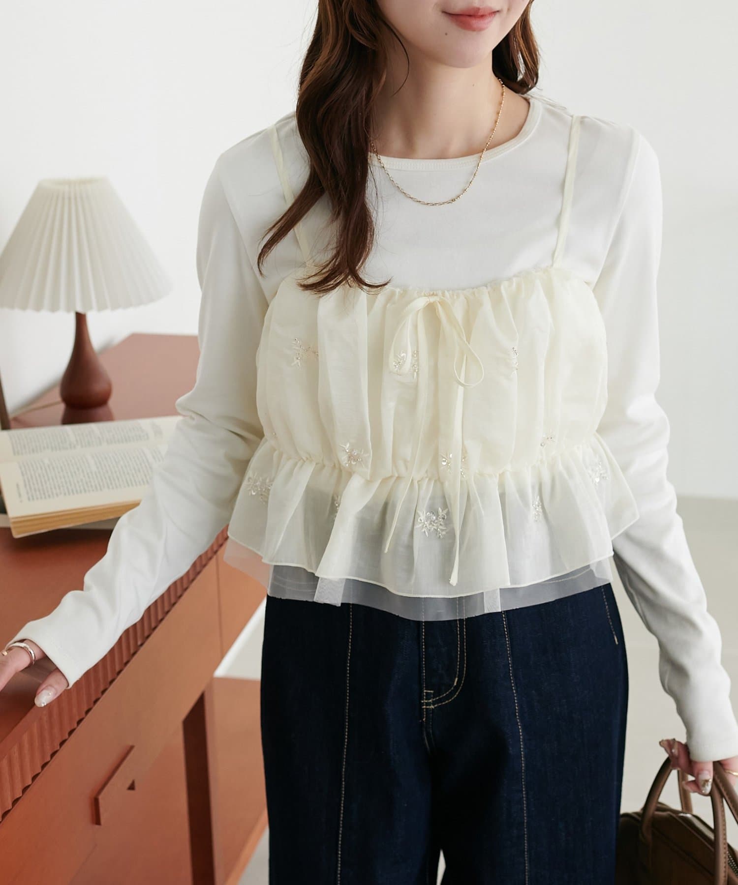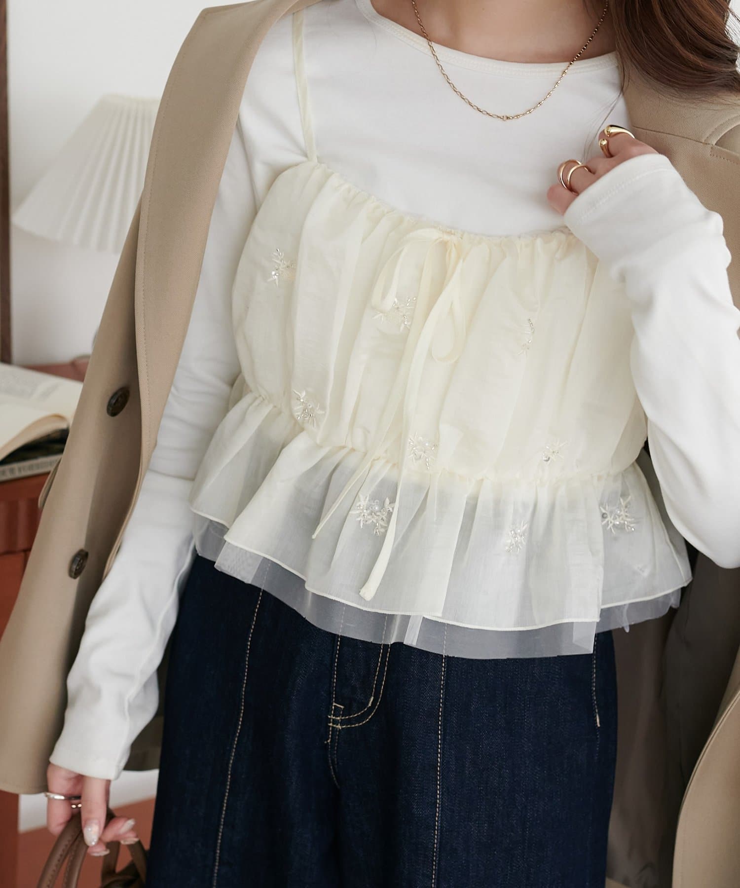 いつものコーデを格上げする、華やかビジューキャミ