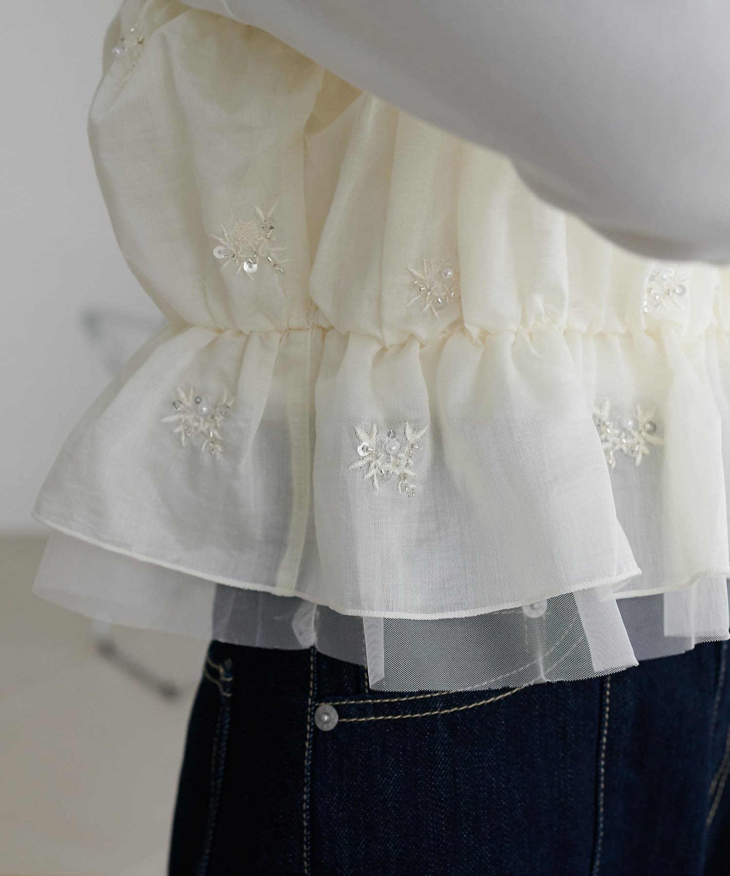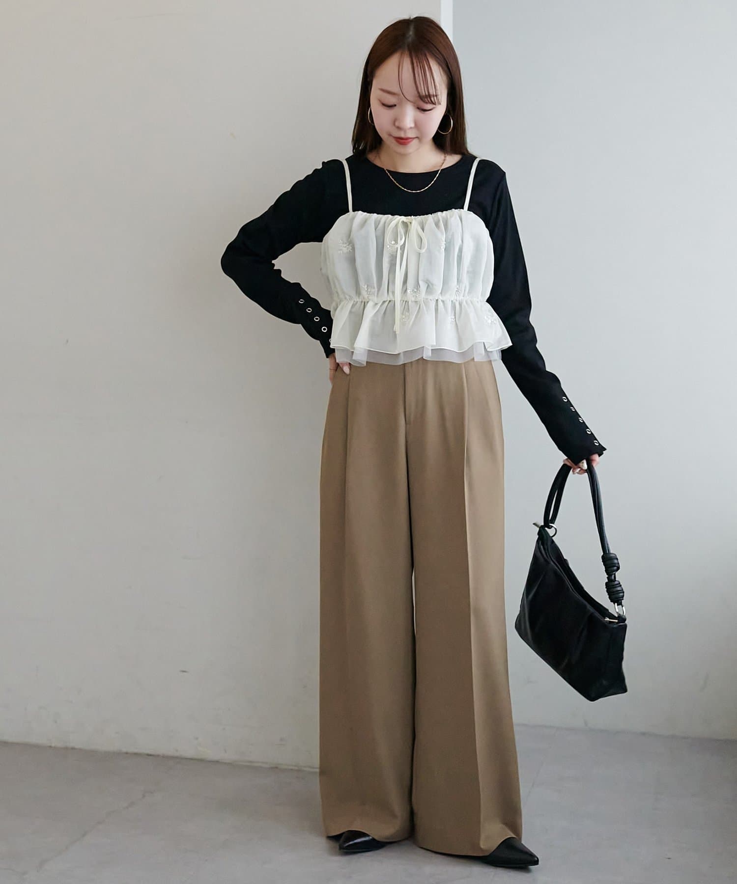 158cmスタッフ:さりげないビジュー刺繍があったり、裾部分が2枚重ねになっていたりと、着るだけでオシャレさを格上げしてくれます♡