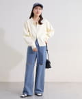 ▶ハイウエストステッチ使いデニムワイドパンツ