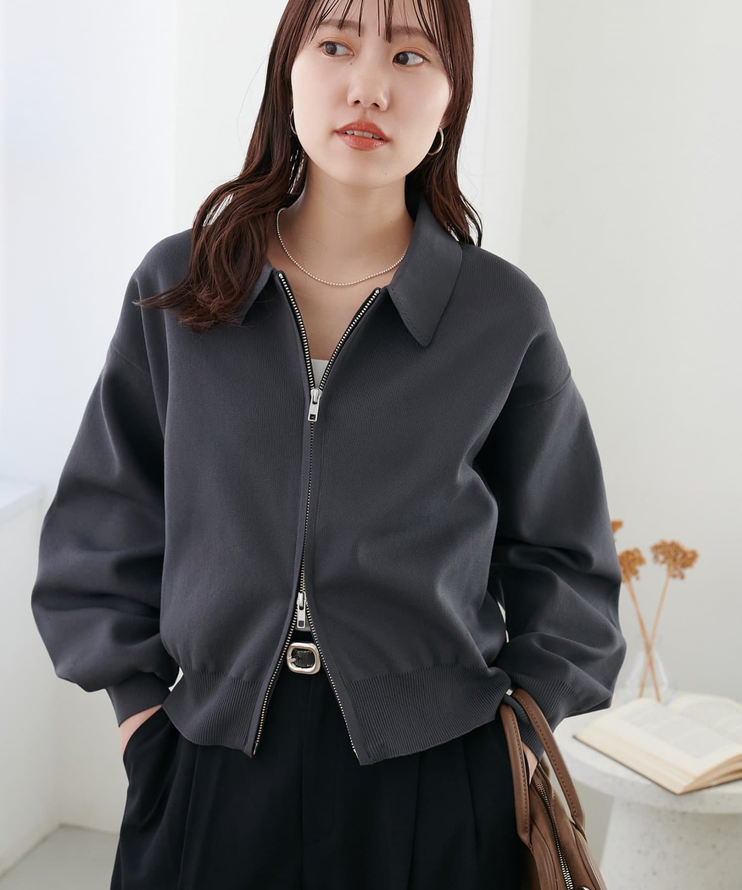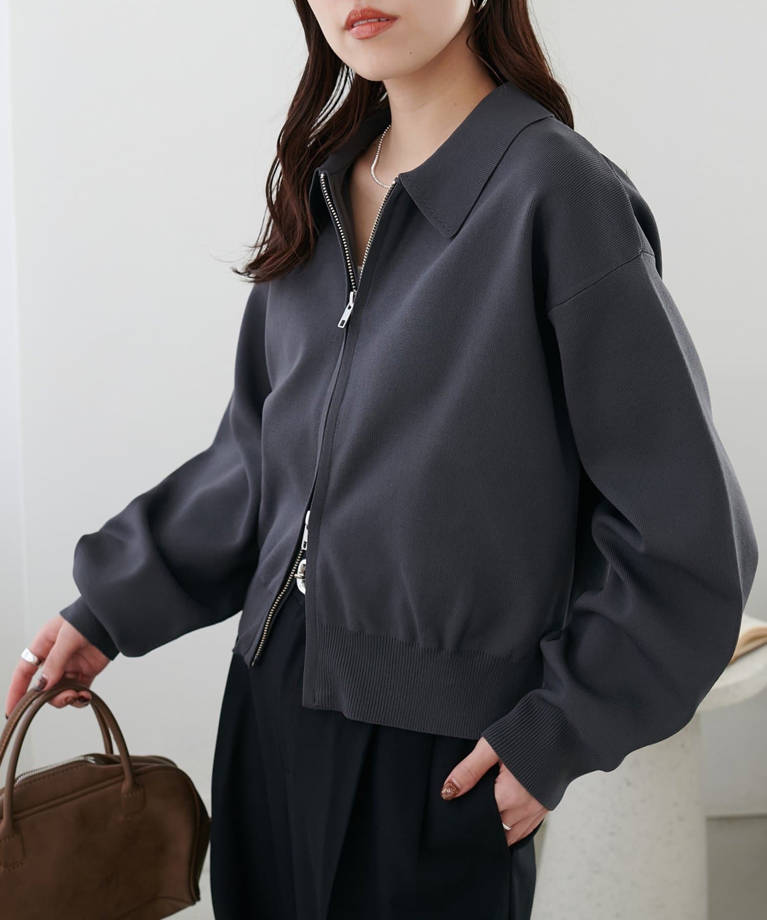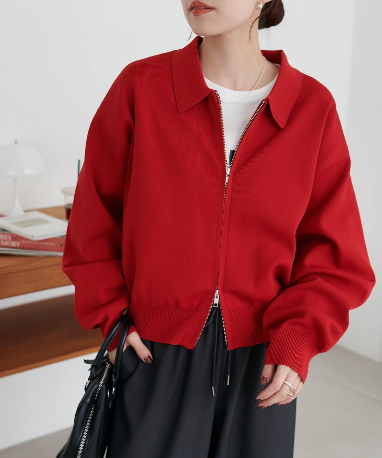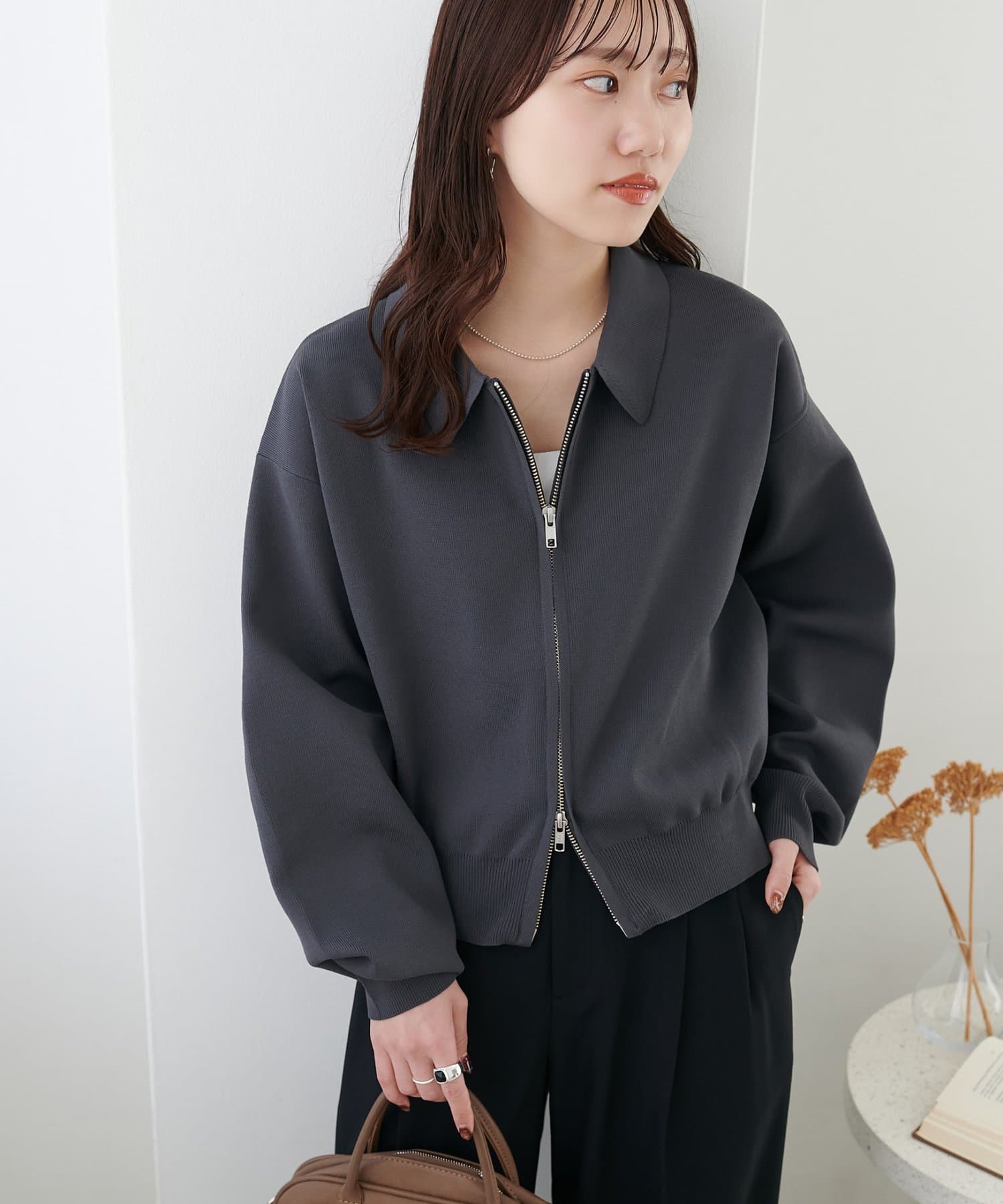 ・コンパクト×ダブルジップなので、ワイドパンツやボリュームスカートとの合わせがおすすめ!