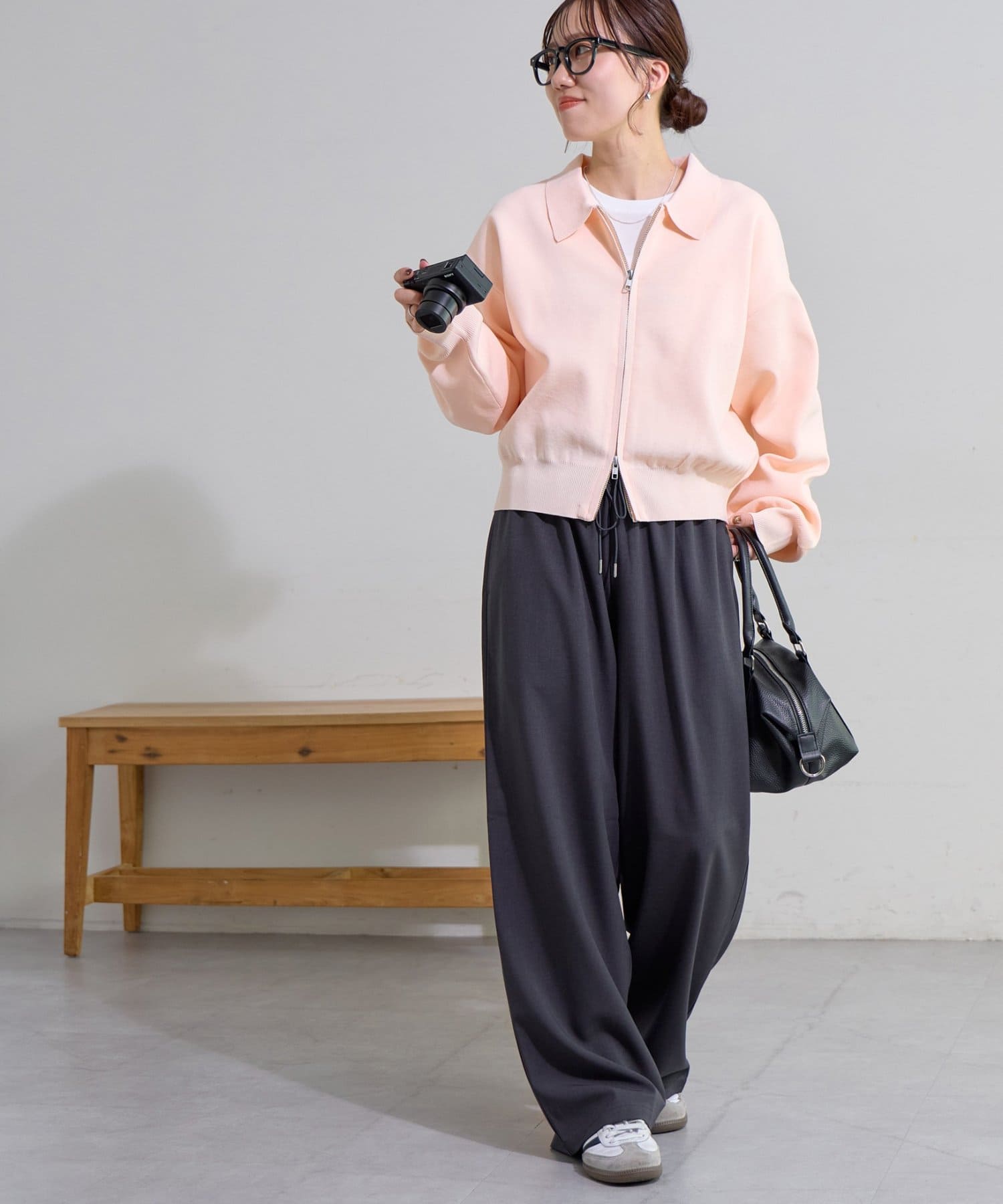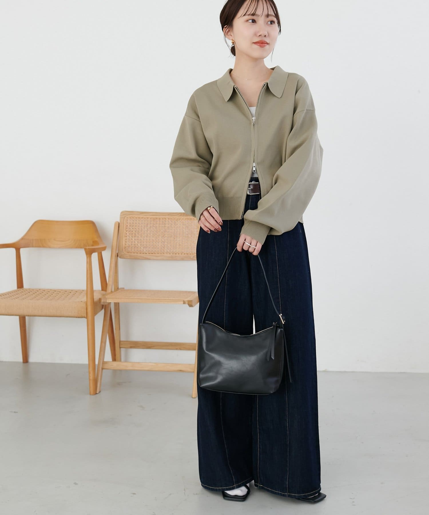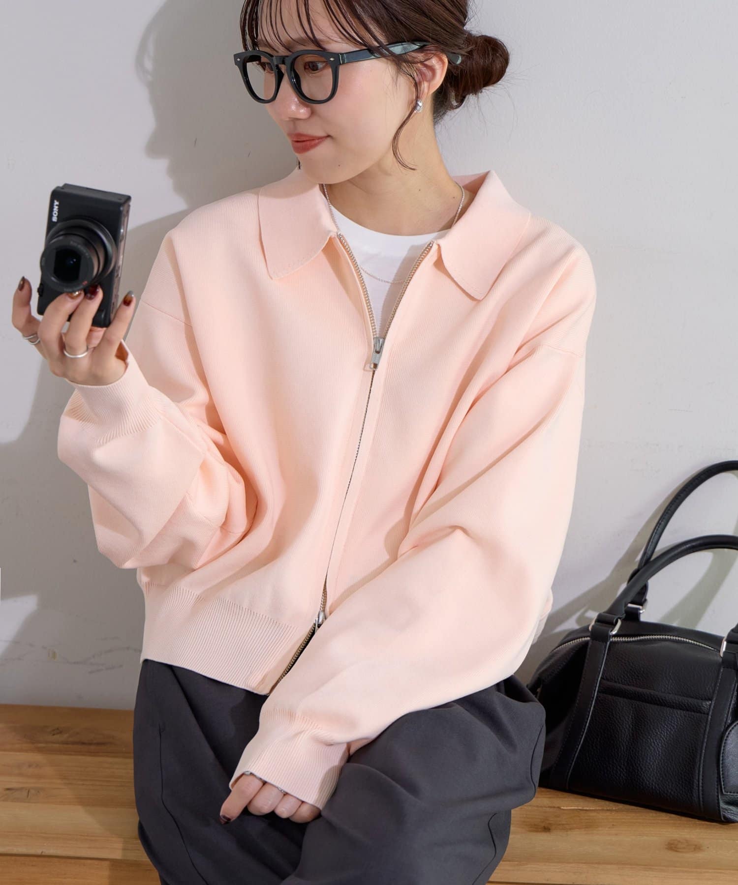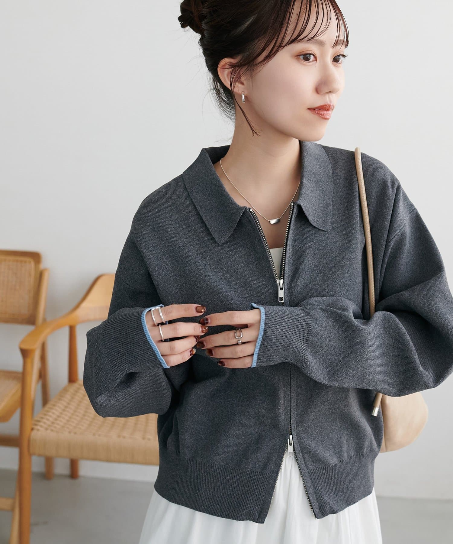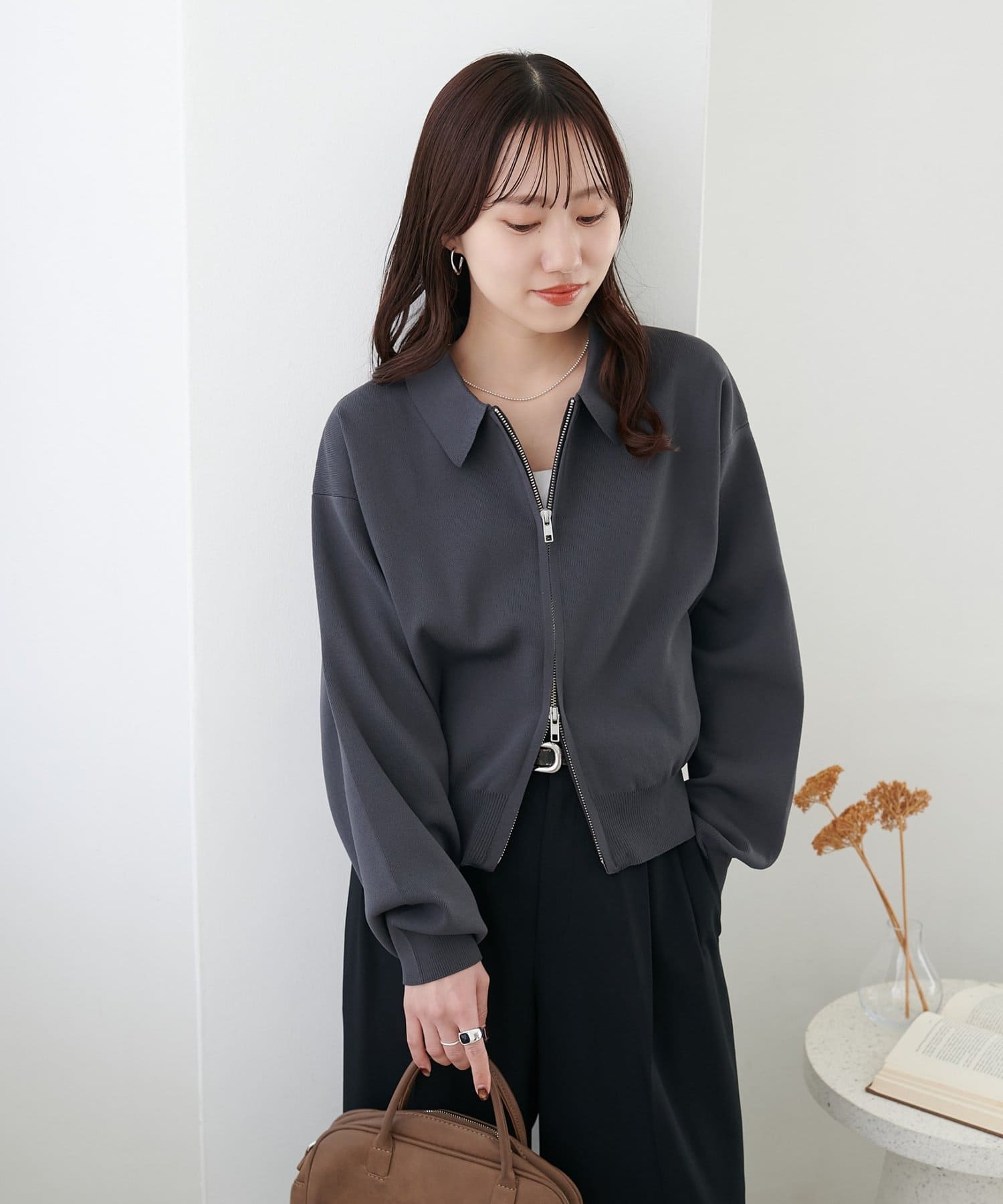 ・コンパクト×ダブルジップなので、ワイドパンツやボリュームスカートとの合わせがおすすめ!