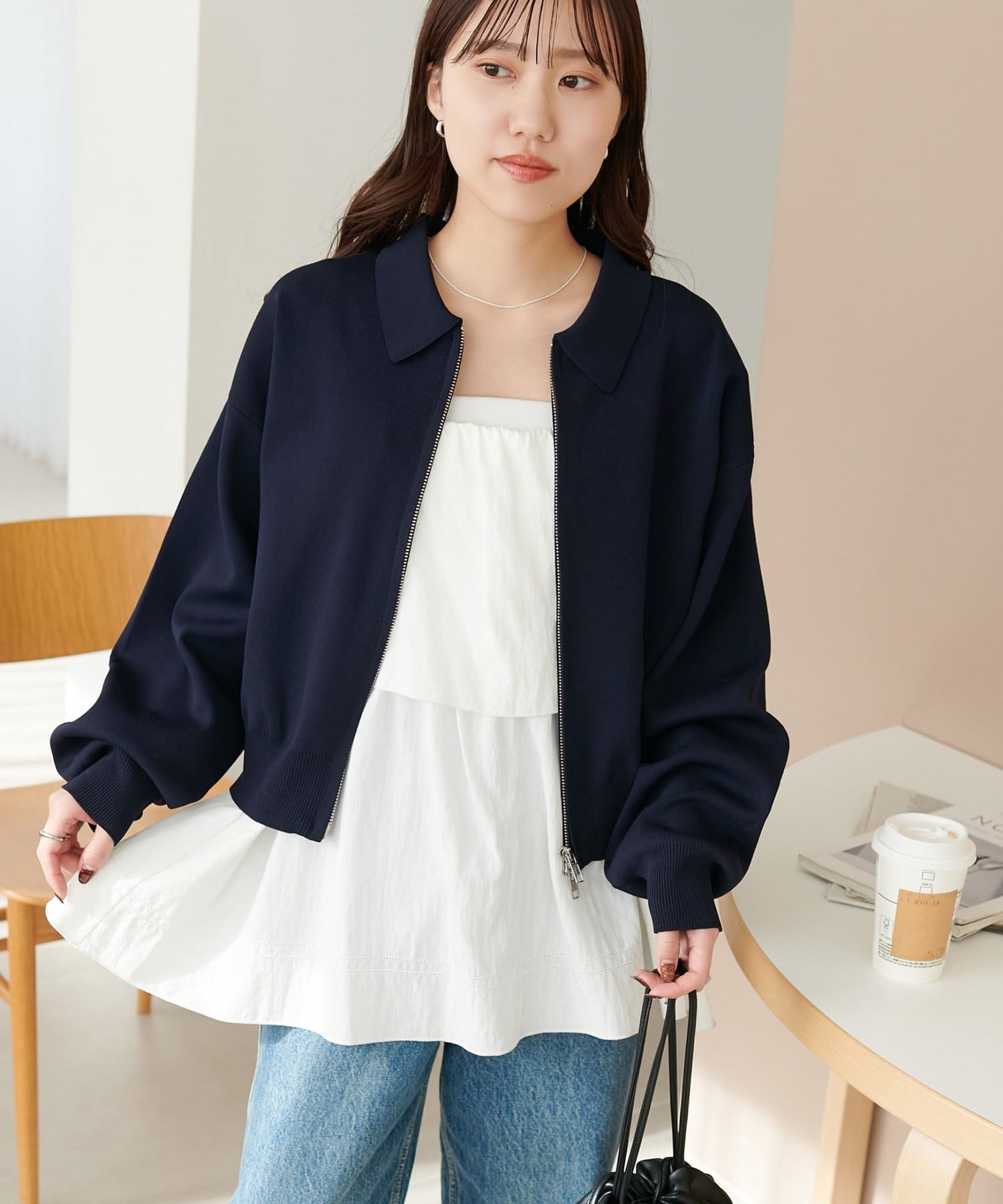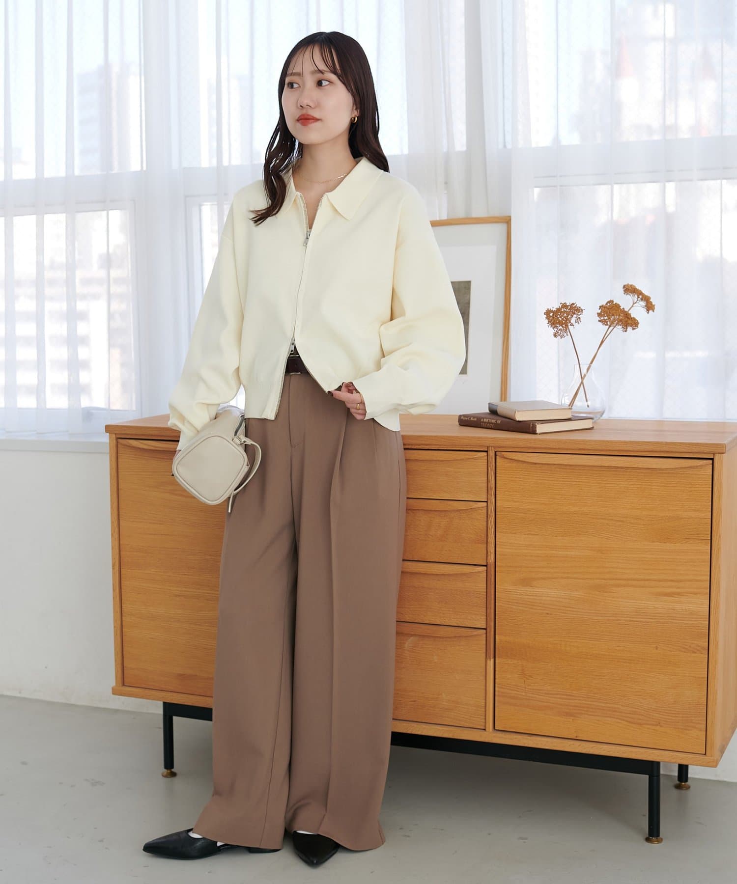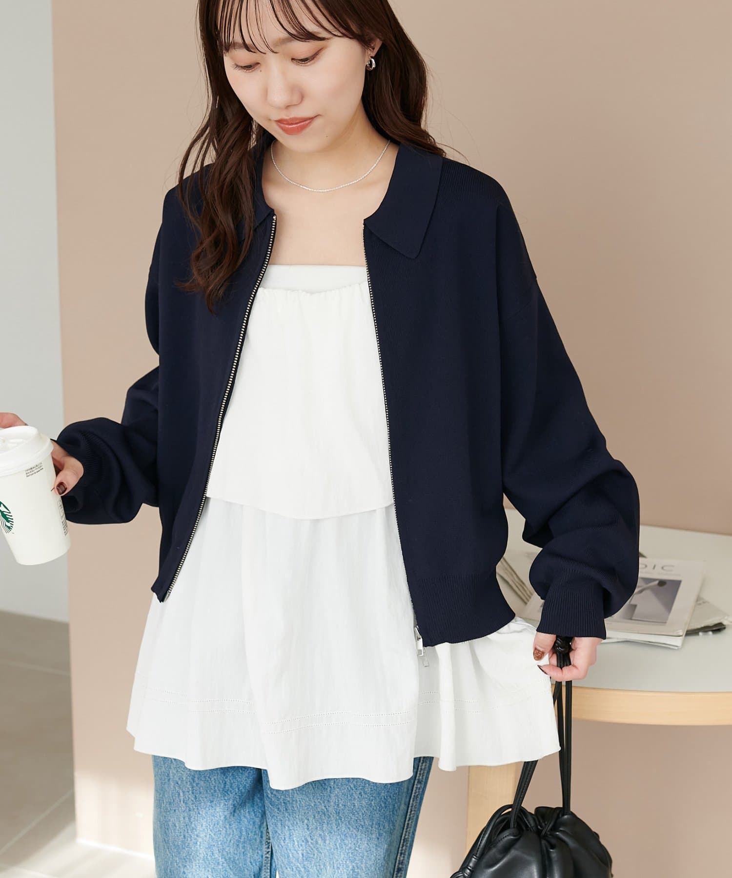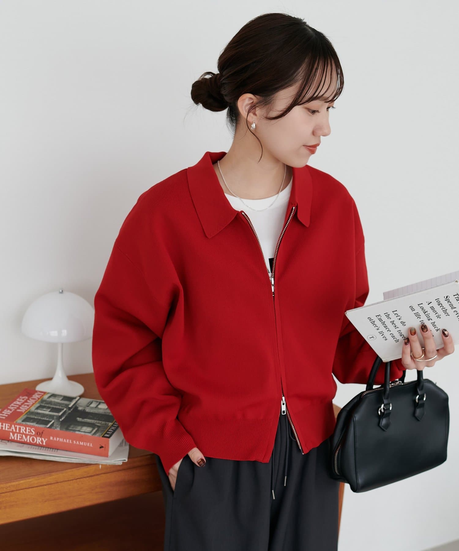 ・コンパクト×ダブルジップなので、ワイドパンツやボリュームスカートとの合わせがおすすめ!