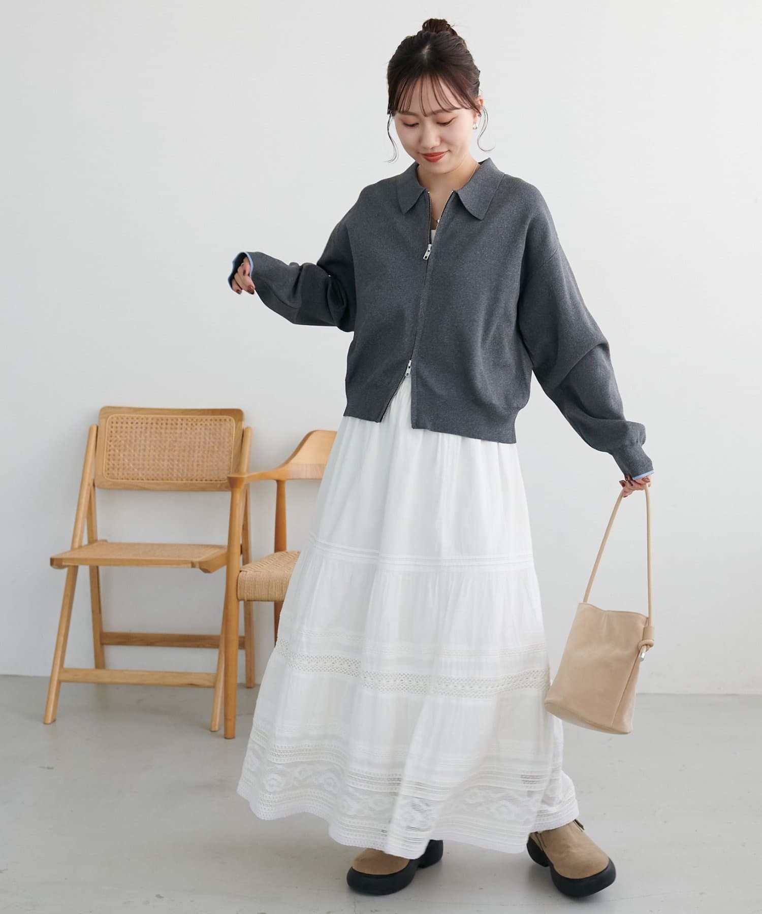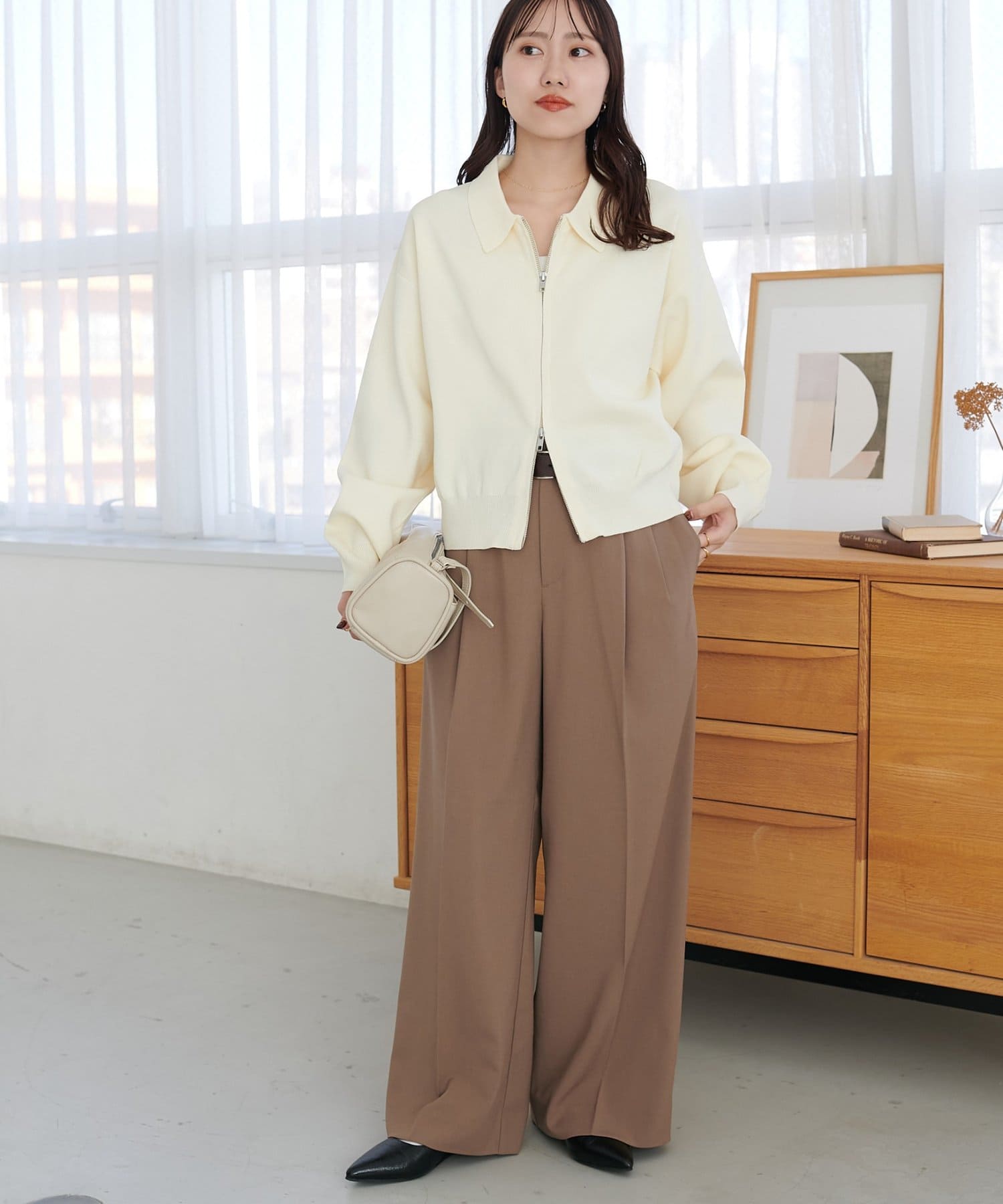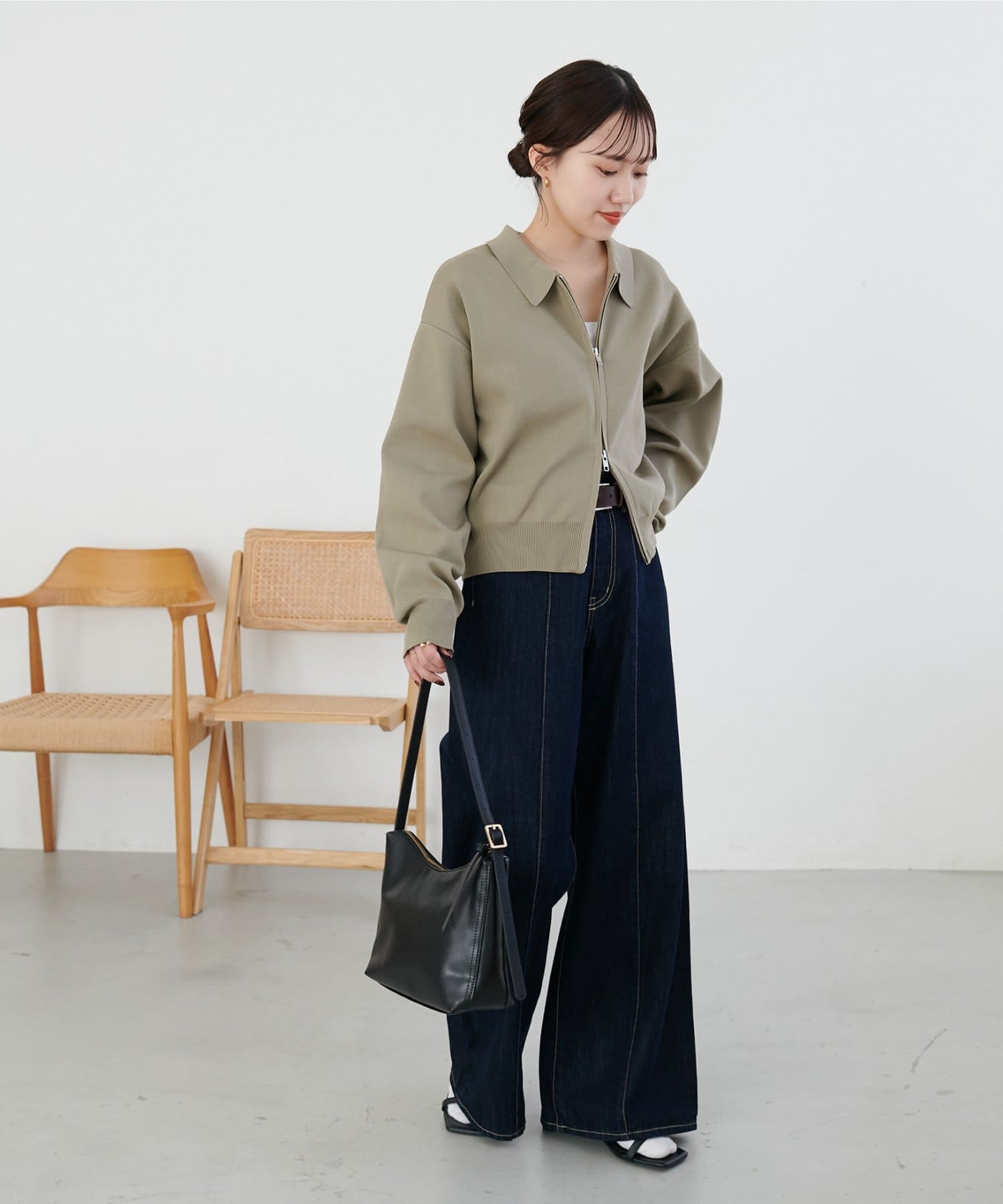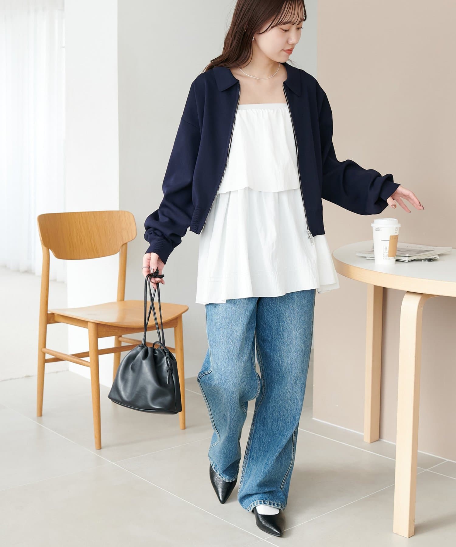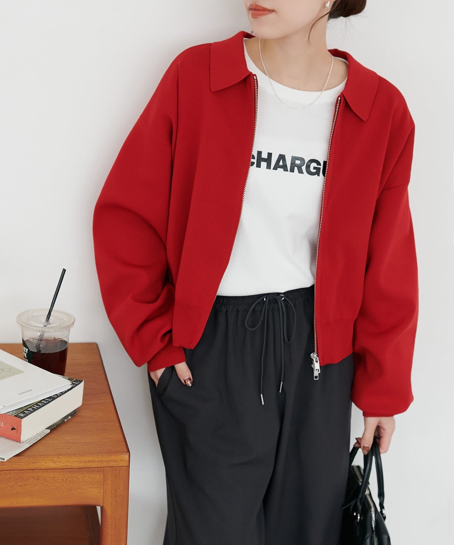 ・コンパクト×ダブルジップなので、ワイドパンツやボリュームスカートとの合わせがおすすめ!