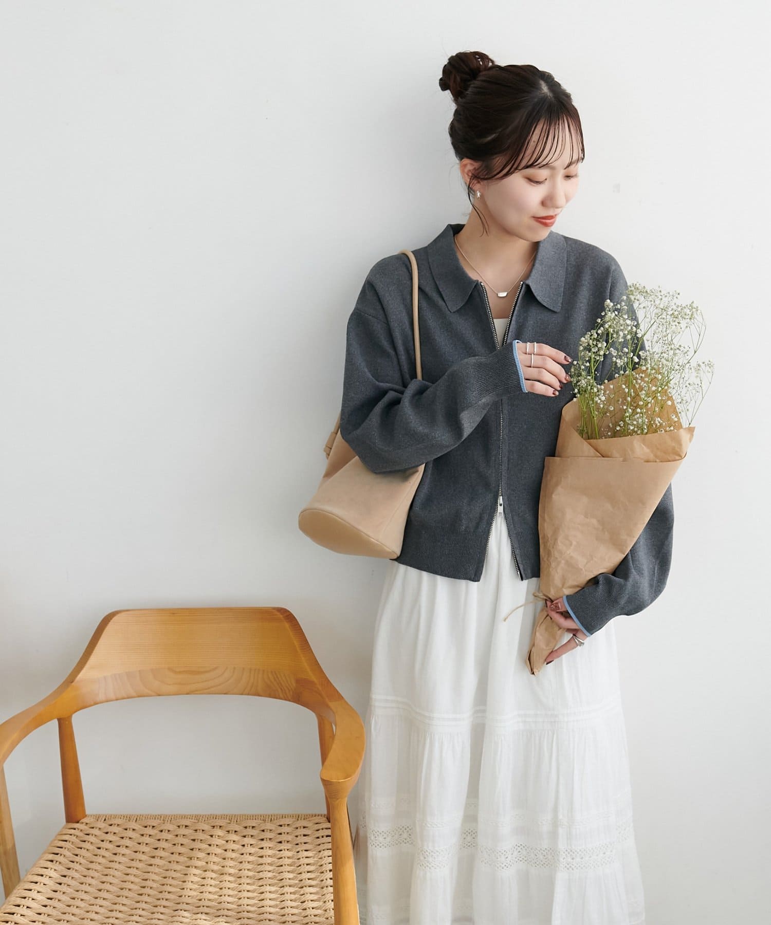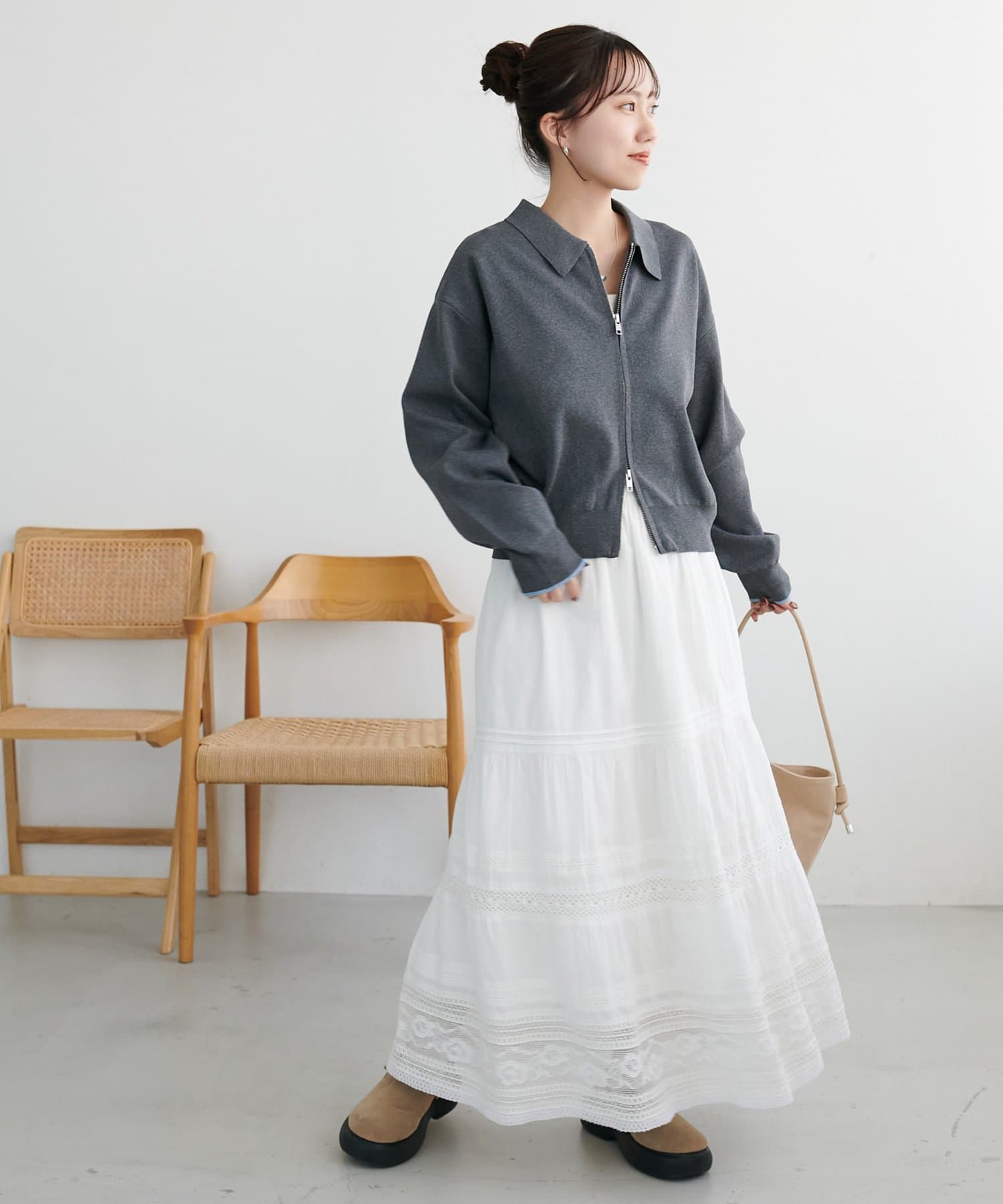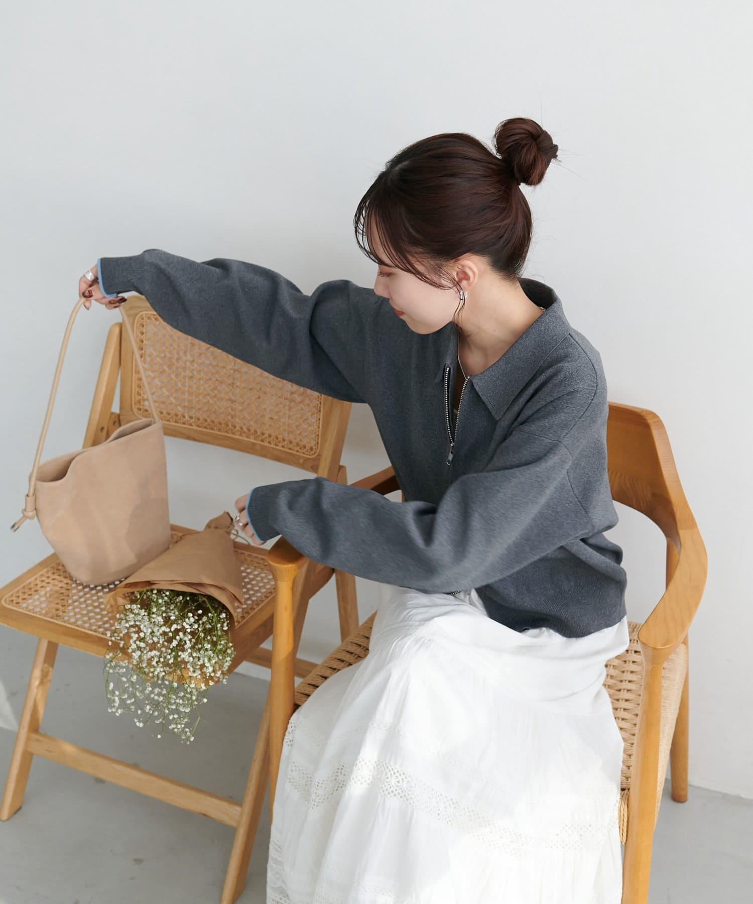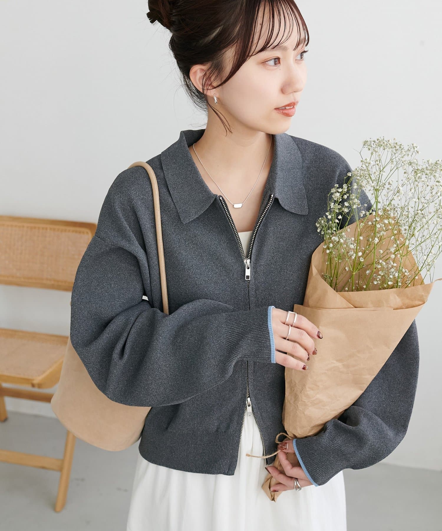 ・コンパクト×ダブルジップなので、ワイドパンツやボリュームスカートとの合わせがおすすめ!