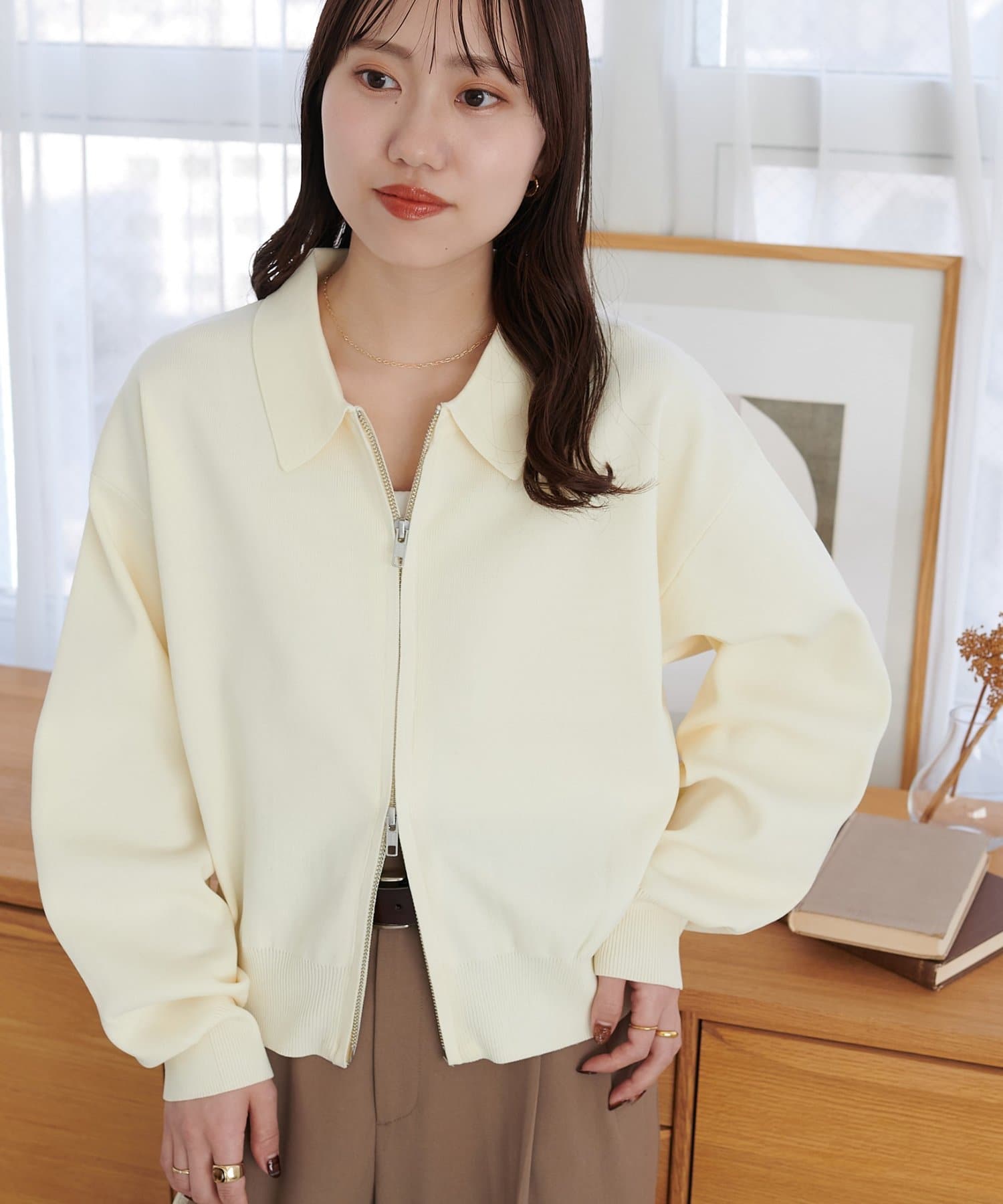 1/29(木)10:00~【@317.mychnセレクトカラーあり!】スポンディッシュ衿付Wジップカーディガン