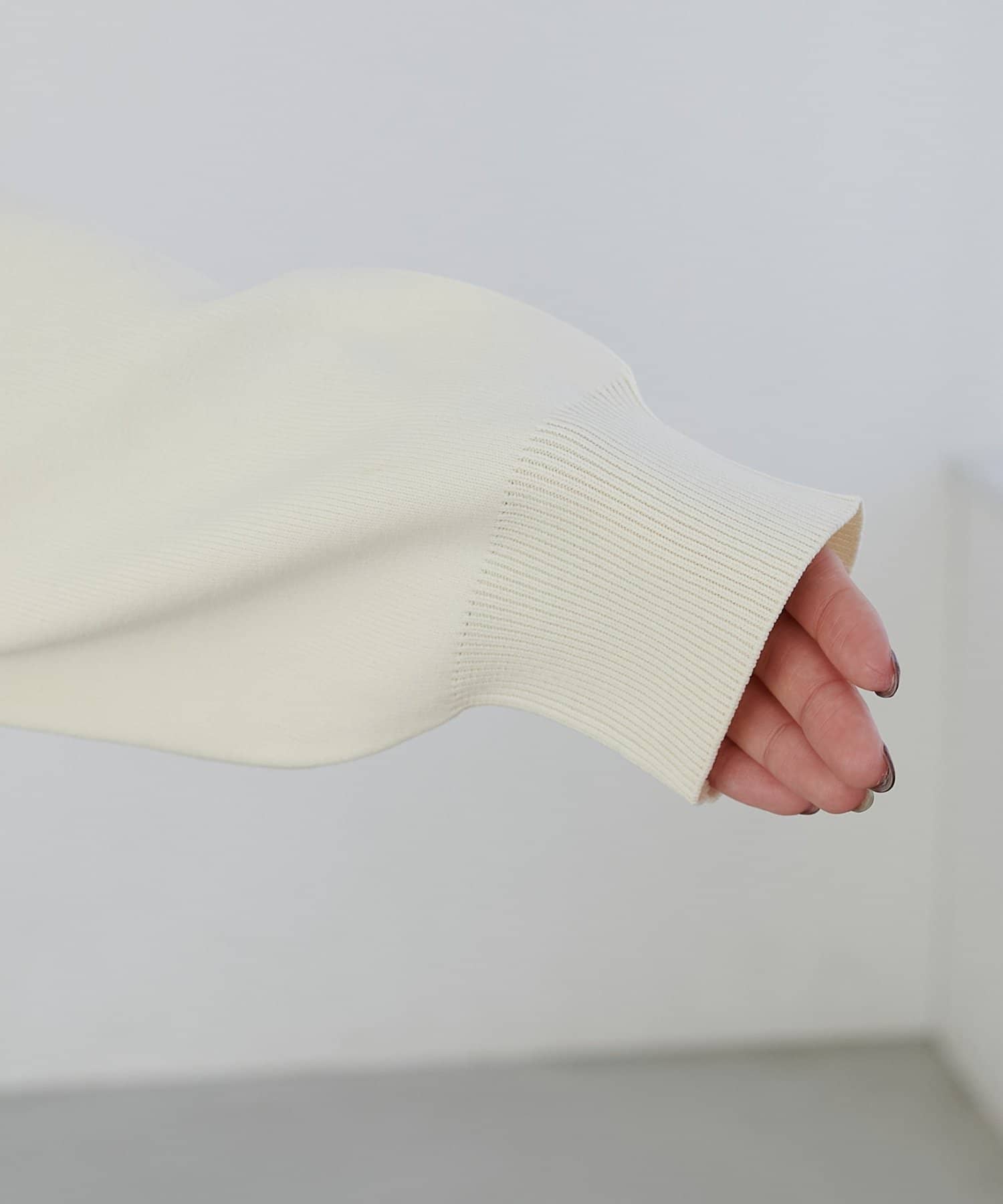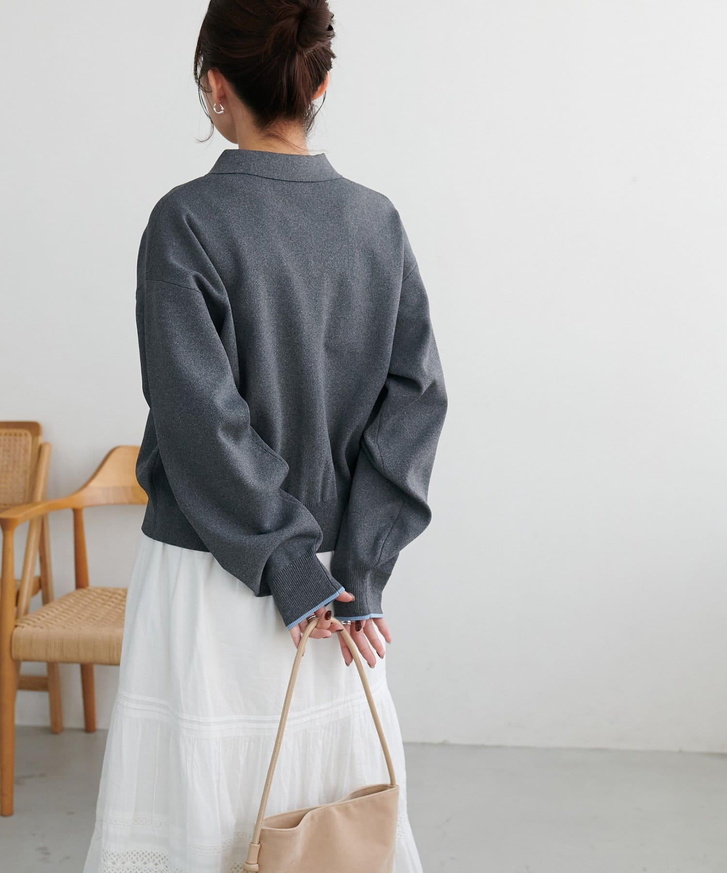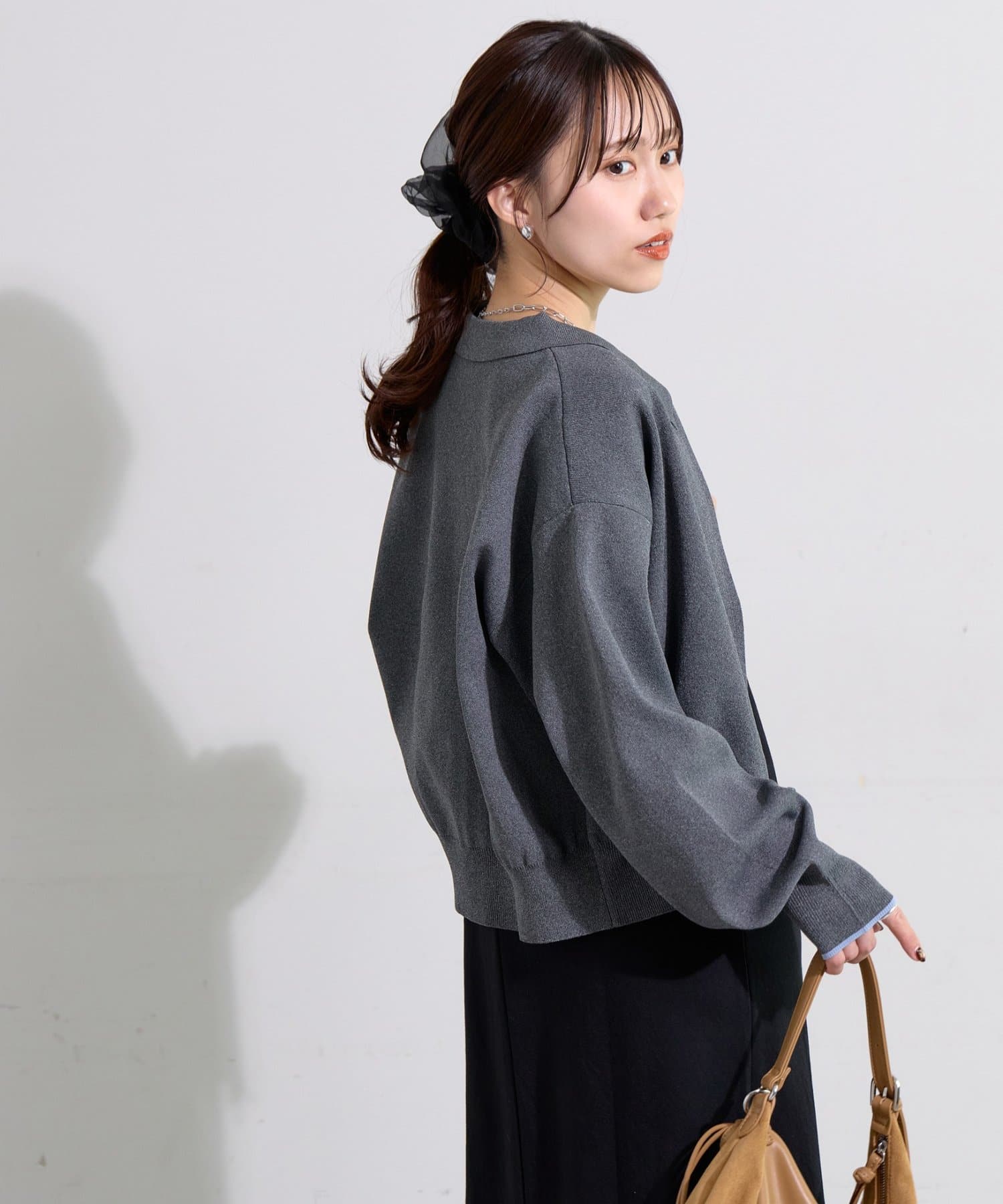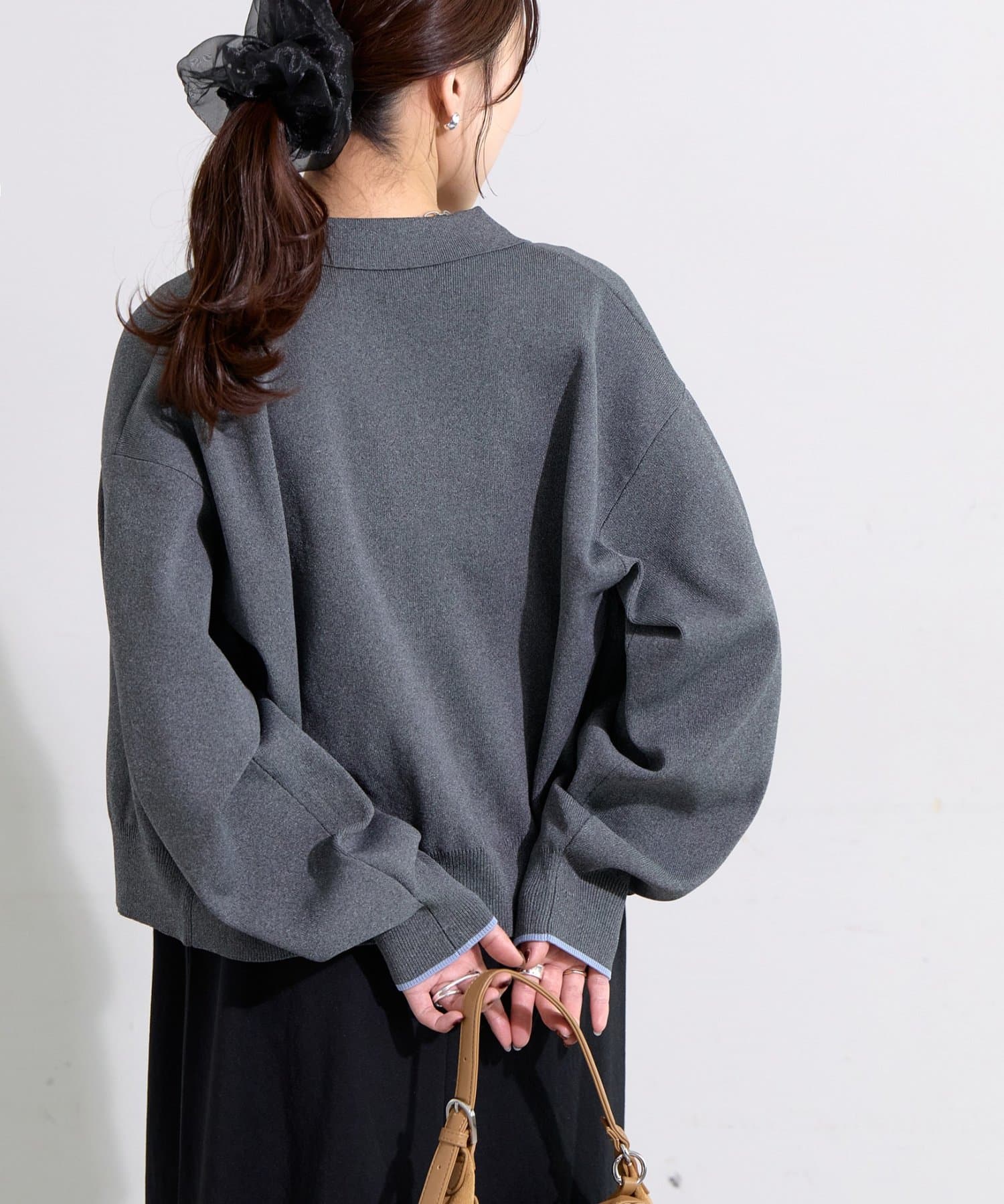 155cmスタッフ:ライトベージュとダークグレーは袖が配色になっていることで、手元が華やかになります♪