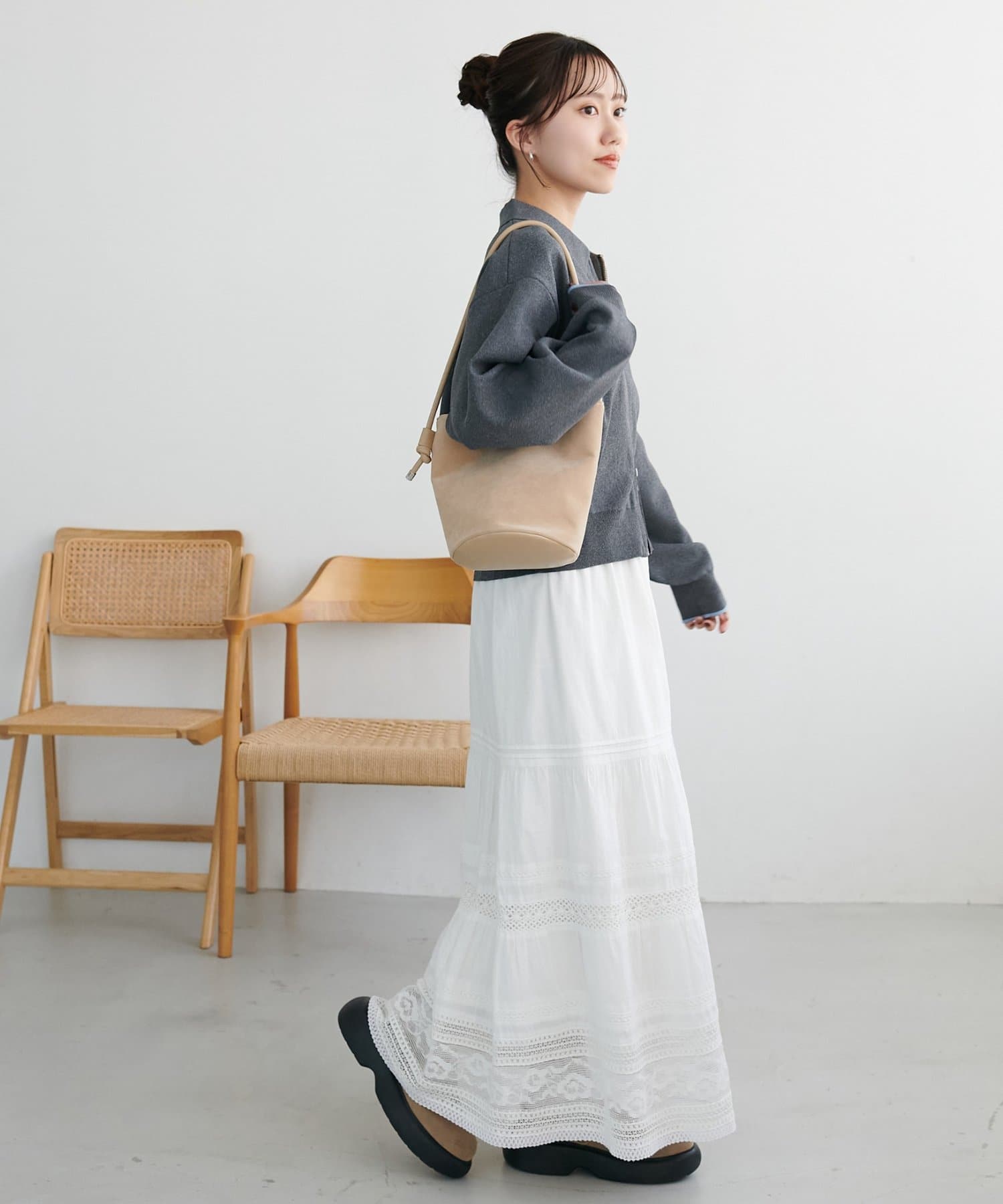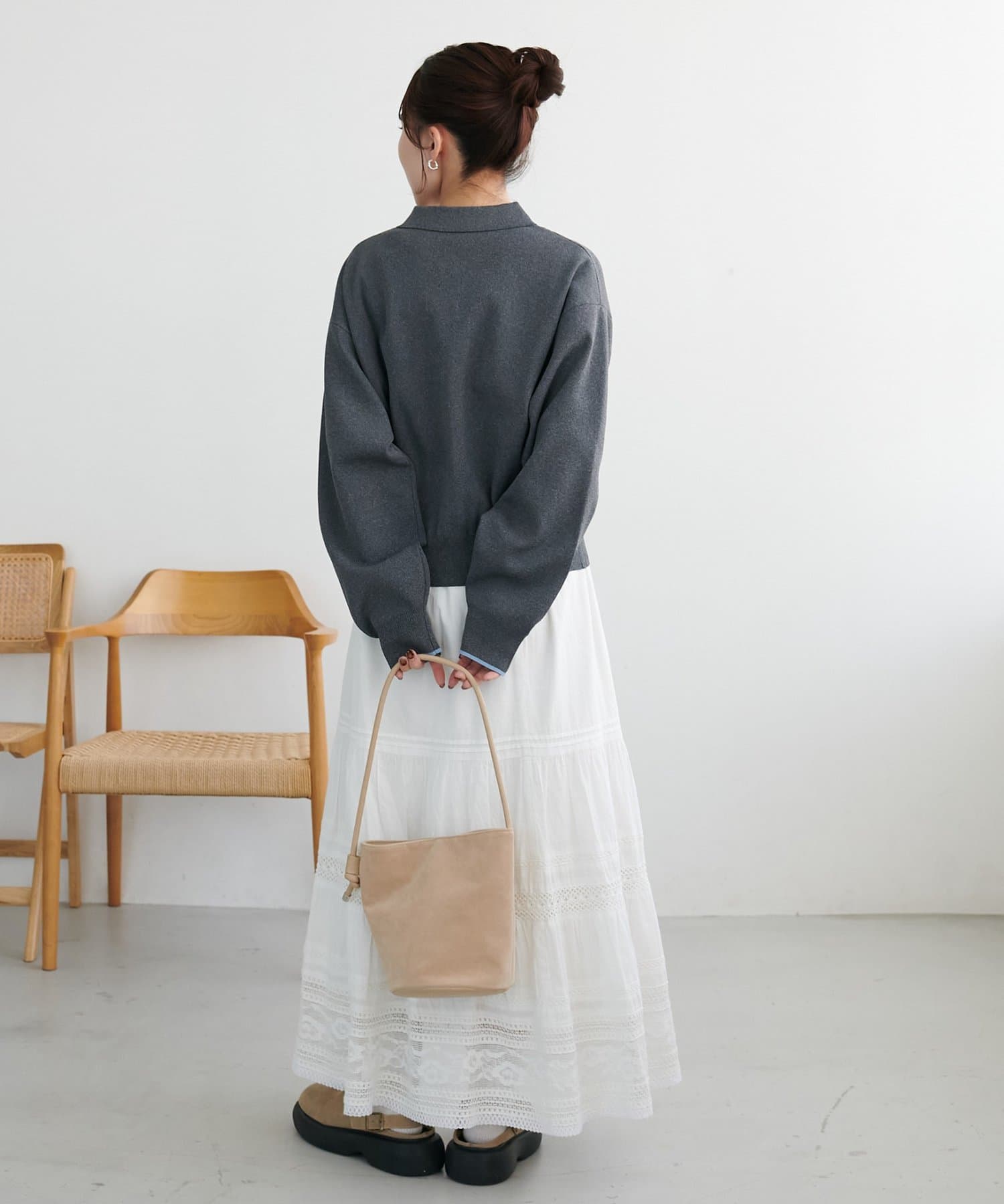 ・スカートと合わせた柔らかさのあるコーデ