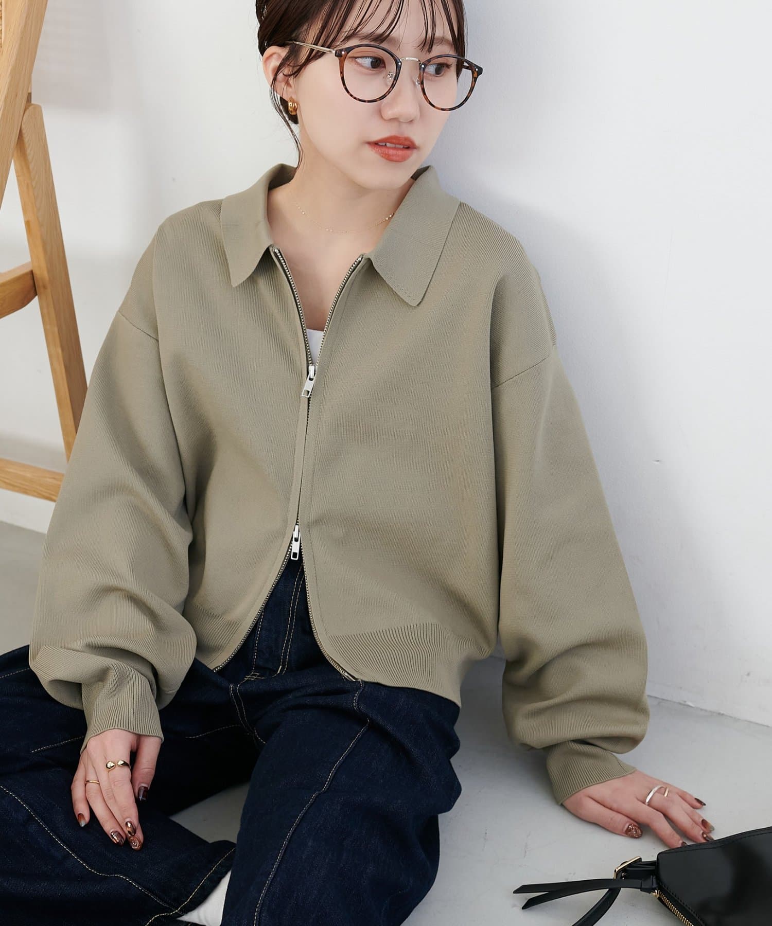 160cmスタッフ:ヒップにややかかるほどの着丈は、ワイドパンツからスカートまでボリューム感のあるボトムスとも合います!ジップの開け具合で雰囲気が変わるので、テイスト問わずコーデに取り入れられそうです。