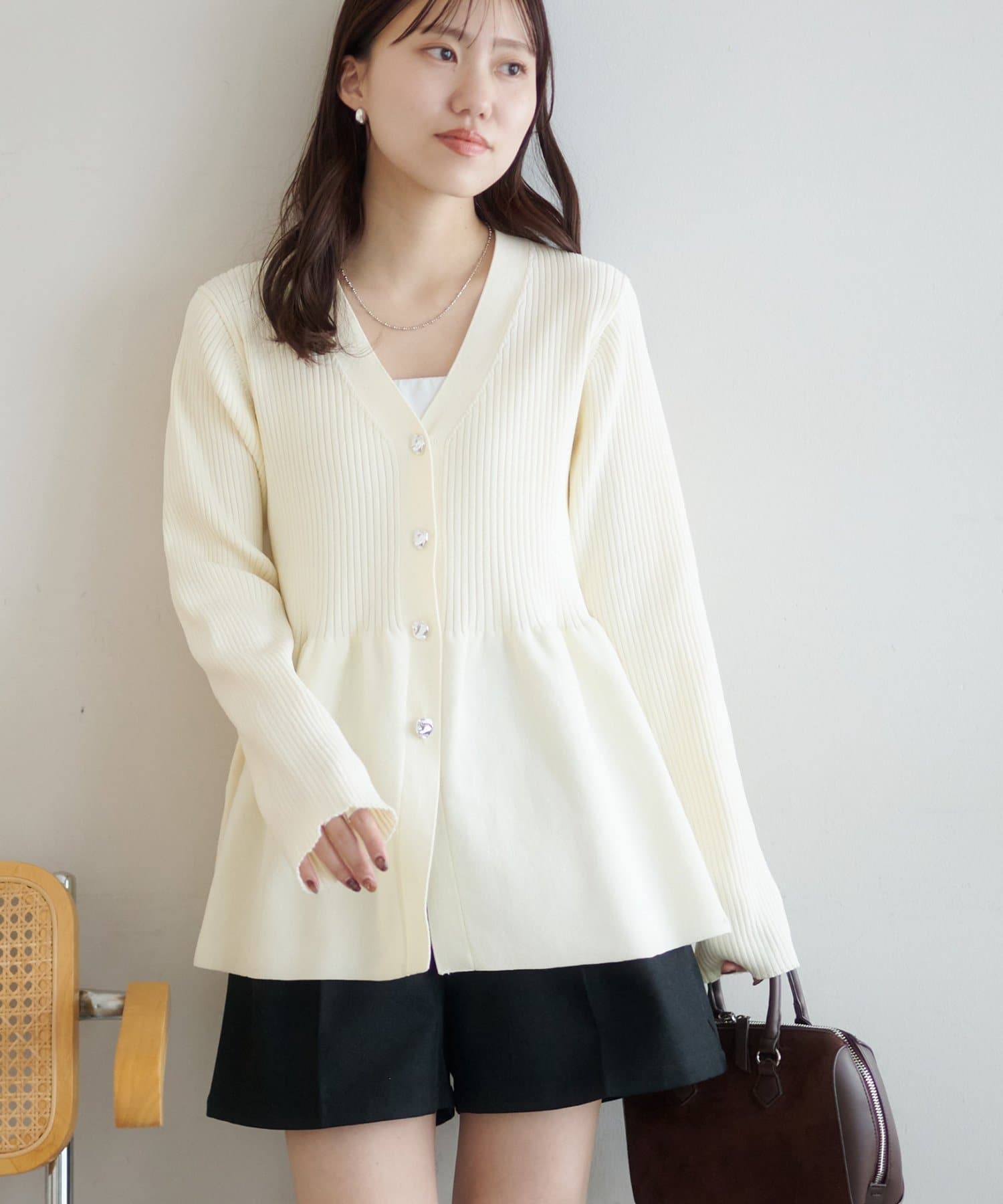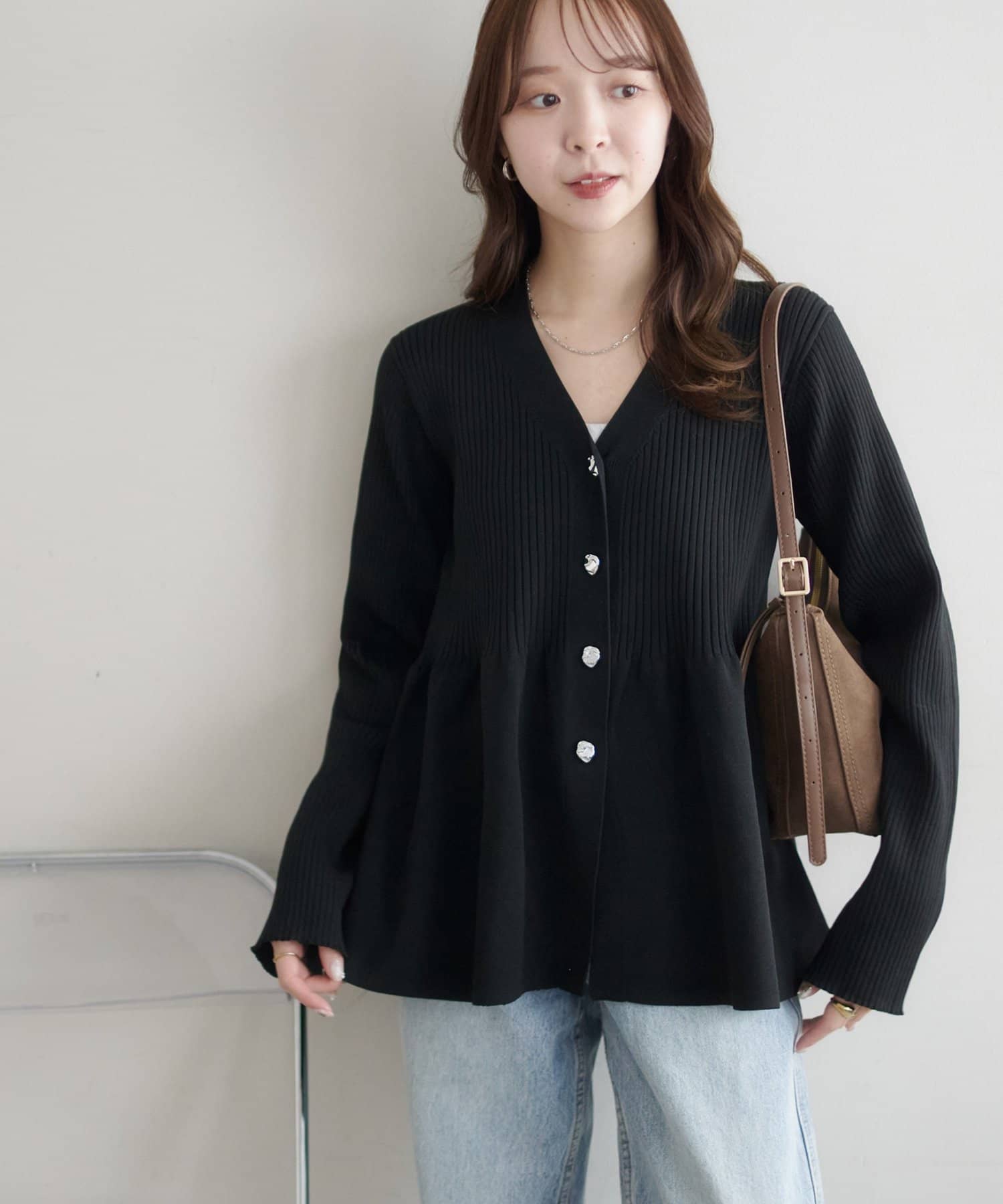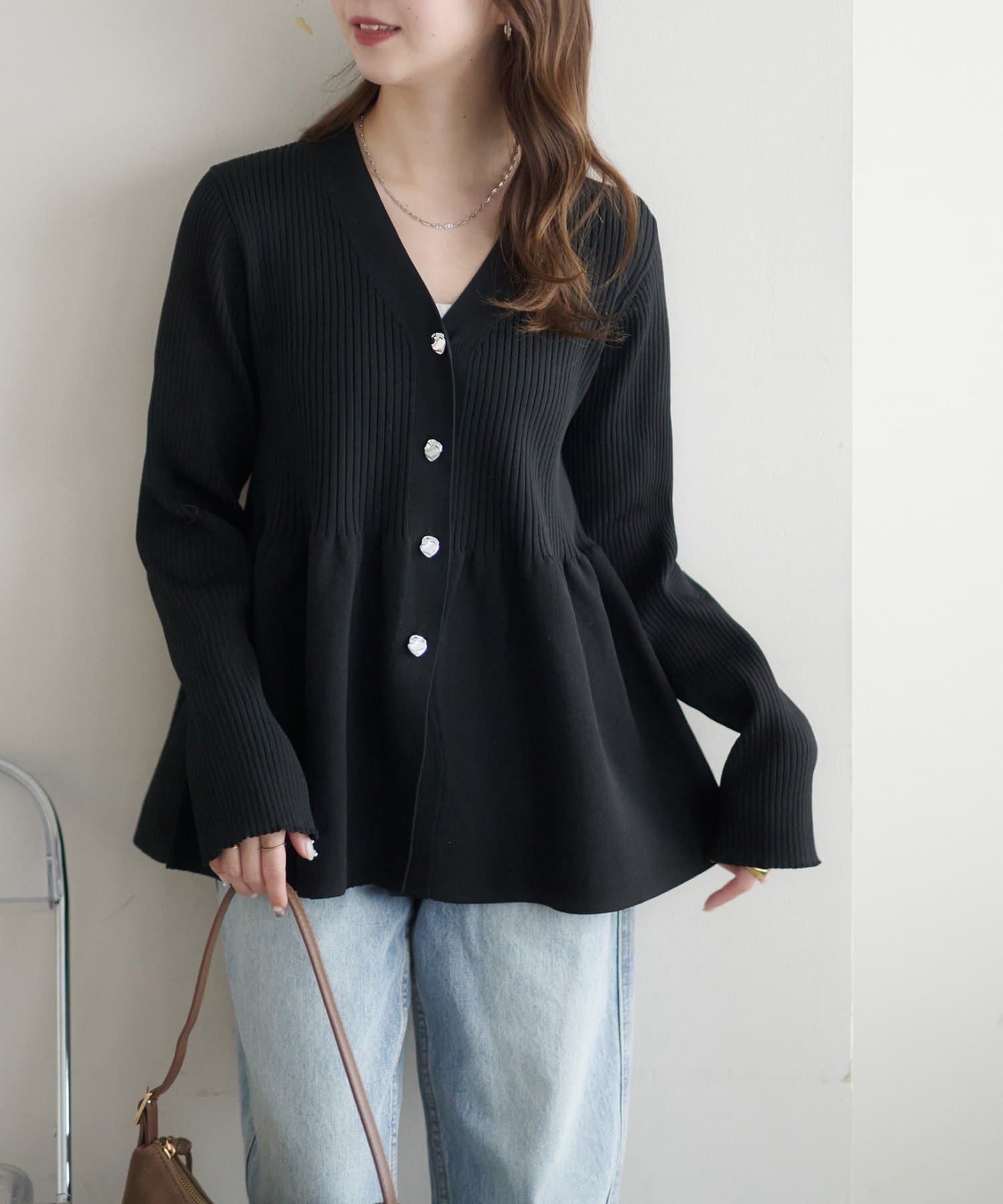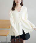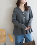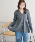【スタイルアップ♪】リブメタル釦ペプラムカーディガン