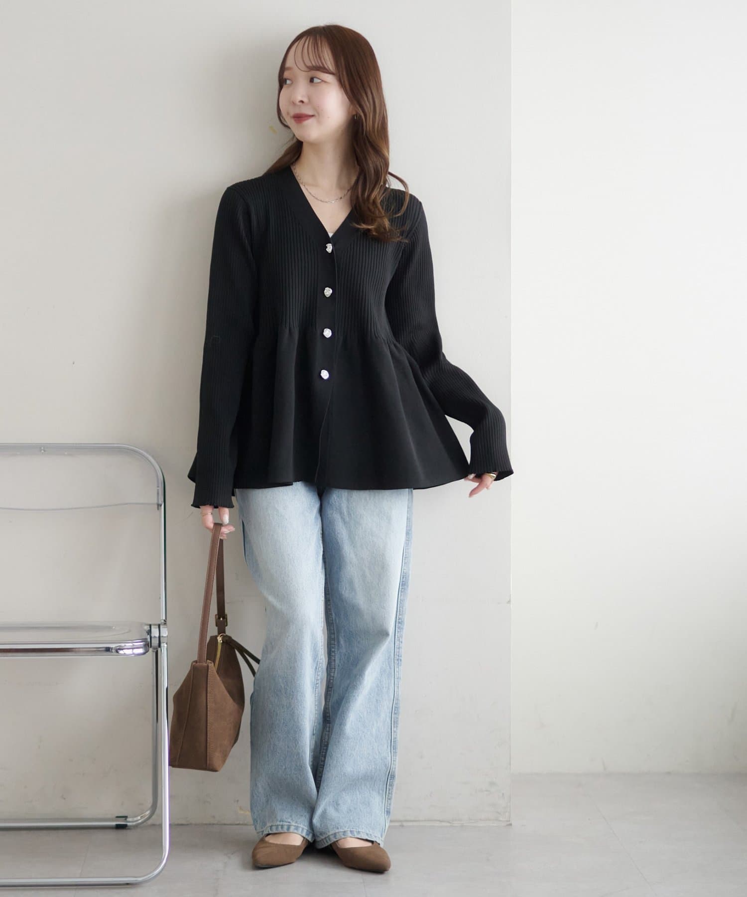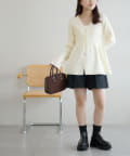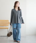 155cmスタッフ:ペプラムシルエットになっているだけで、シンプルなボトムスと合わせても華やかな印象になります!ふわっと広がるデザインも、vネックになっていることですっきりとした雰囲気で着ることができる点も嬉しいポイントです♪