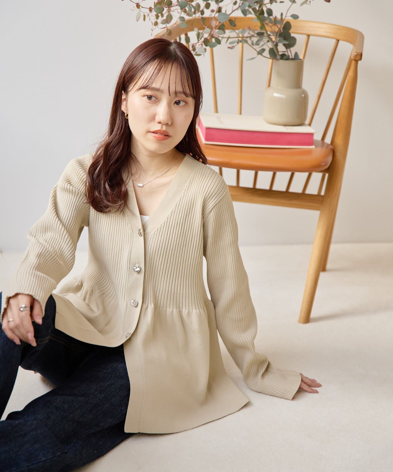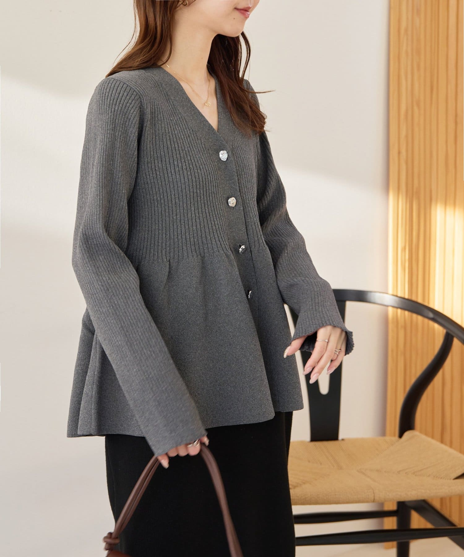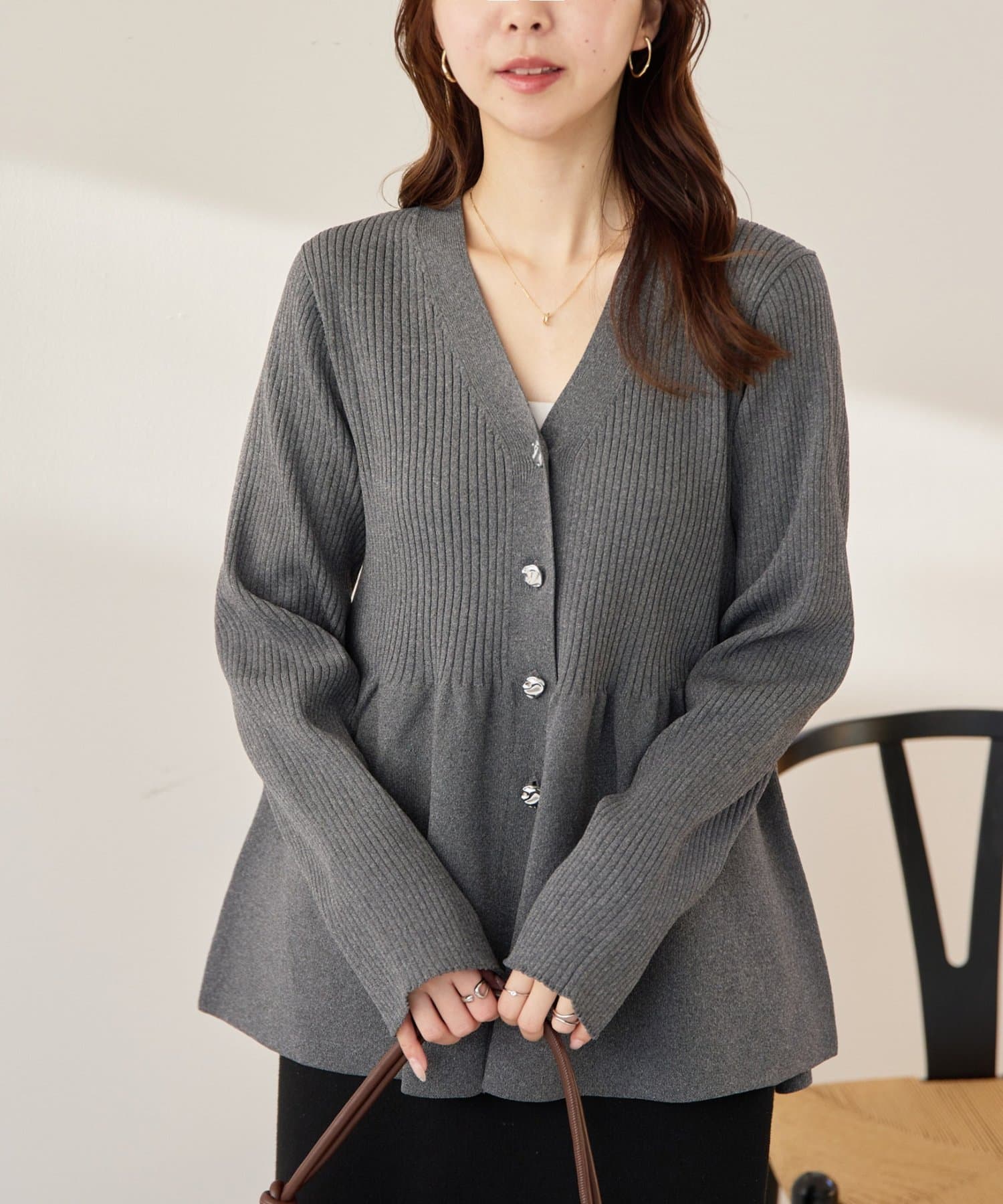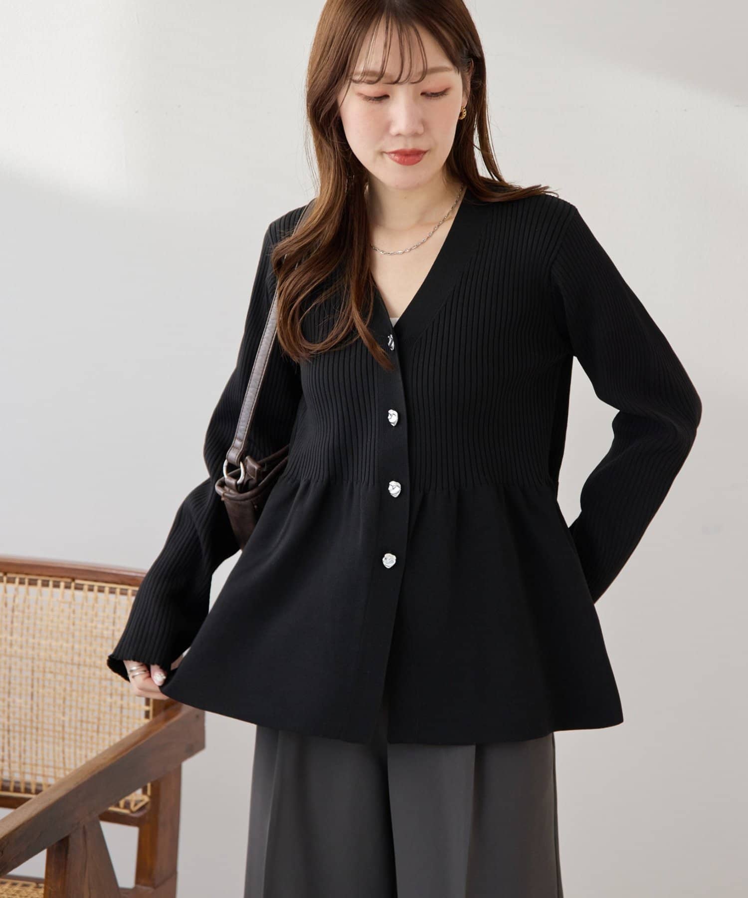 【SS先行予約】リブメタル釦ペプラムカーディガン《WEB限定カラーあり》