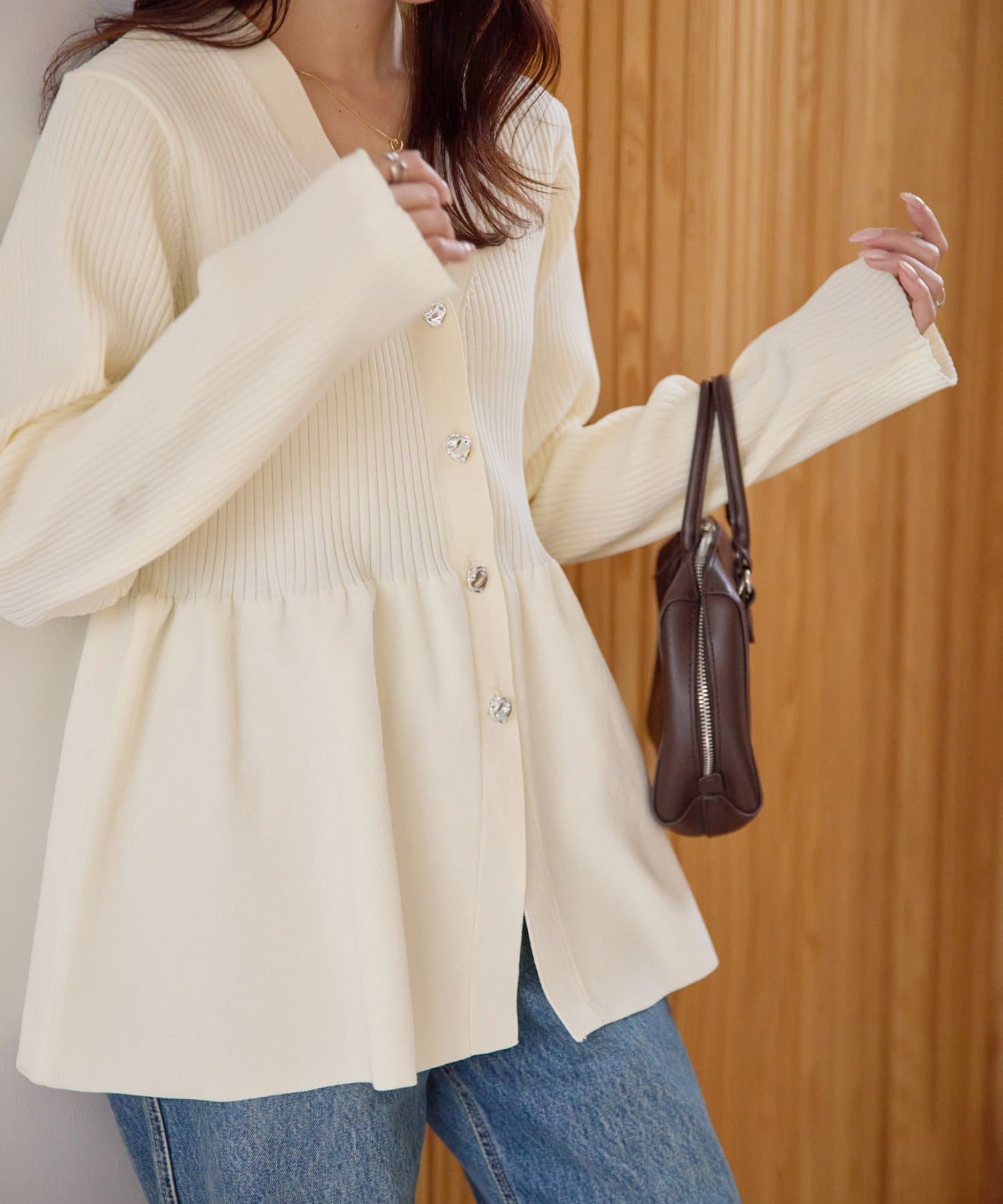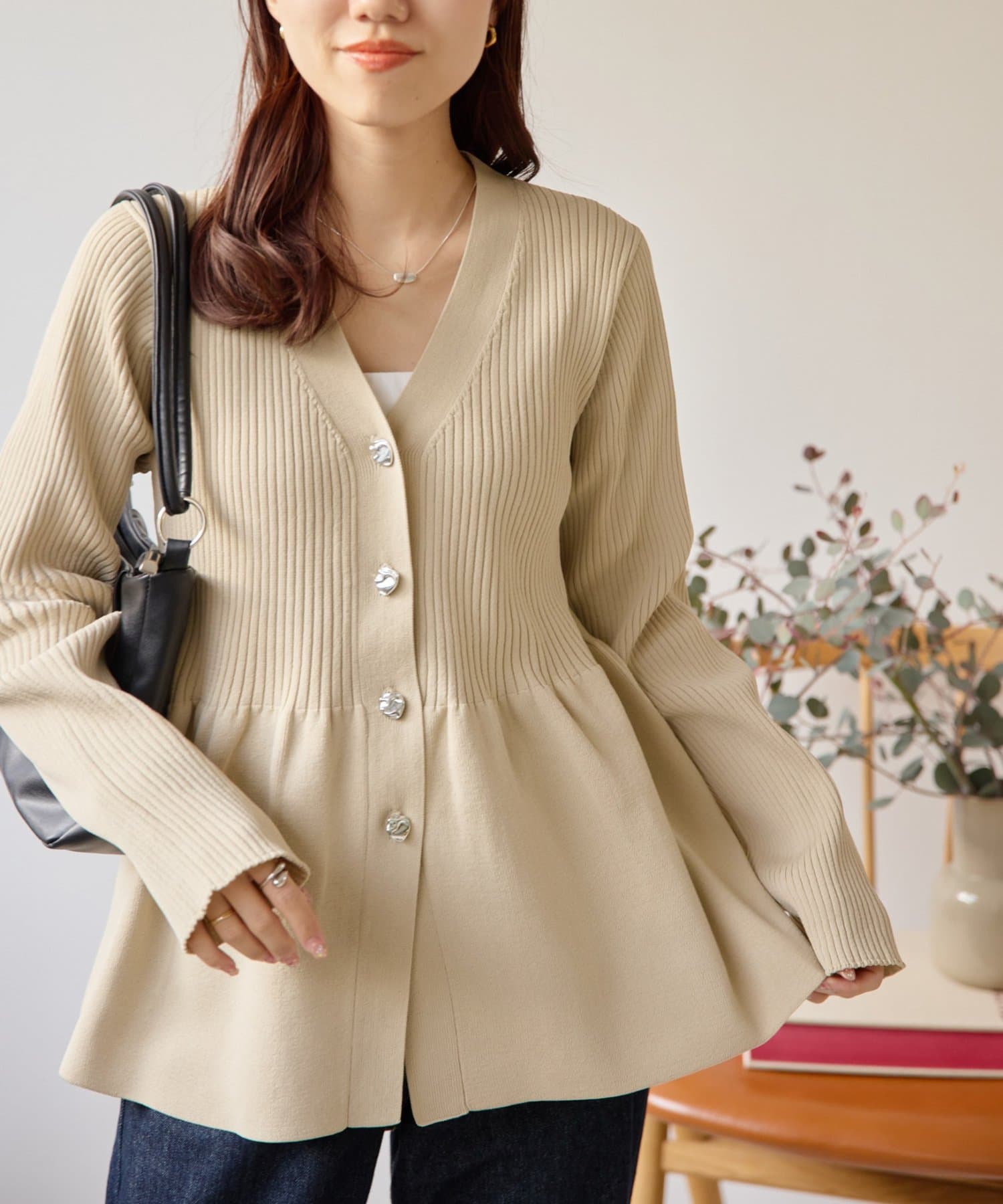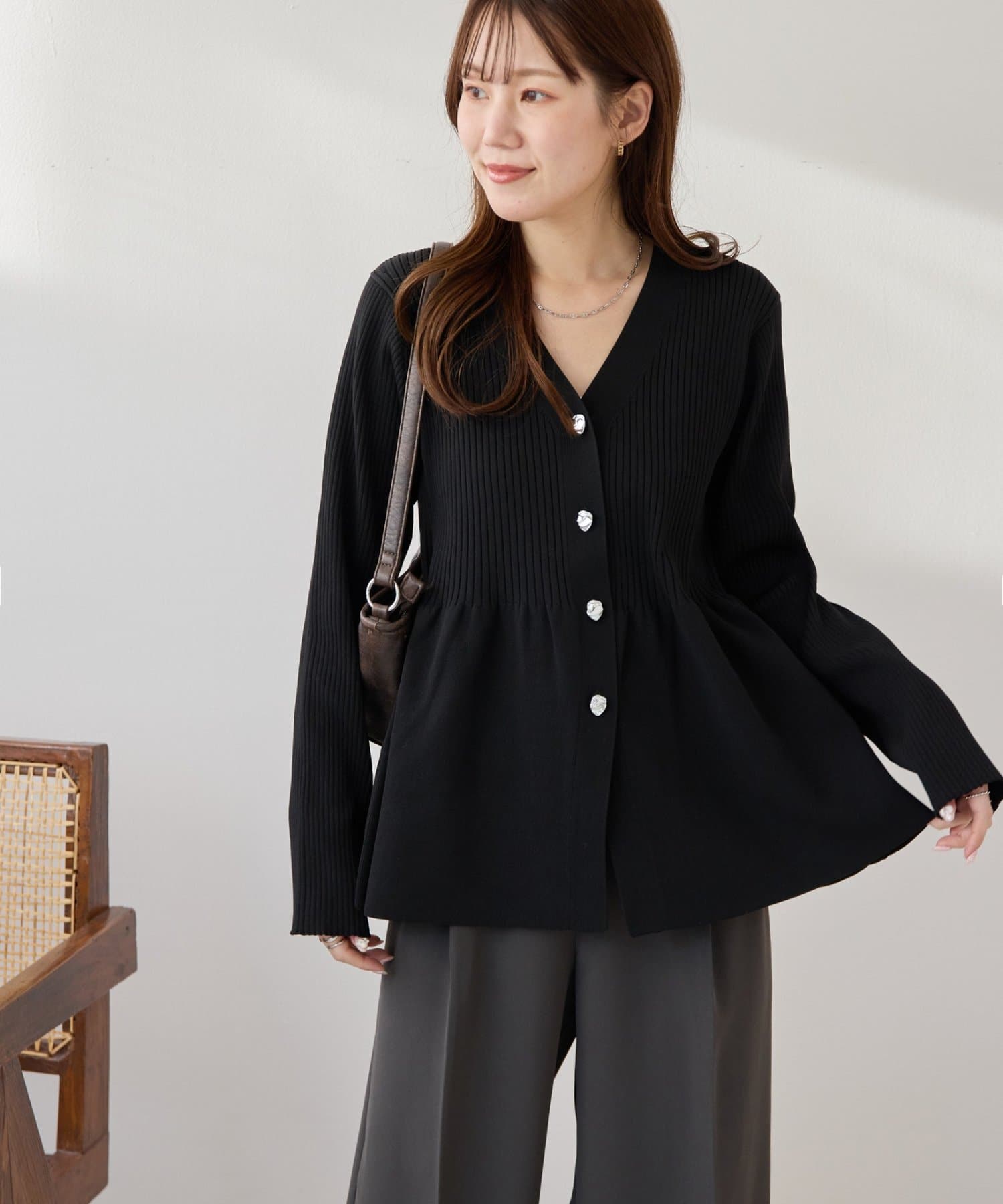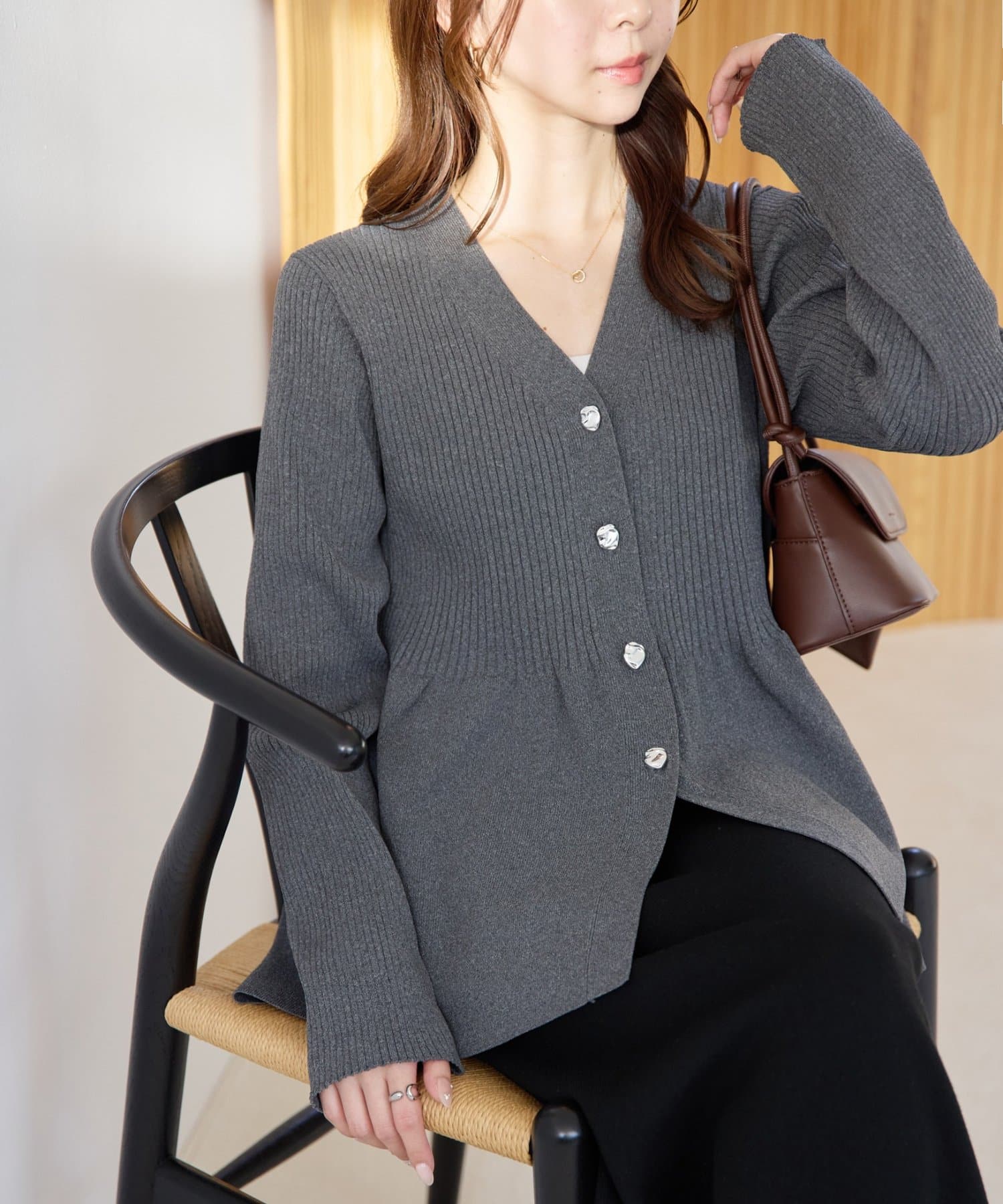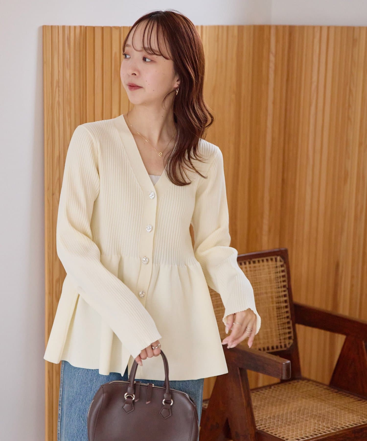 【SS先行予約】リブメタル釦ペプラムカーディガン《WEB限定カラーあり》
