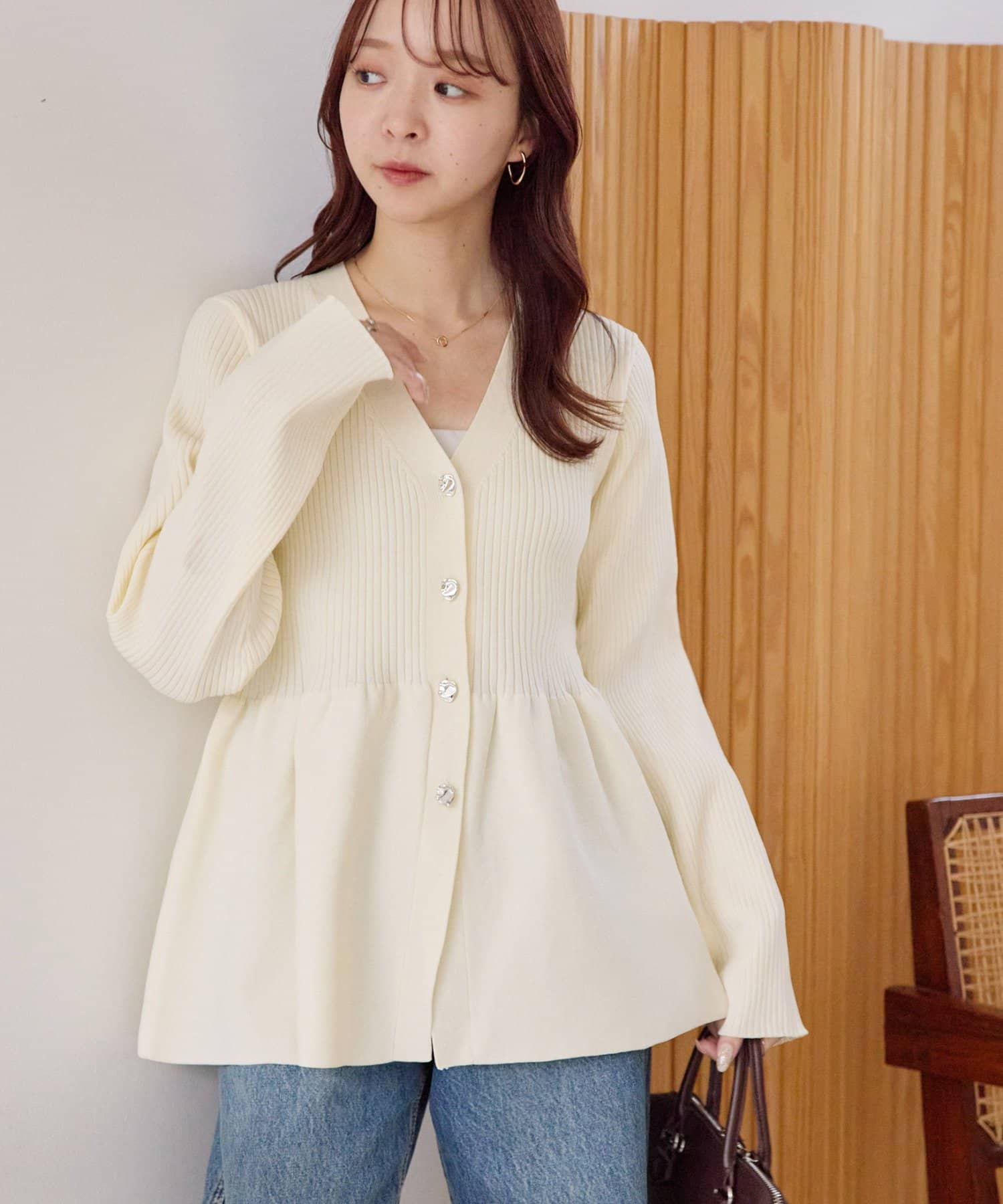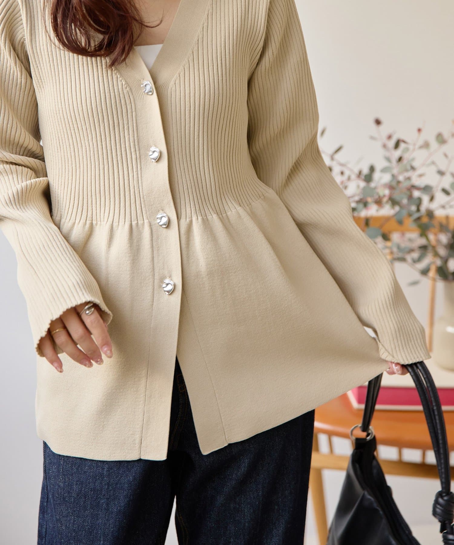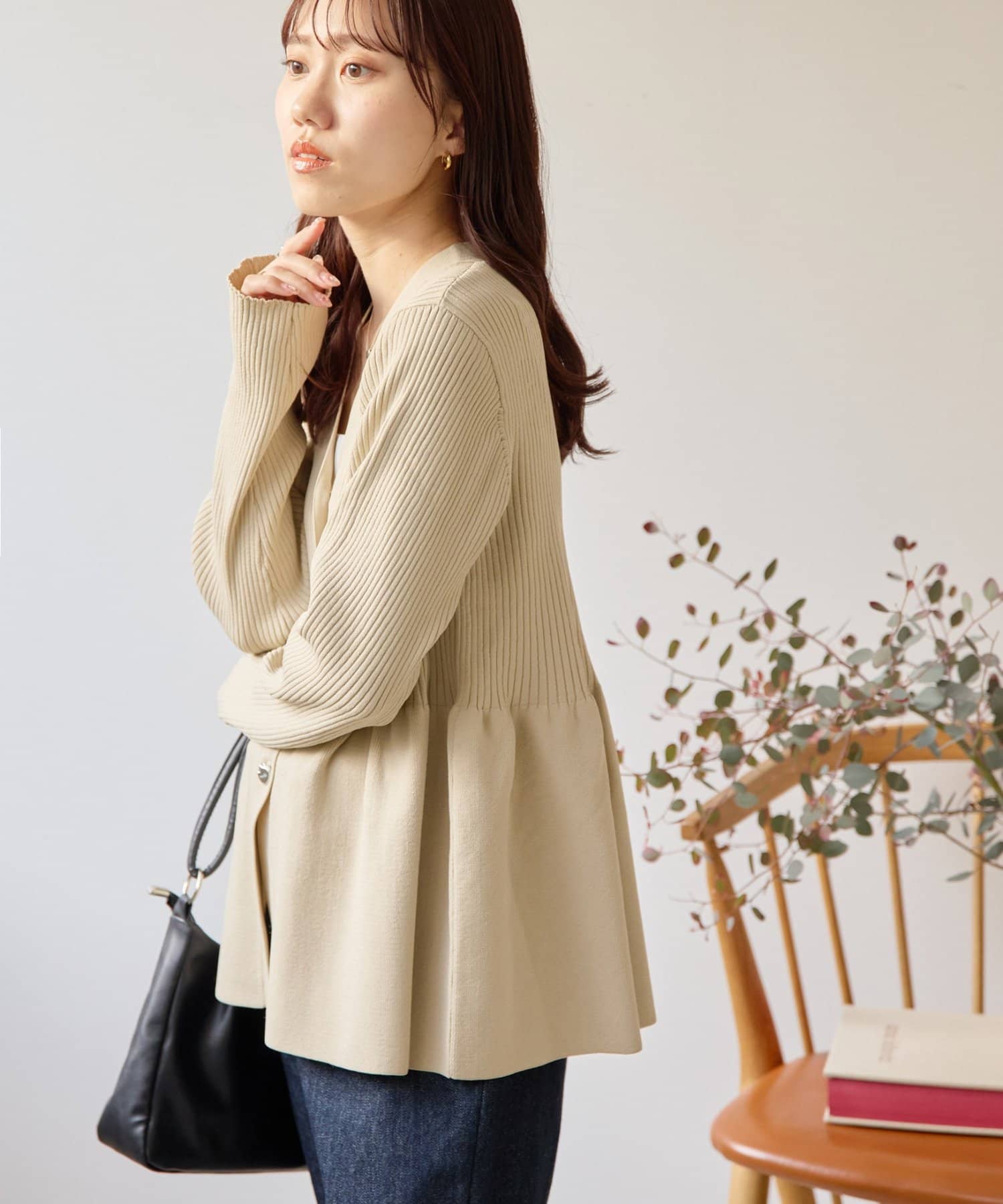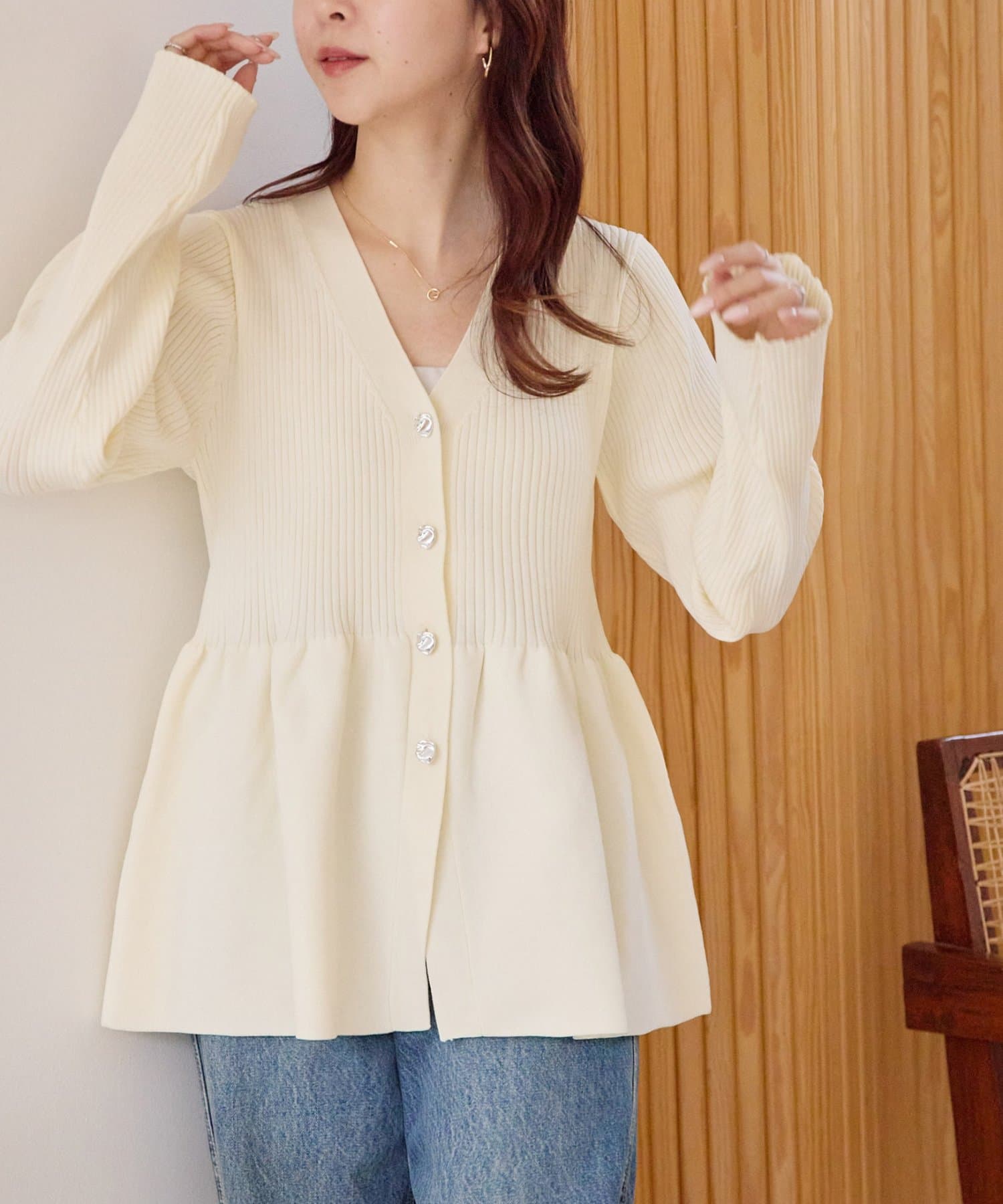 【SS先行予約】リブメタル釦ペプラムカーディガン《WEB限定カラーあり》