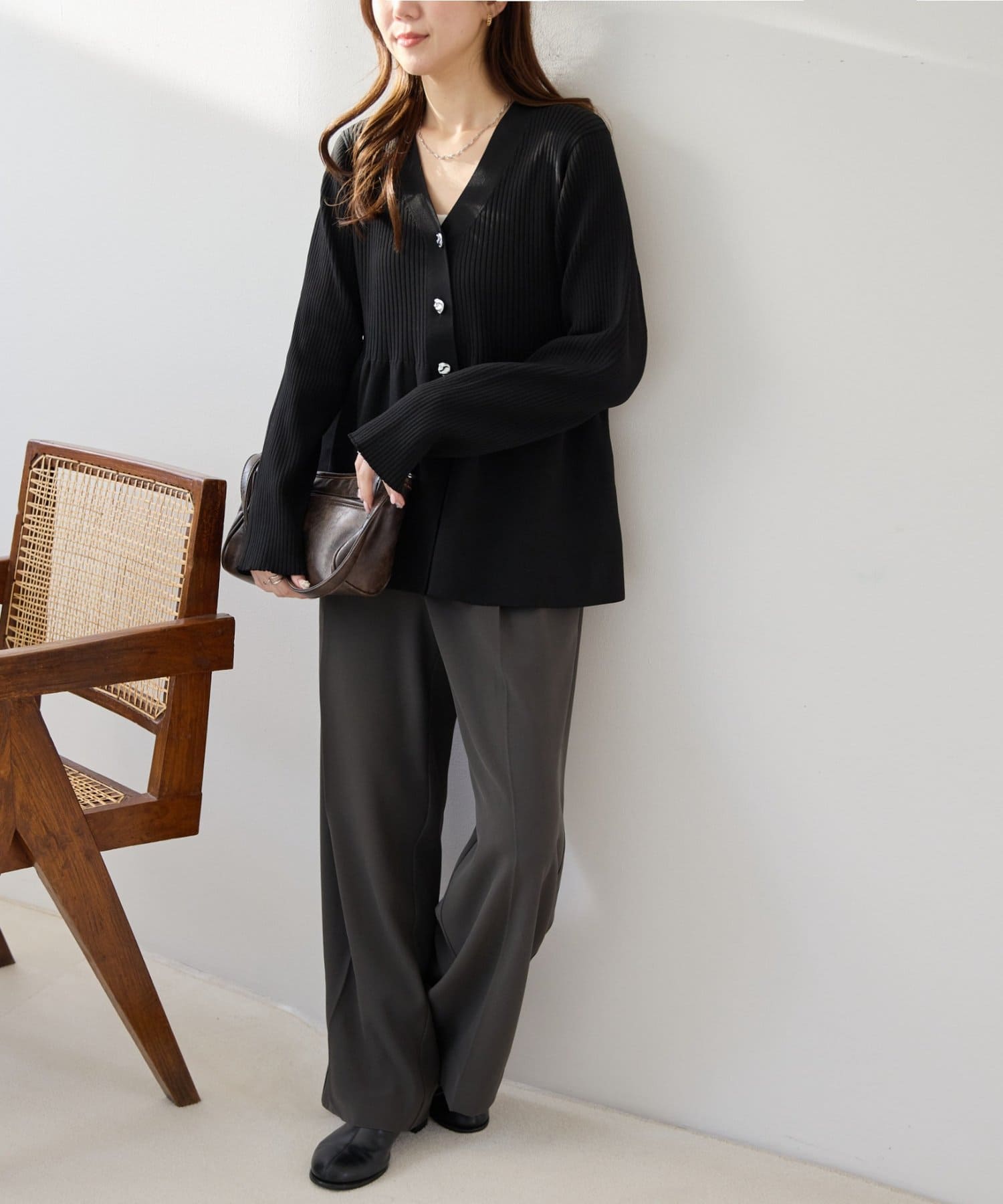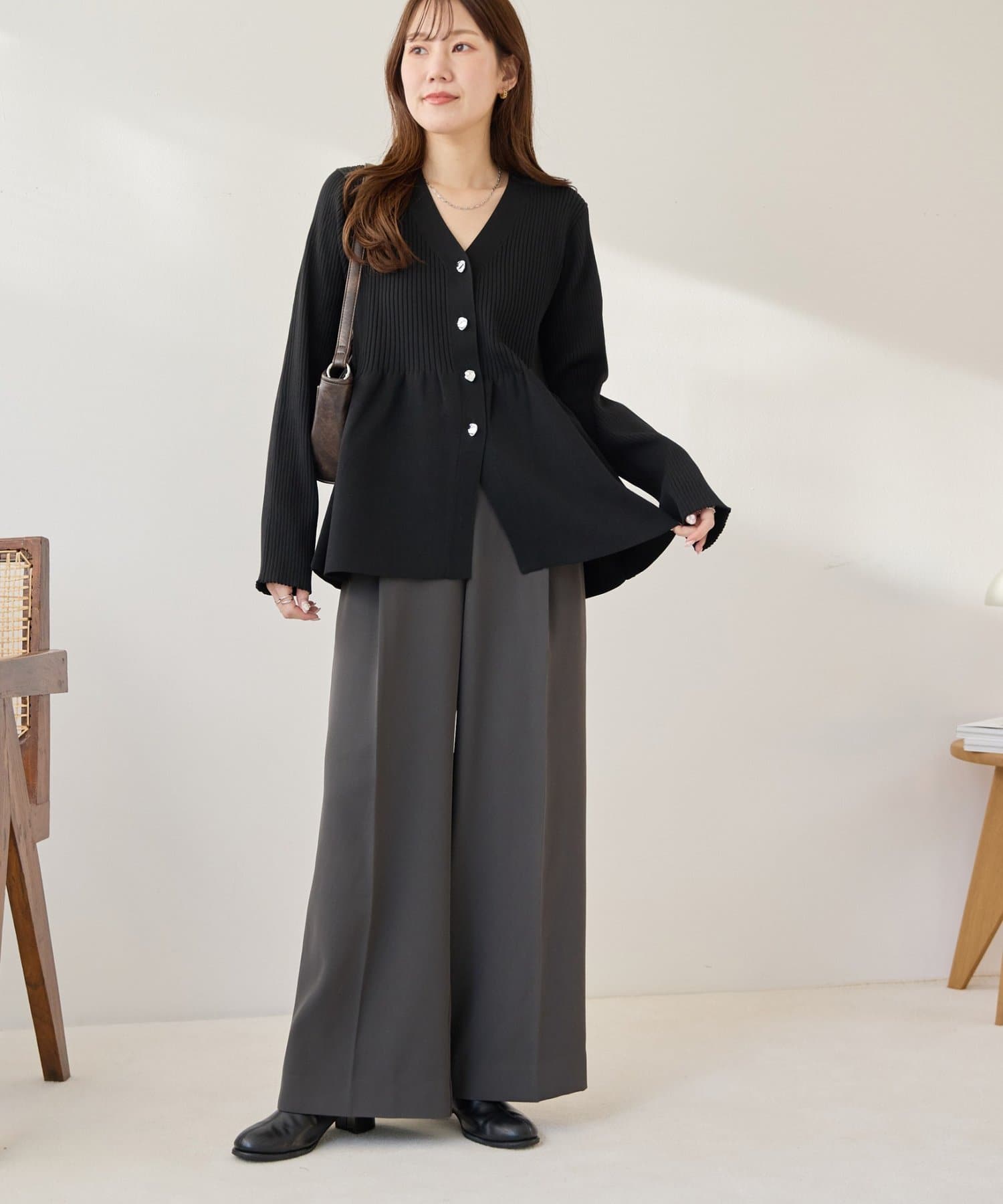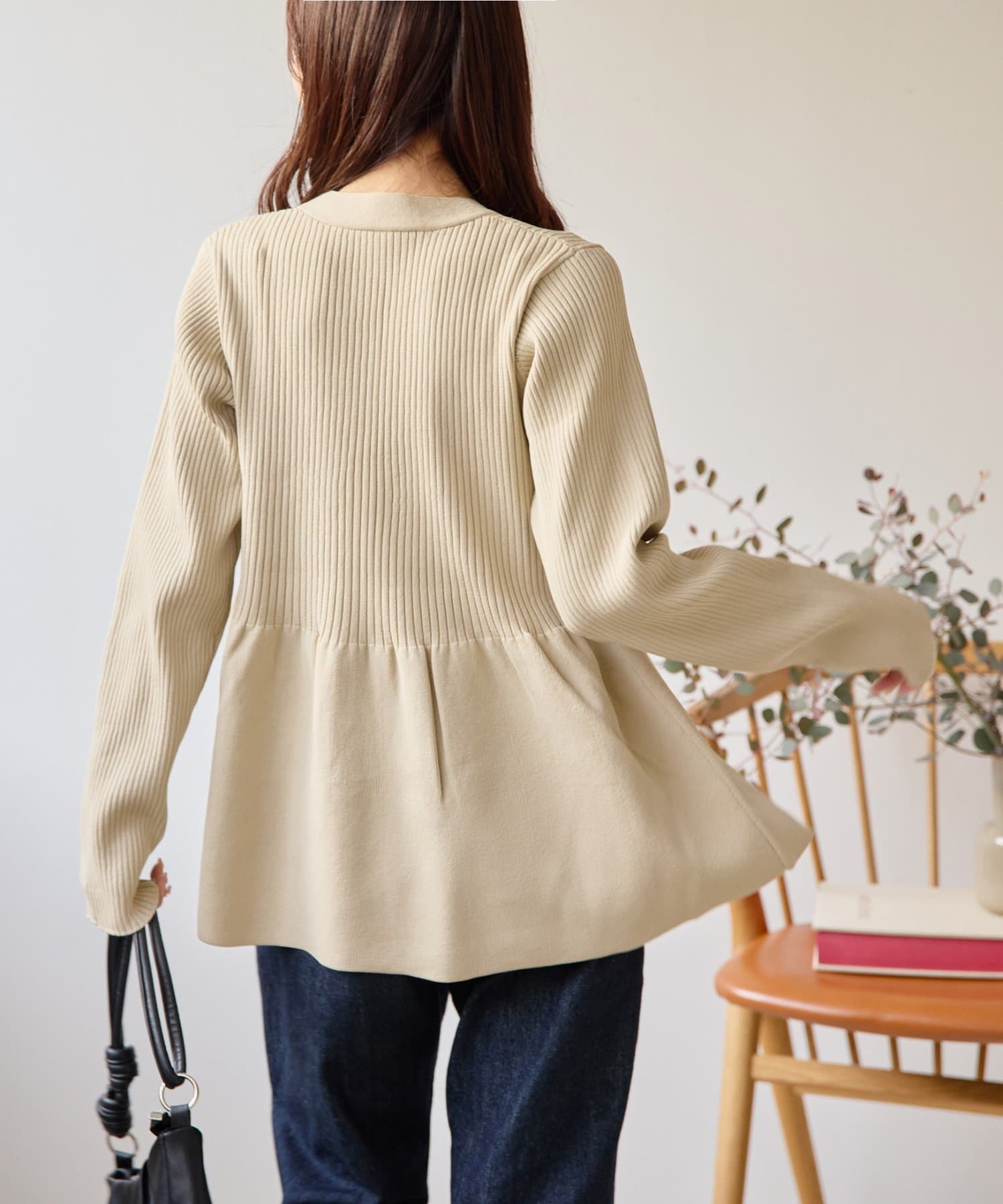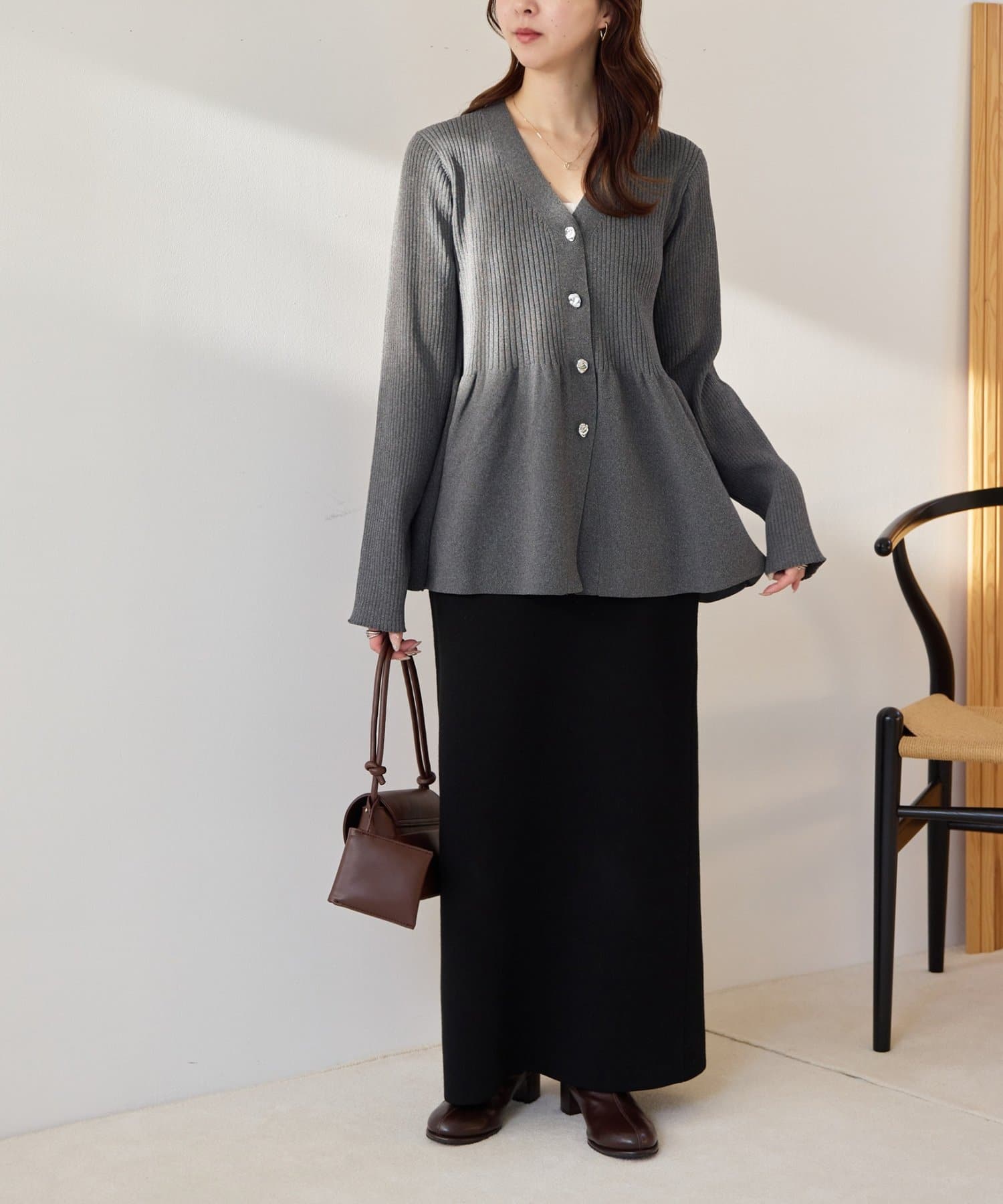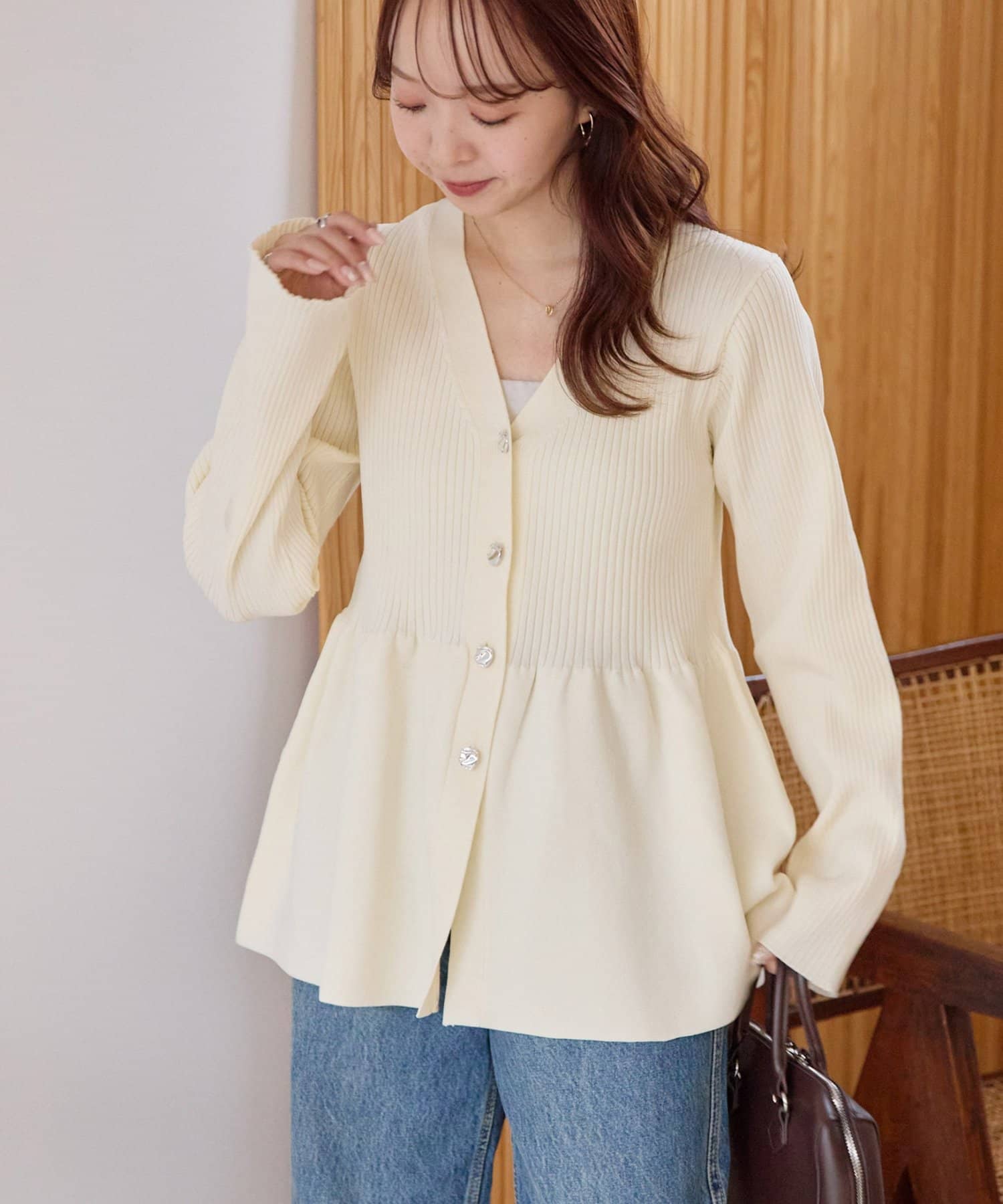 【SS先行予約】リブメタル釦ペプラムカーディガン《WEB限定カラーあり》