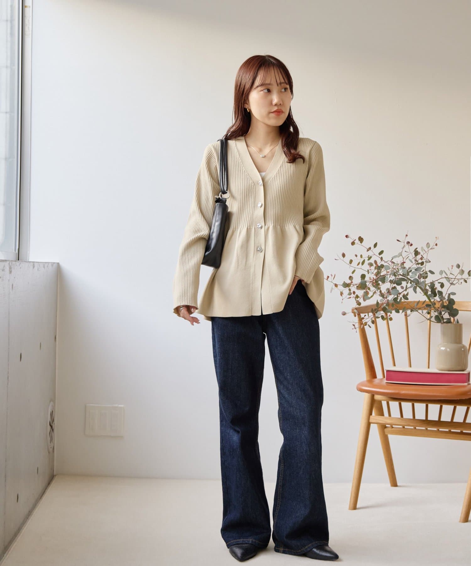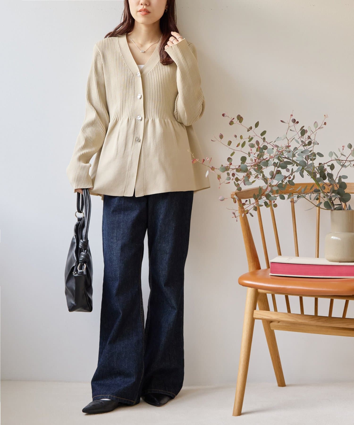 DISCOAT(ディスコート) 【SS先行予約】リブメタル釦ペプラムカーディガン《WEB限定カラーあり》