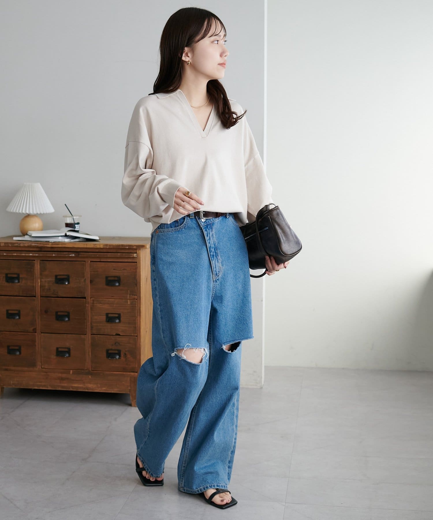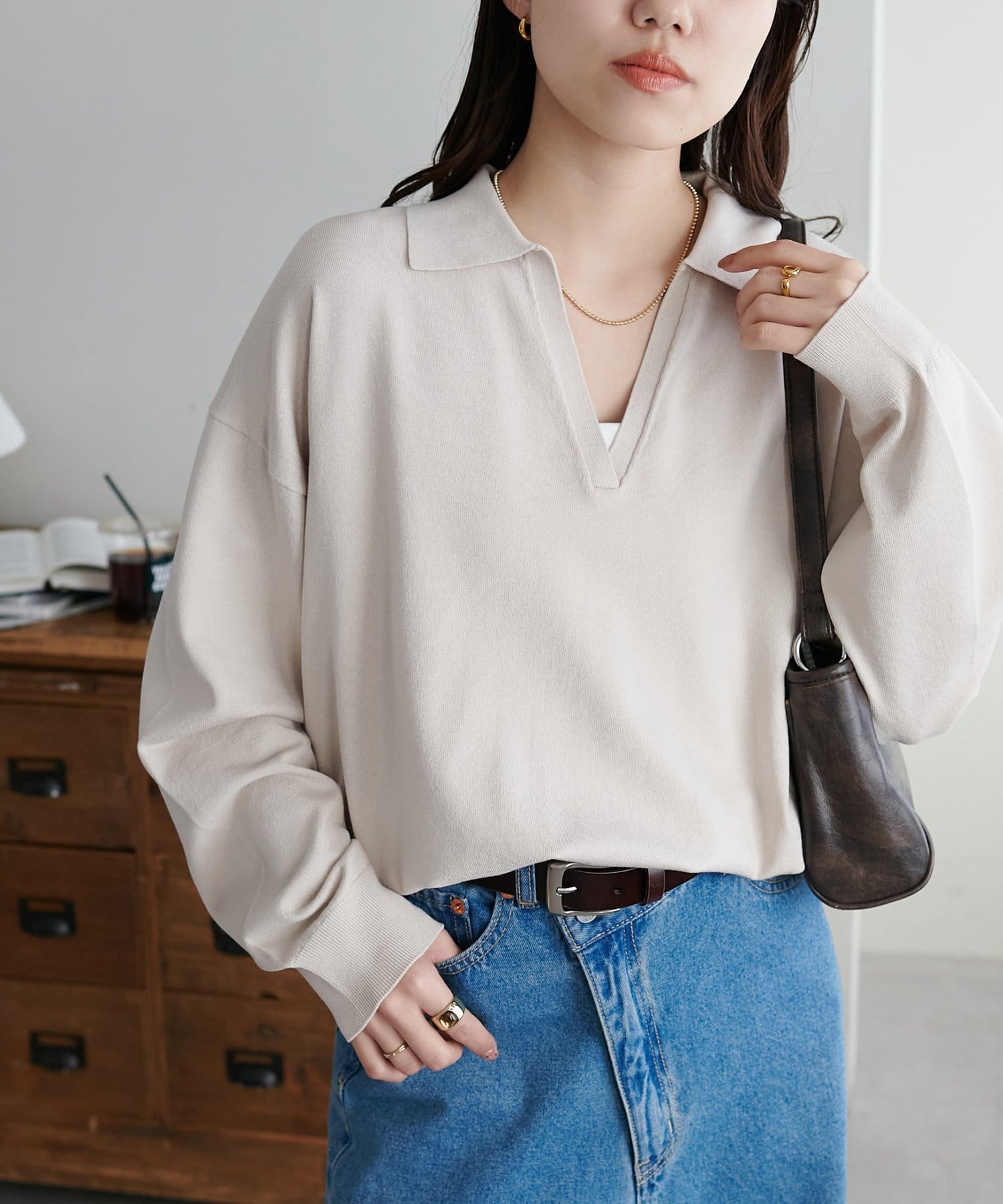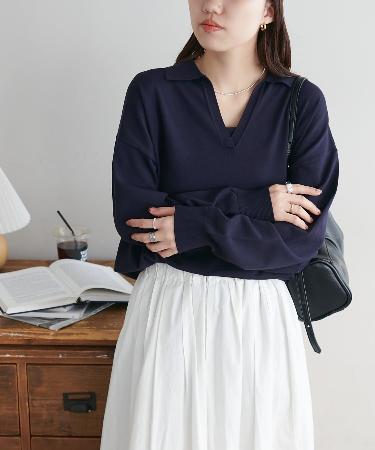 着心地が良く、軽くて春らしい着こなしができます。シンプルなので小物やボトムス何でも合わせやすいです。