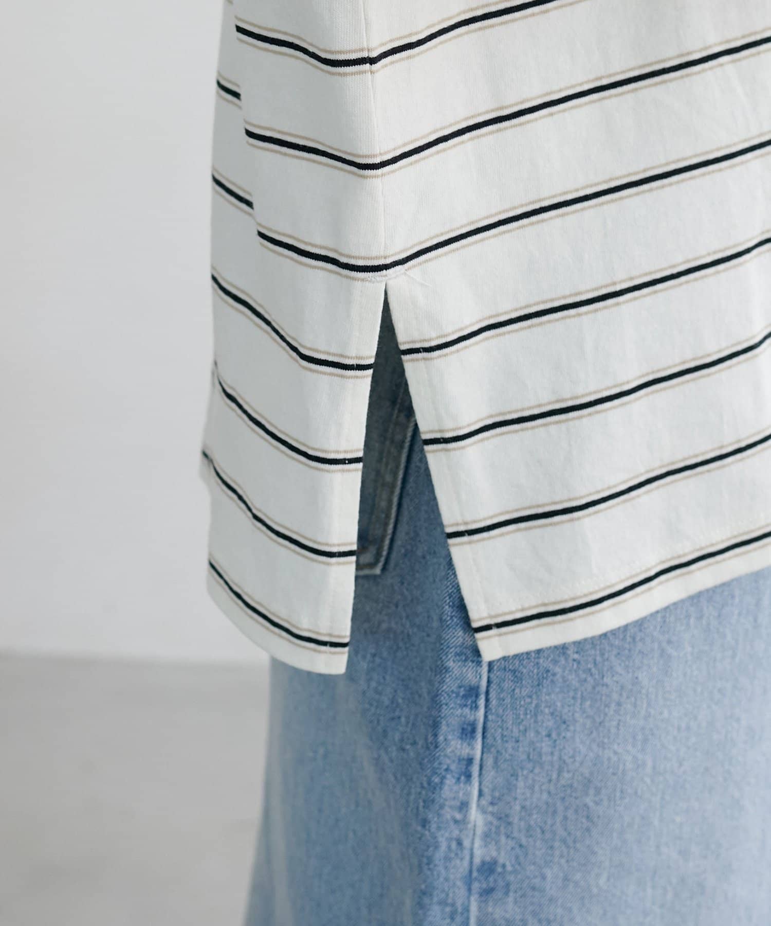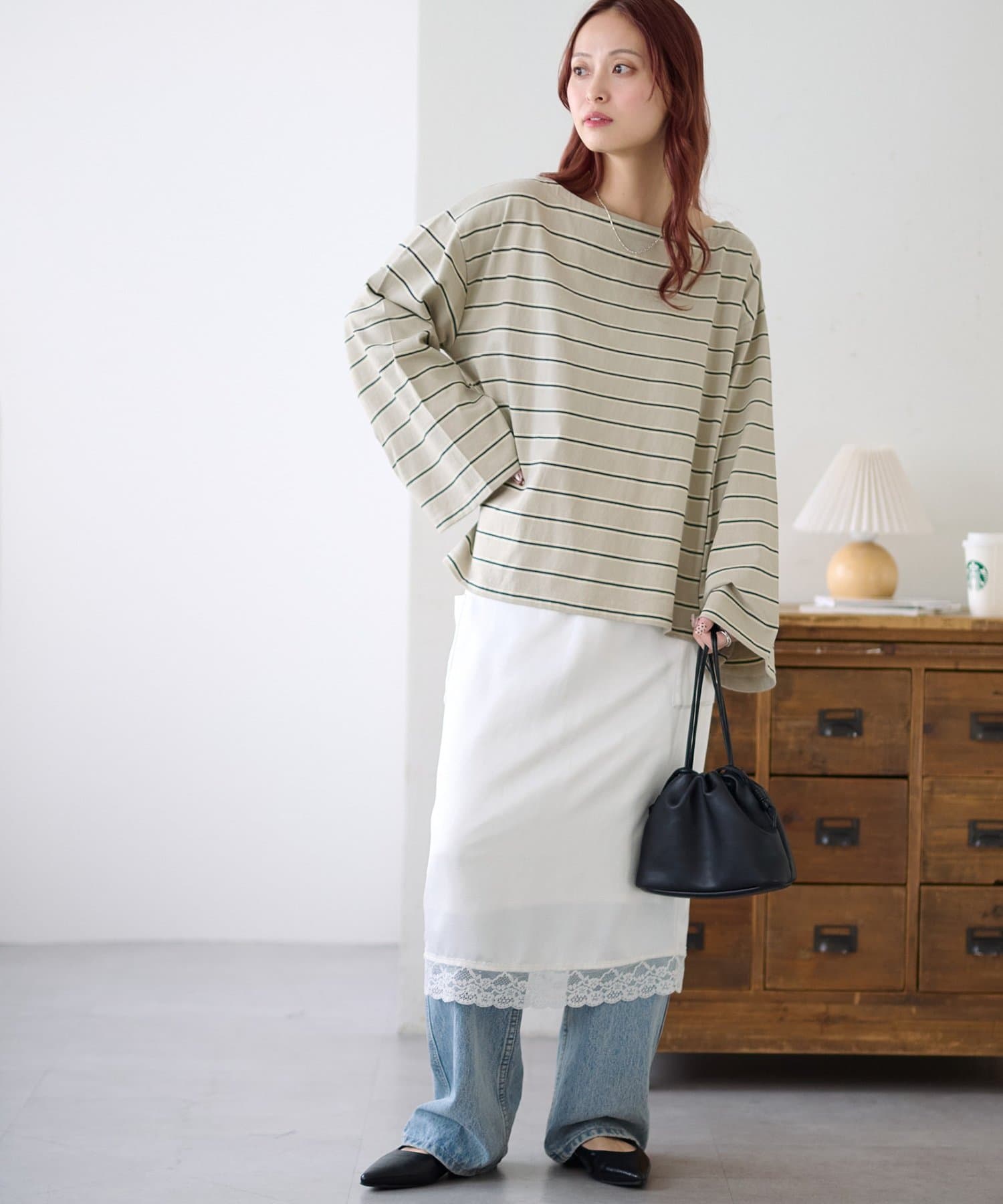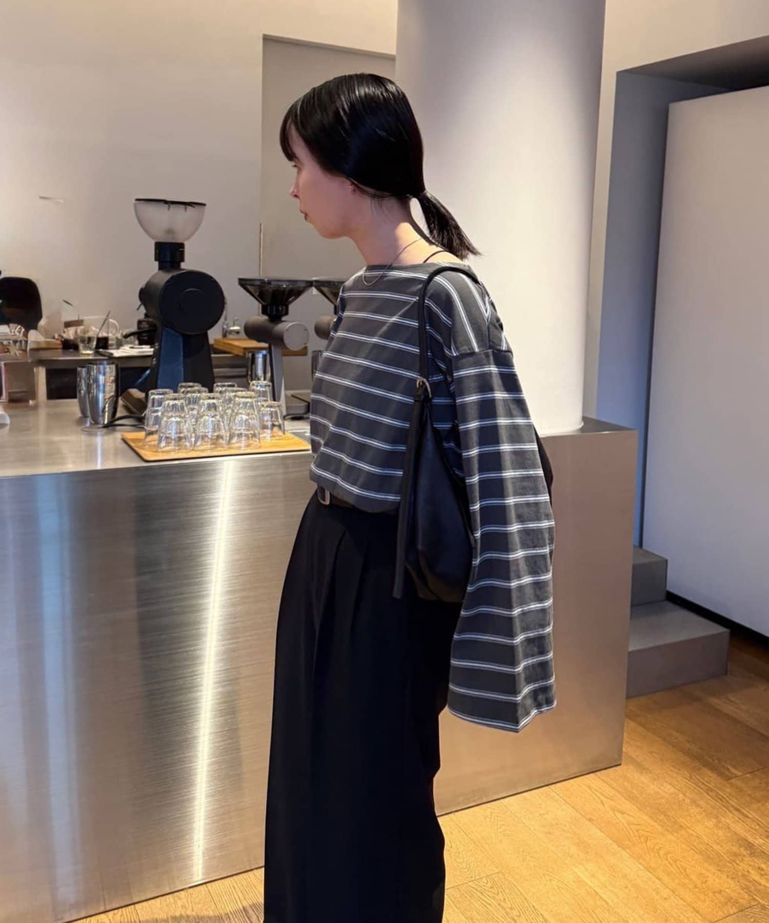 ・細めのボーダーはカジュアルすぎず、大人見えを叶えます♪