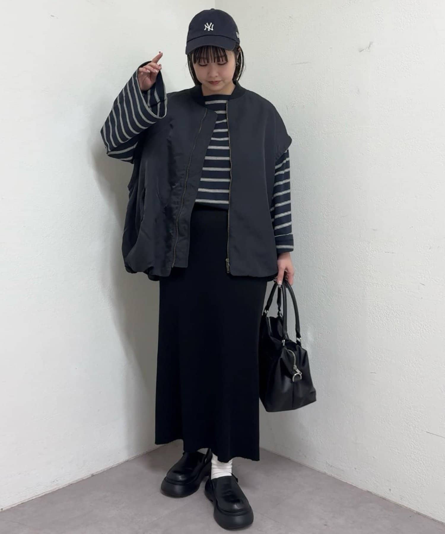 ・スカートを合わせた女性らしいコーデにもマッチします。