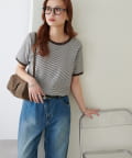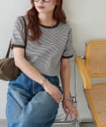 TOP > DISCOAT > レディース > トップス > Tシャツ/カットソー > リンガーボーダー5分袖