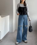 ▶ライトデニムタックワイドパンツ