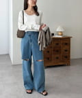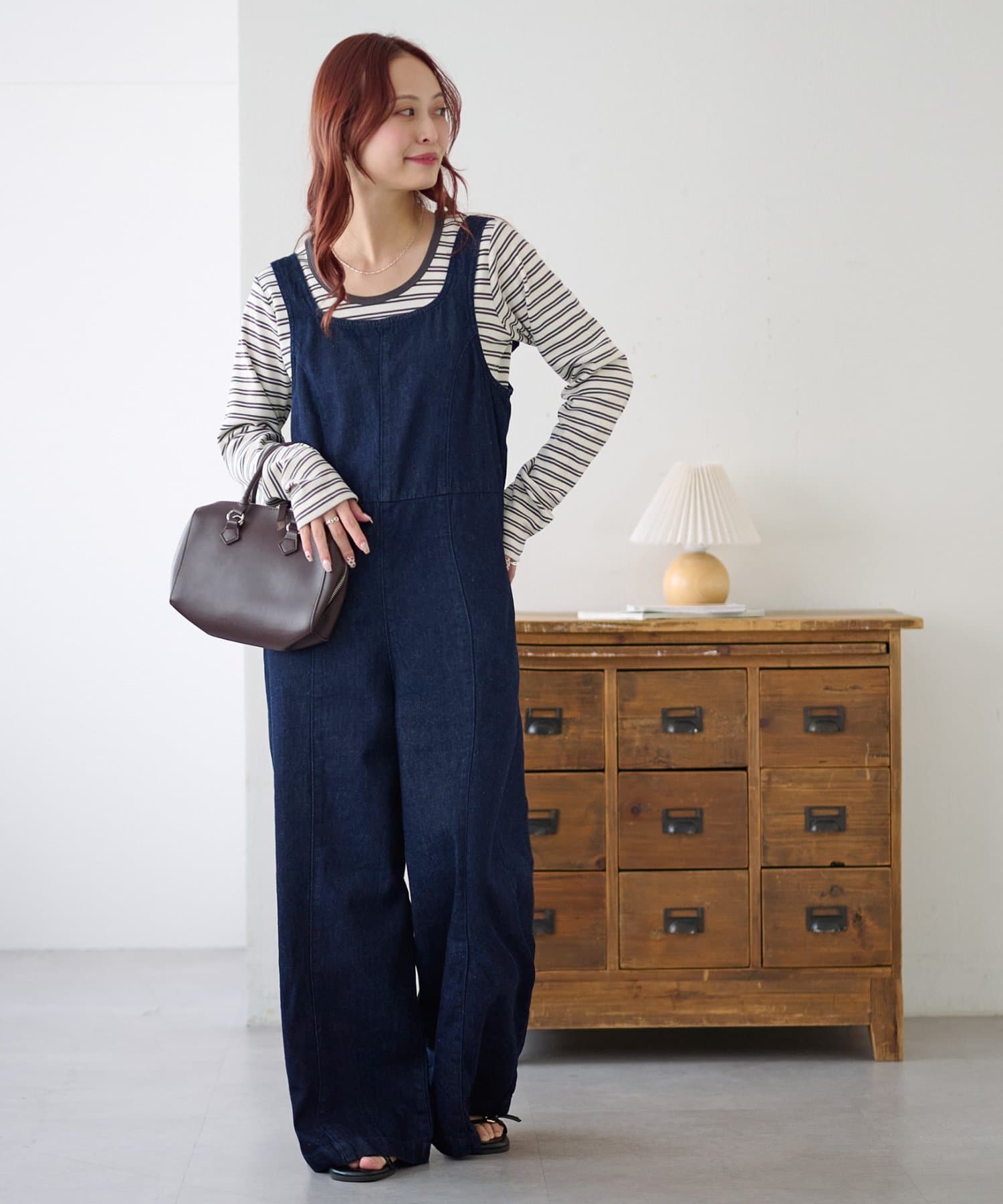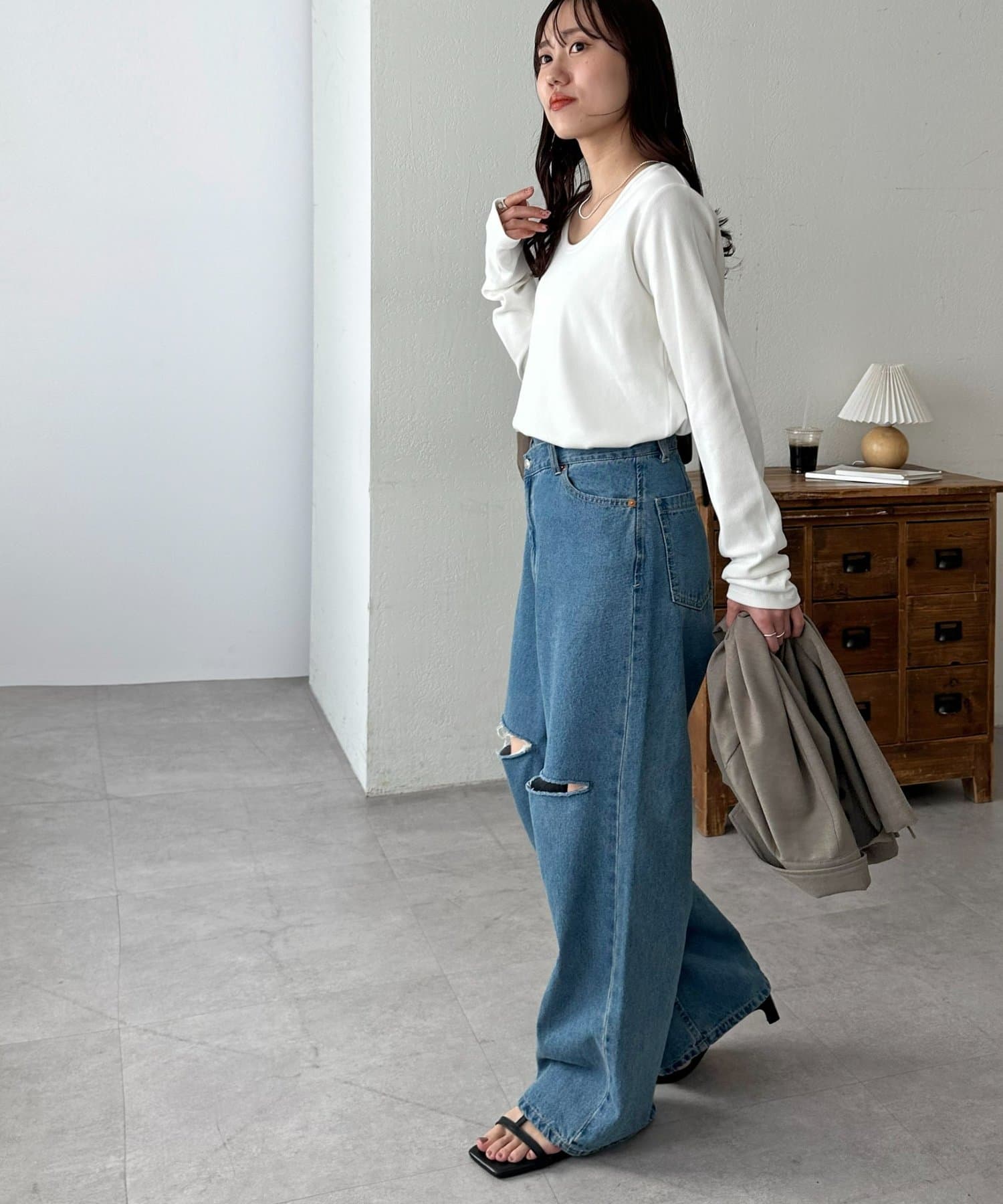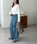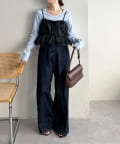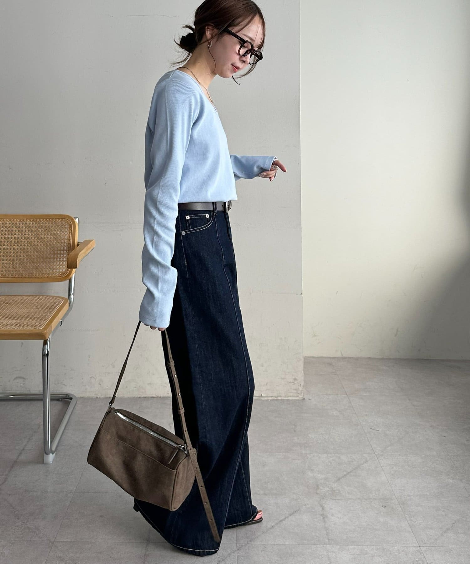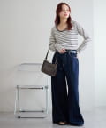 ▶ハイウエストステッチ使いデニムワイドパンツ