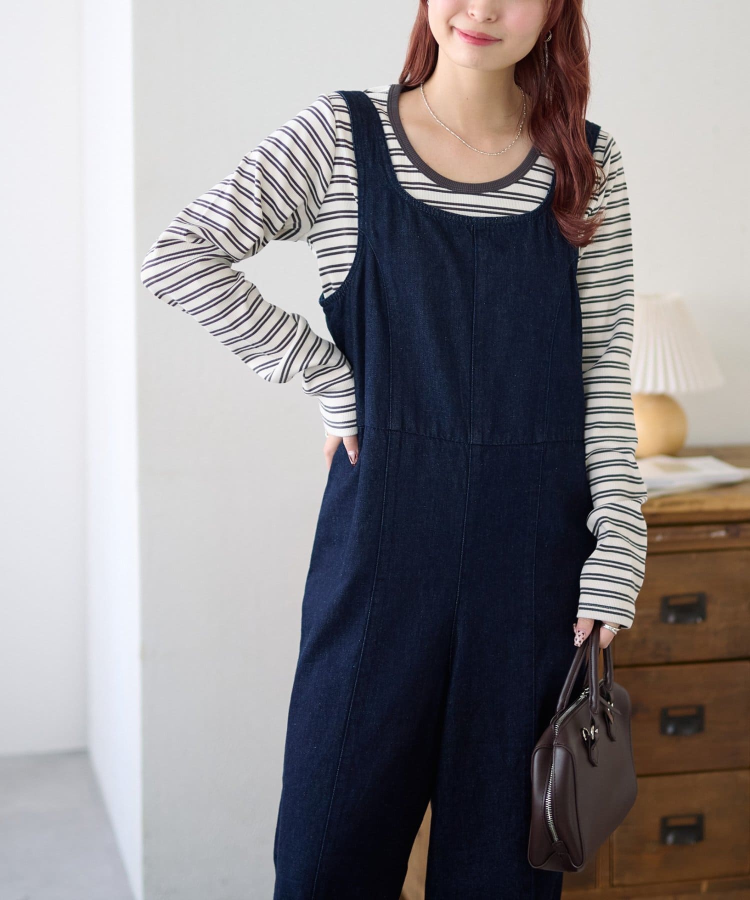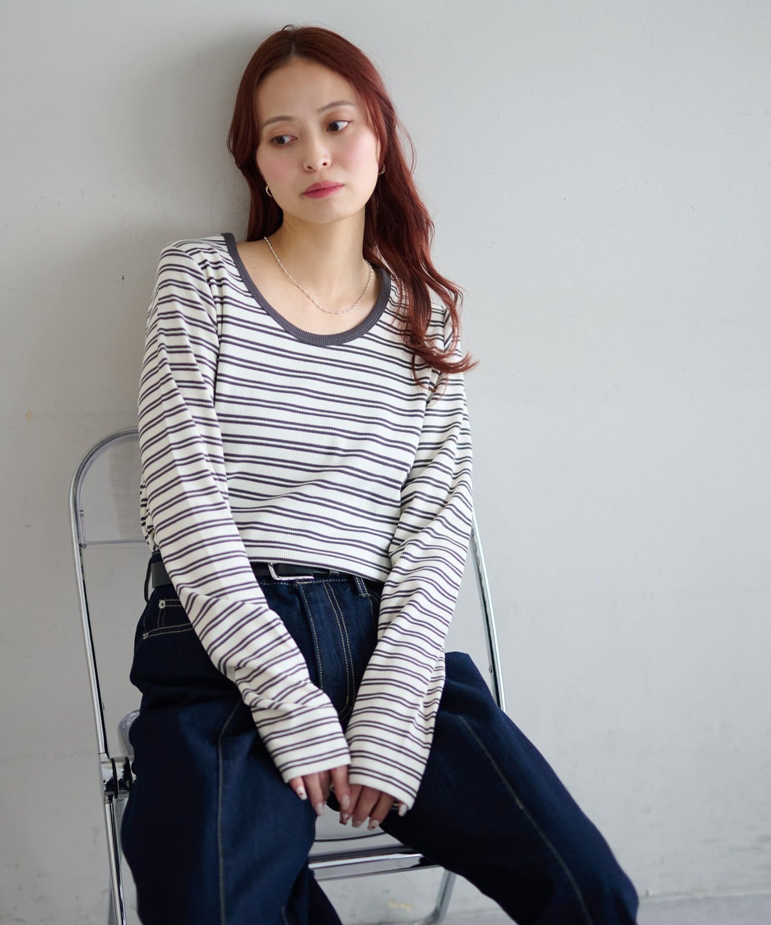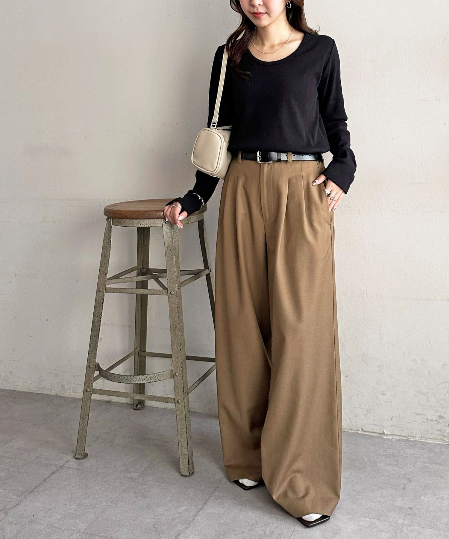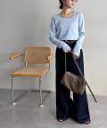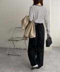 164cmスタッフ:首元が開きすぎないので、1枚でも安心感があり、オンオフ問わず使えます!腰骨あたりの丈感で、アウトで着てもだらしなく見えなかったです。