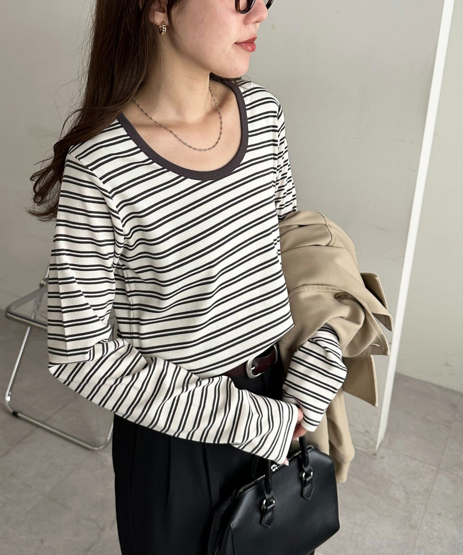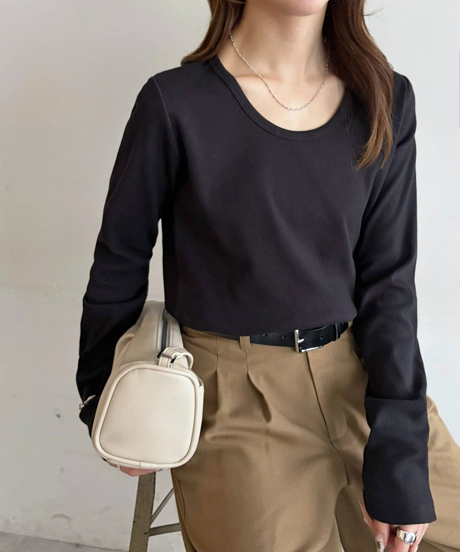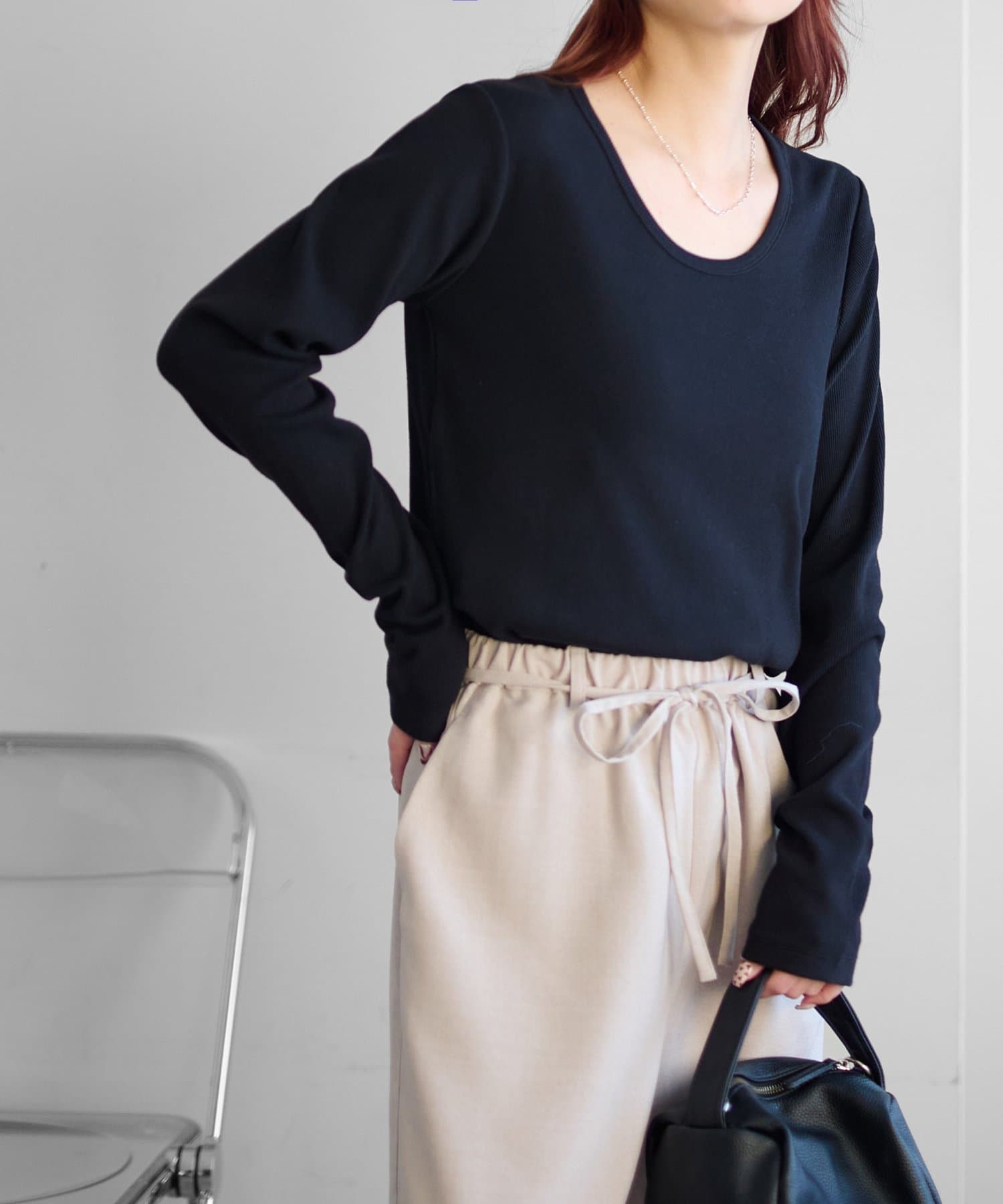155cmスタッフ:リブ素材ですが締め付け感がなく、1日着ていてもストレスフリーです◎ ベーシックなので色違いで揃えたくなるアイテムです。