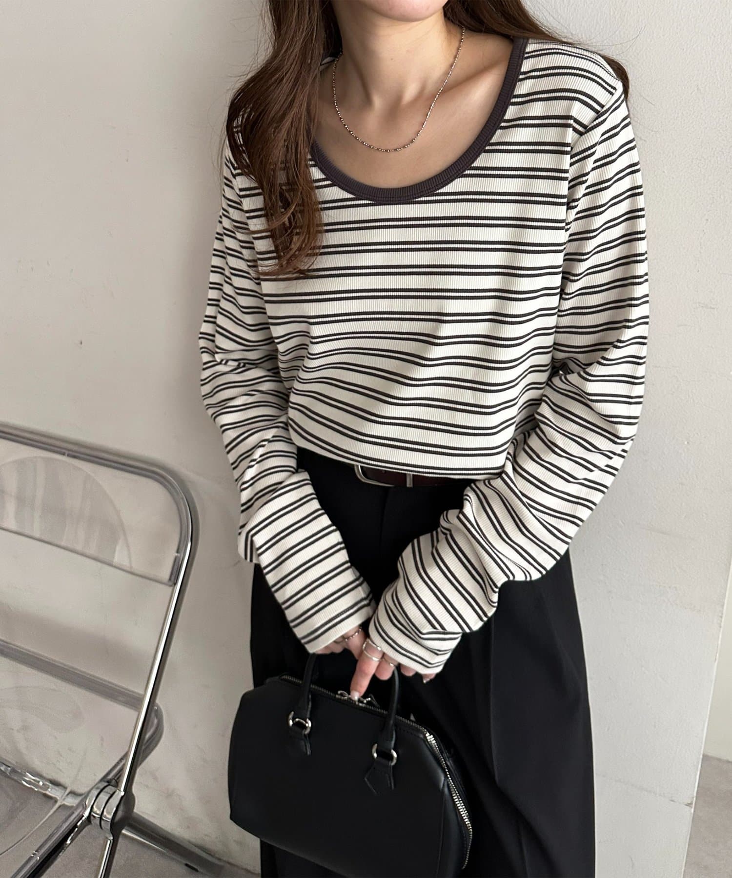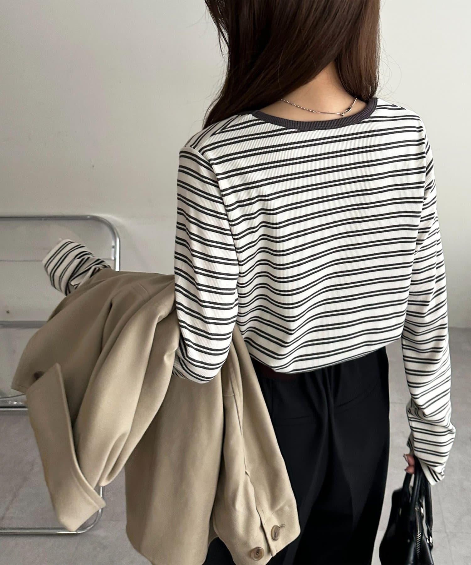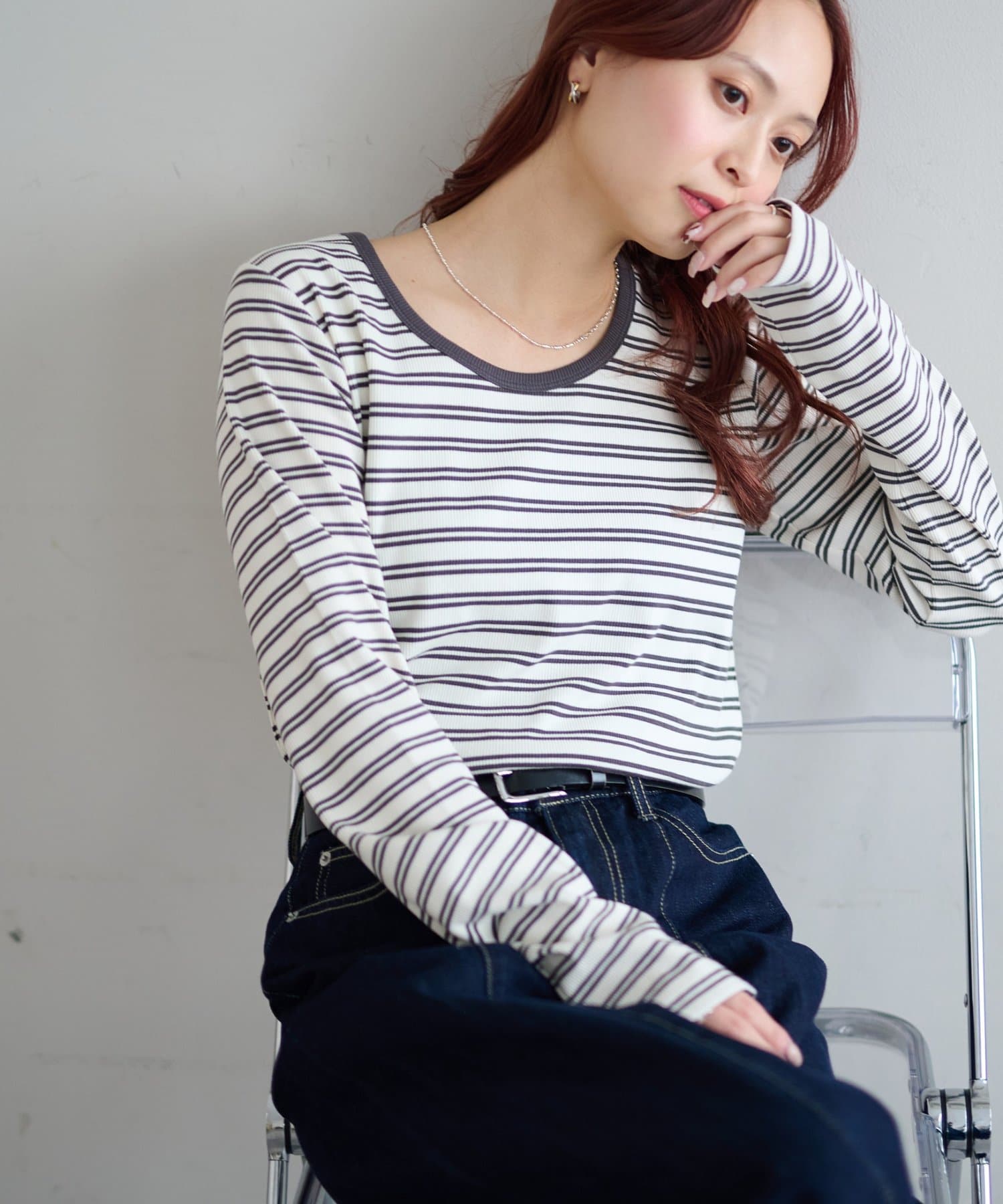 155cmスタッフ:リブ素材ですが締め付け感がなく、1日着ていてもストレスフリーです◎ ベーシックなので色違いで揃えたくなるアイテムです。