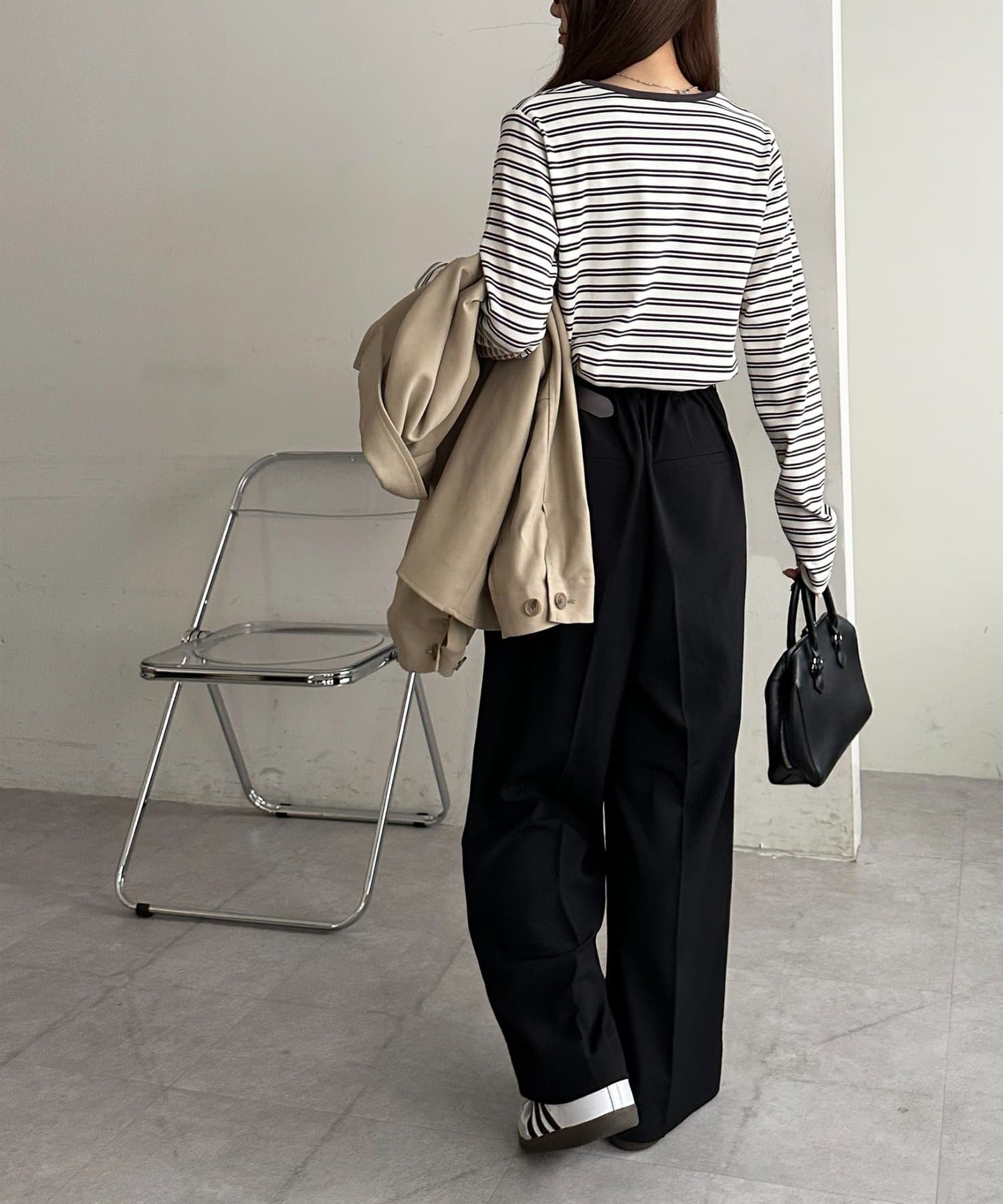 ・ベルトやアクセサリーをプラスすることで、シンプルながらもこなれ感を演出♪