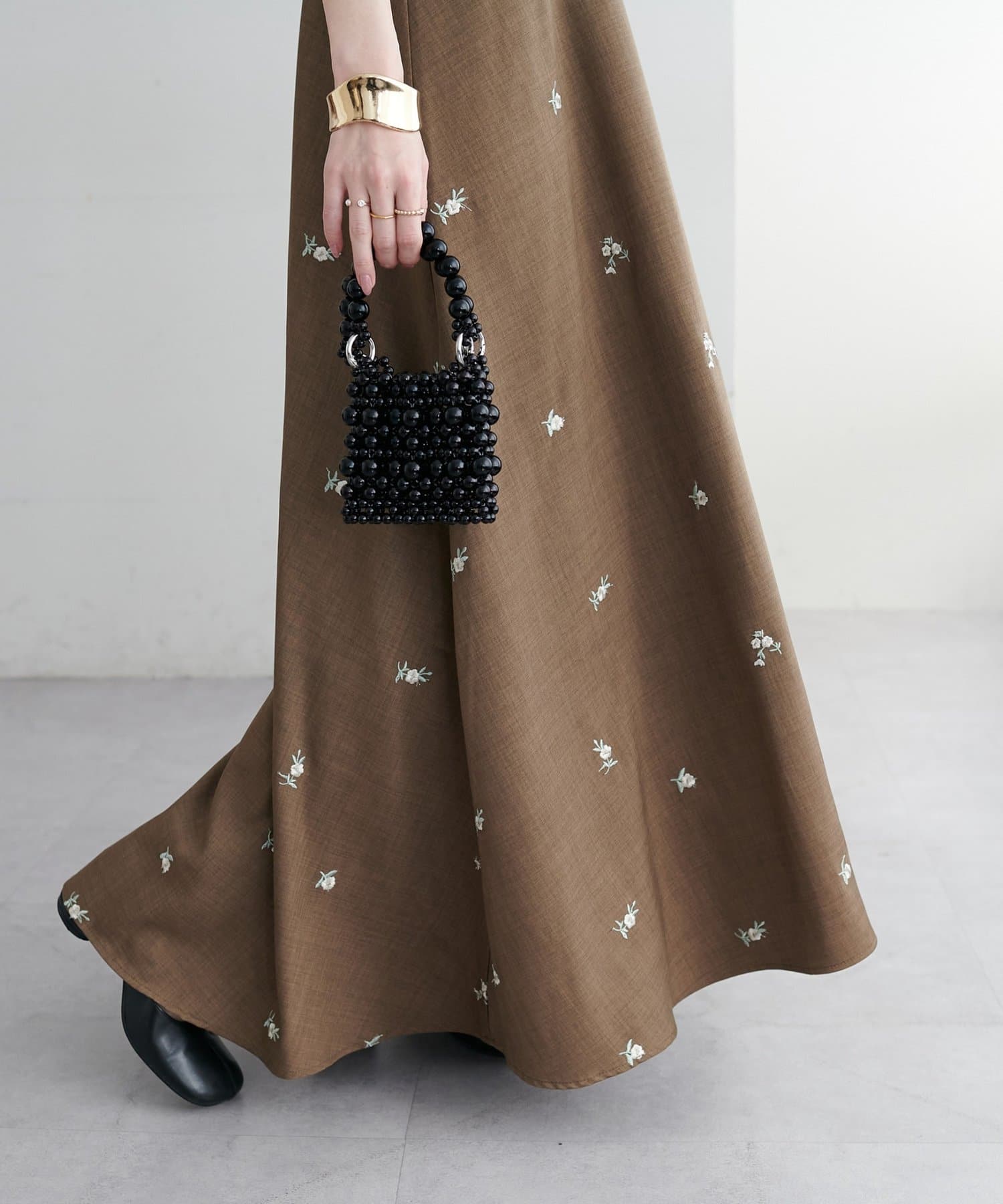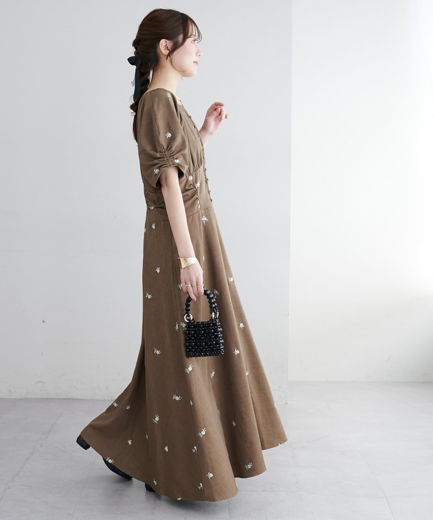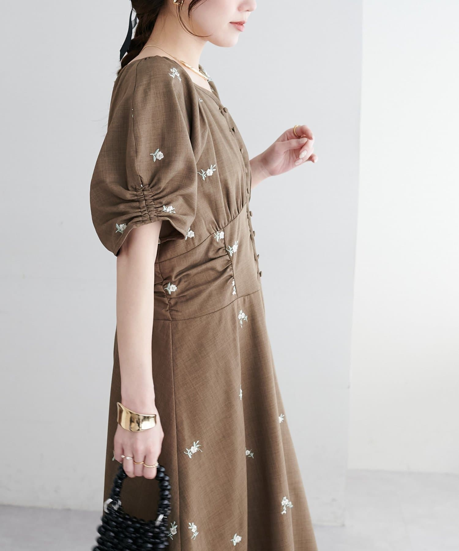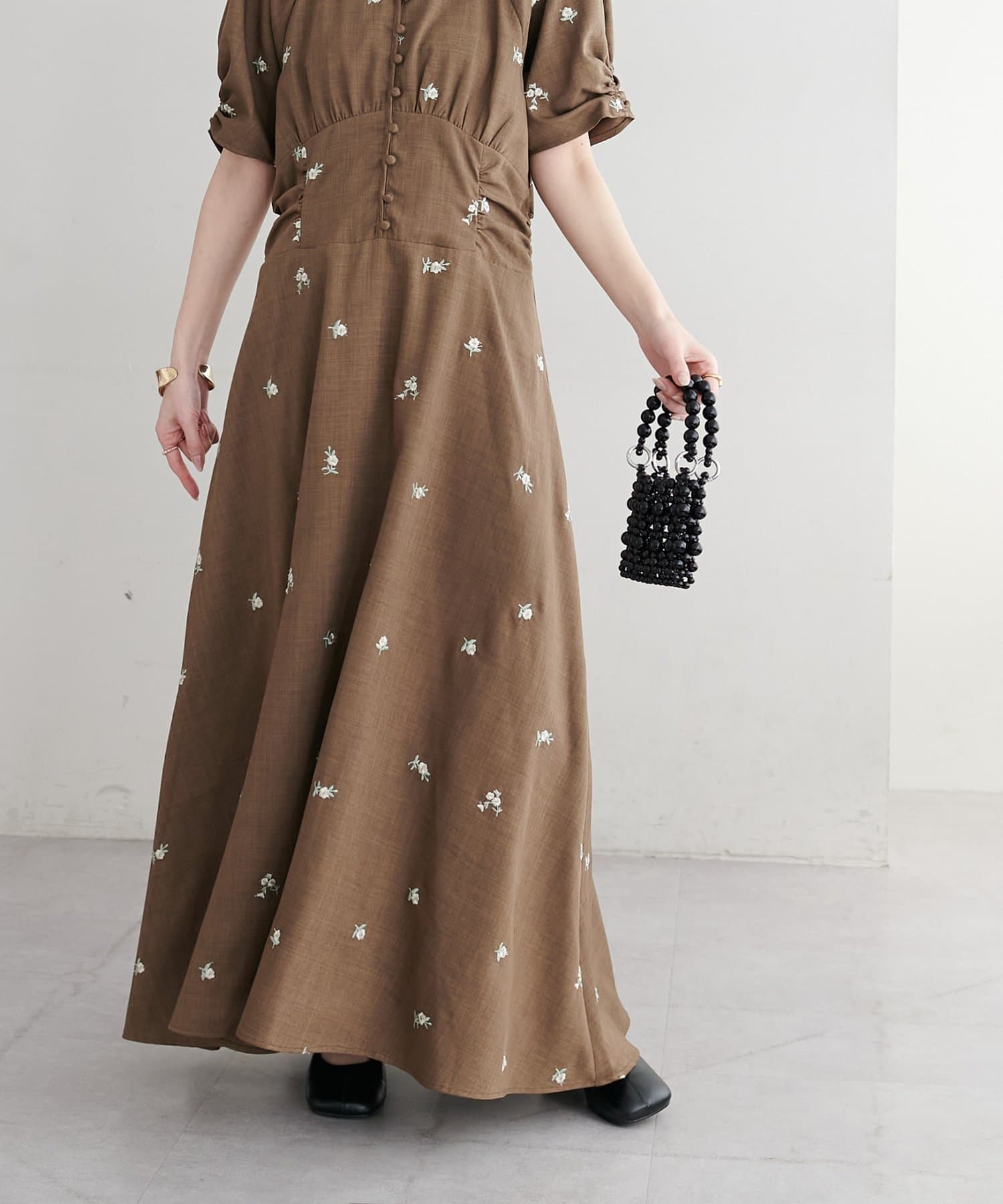 ・花柄の刺繍が華やかさ印象を引き立てます。