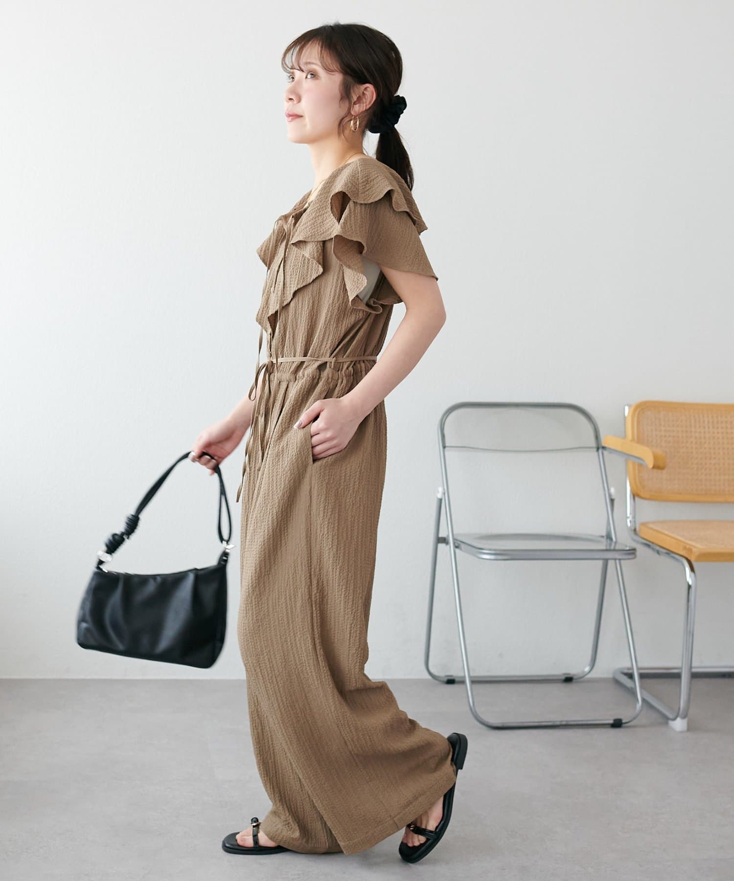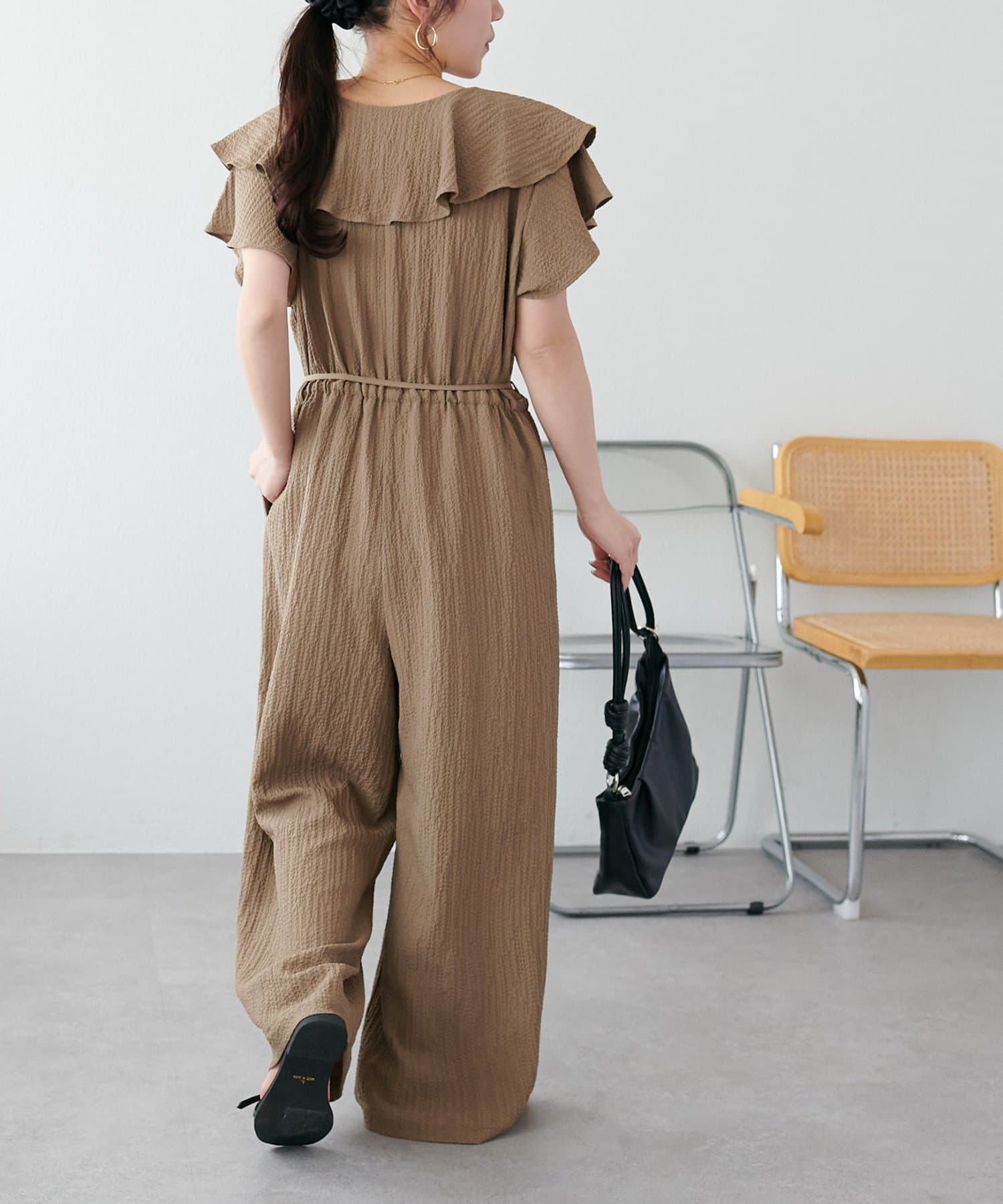ジャガードフリルサロペット
