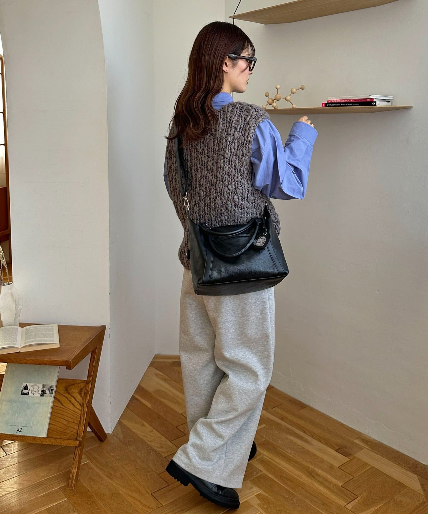 28cmの広めのマチは、お仕事に欠かせない手帳やペットボトル・大きめポーチまですっぽりと収まります。