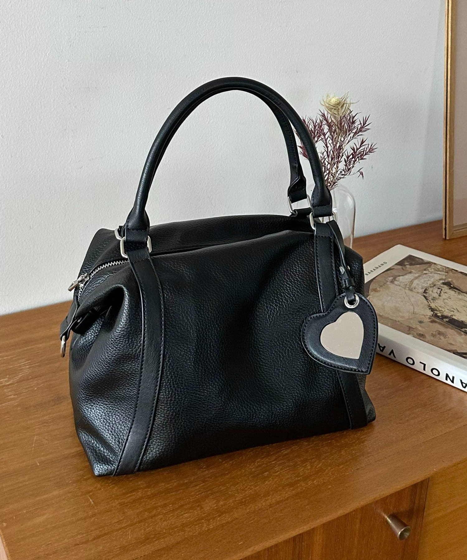 【SNSで話題!】ミラーチャーム付ソフトボストンバッグ《詳細動画あり》