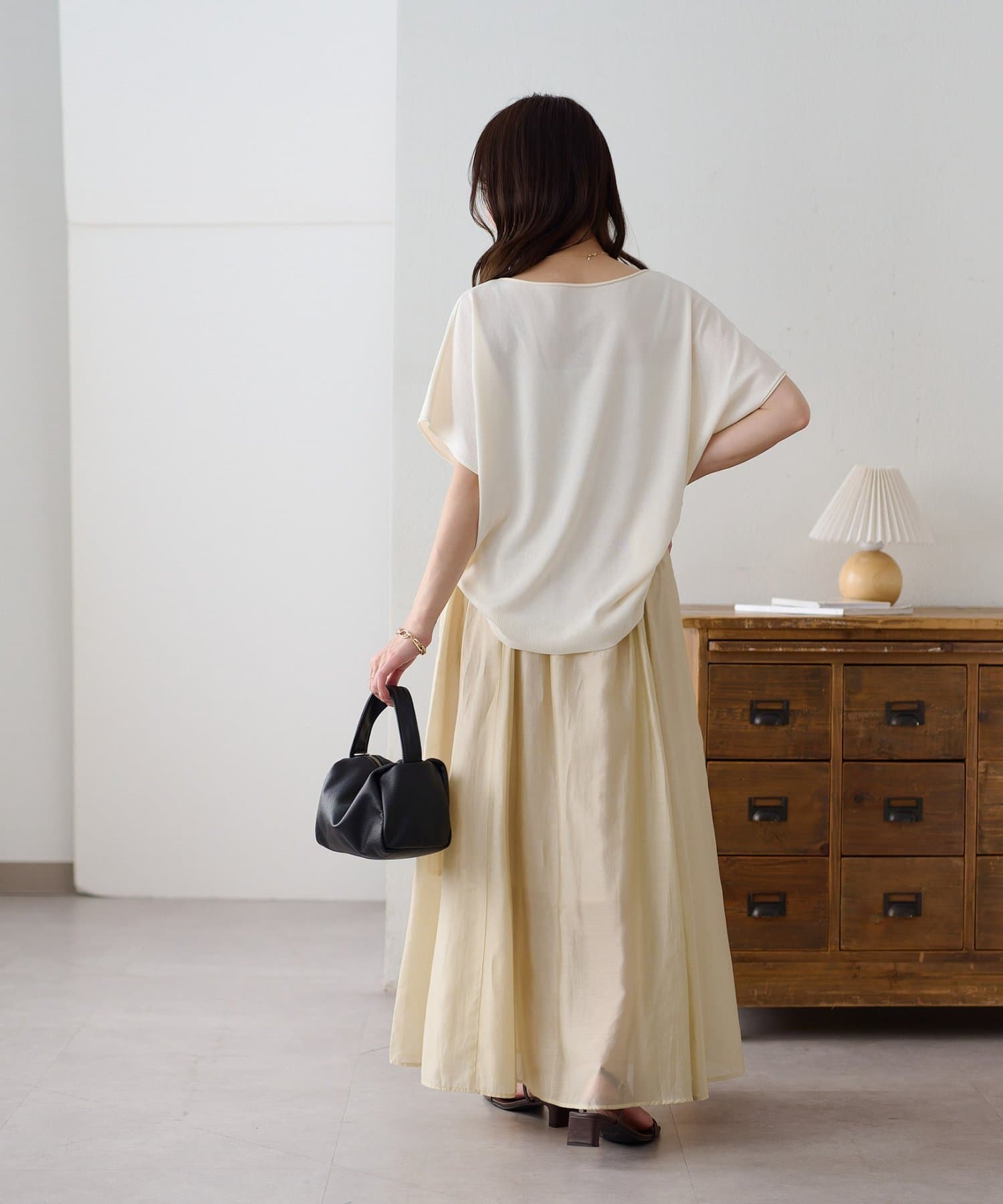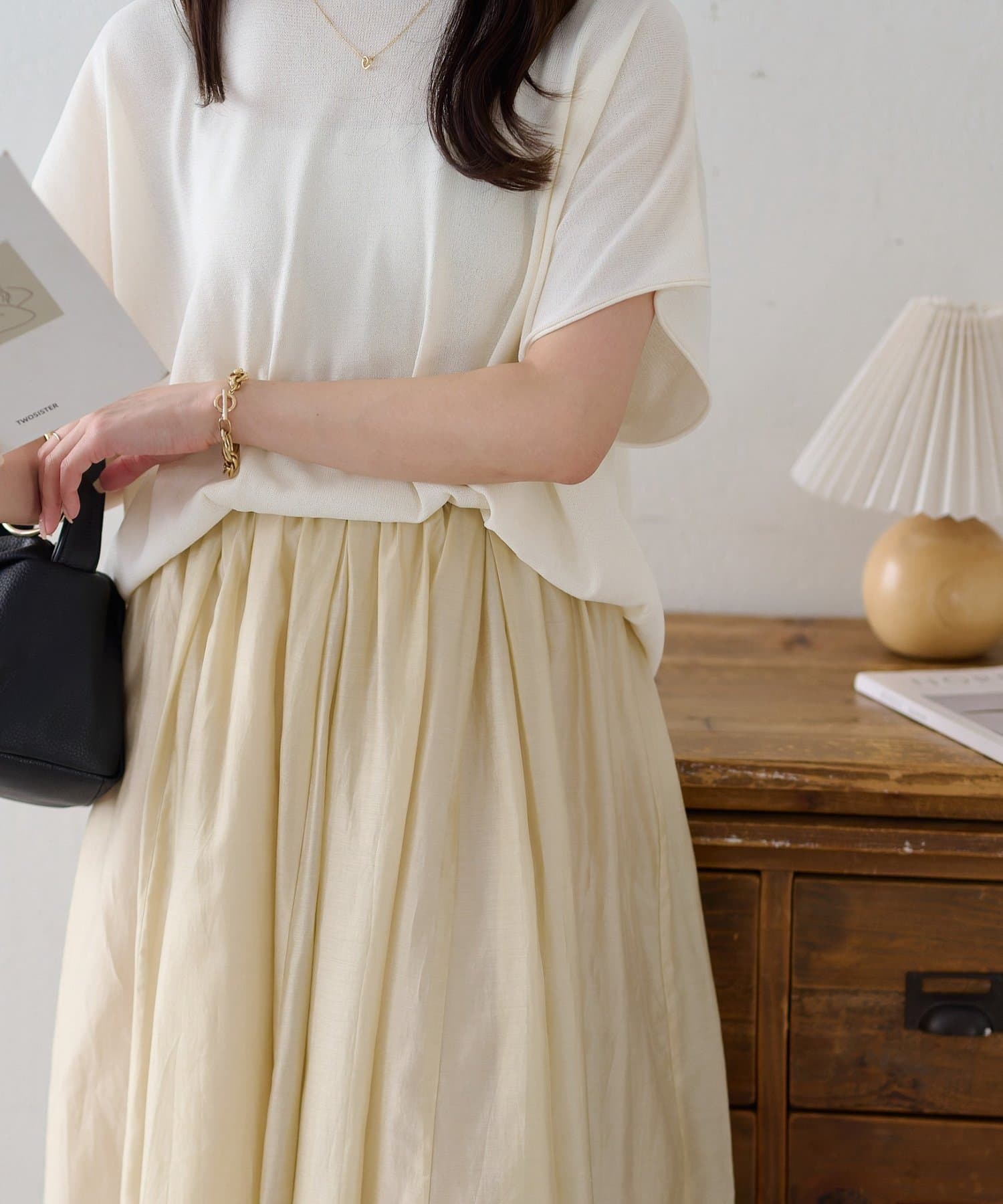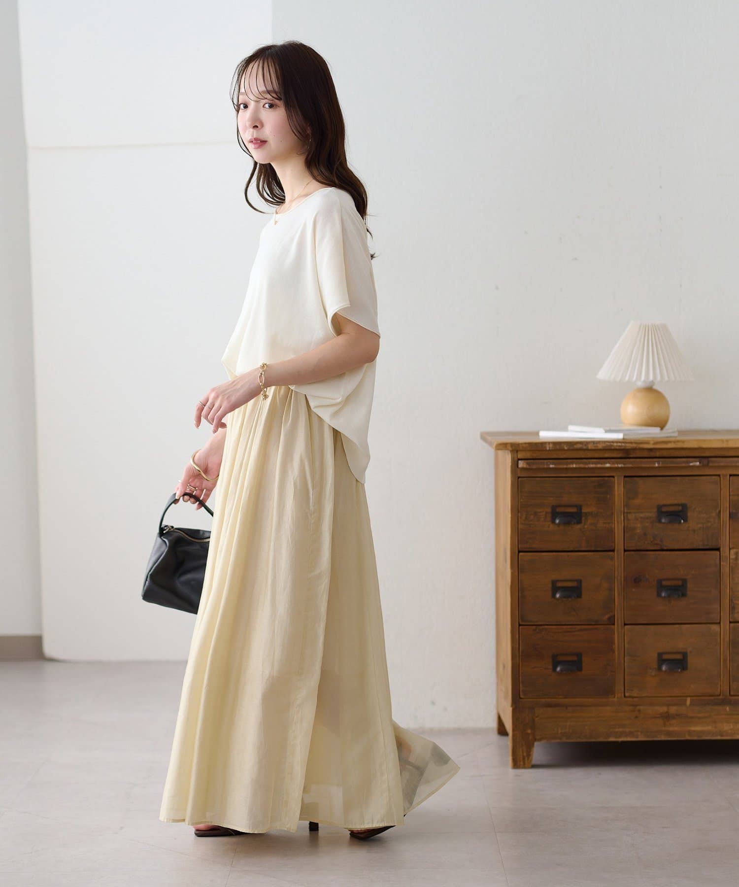 ・ふんわり揺れる軽やかな素材で、女性らしいシルエットを演出