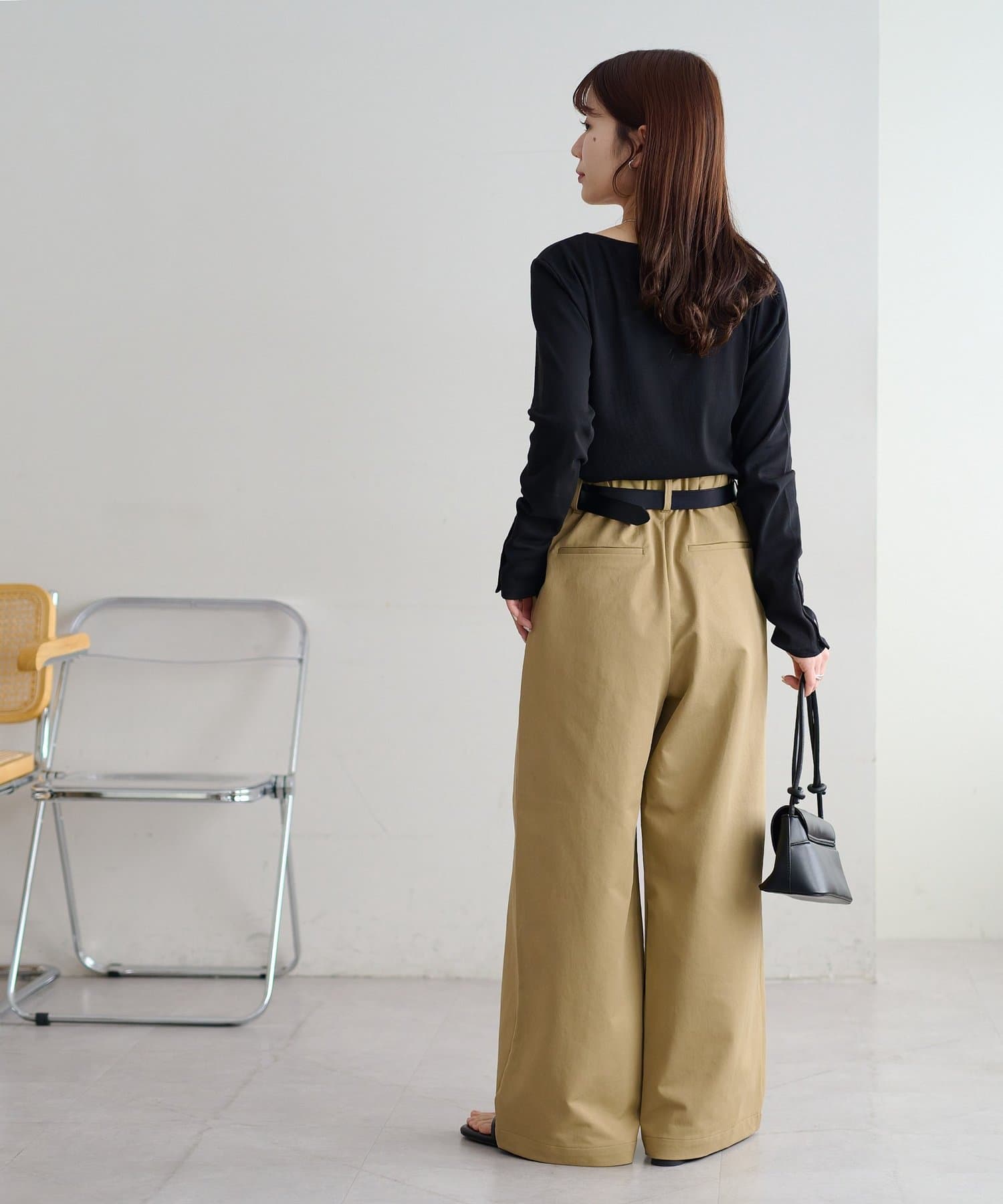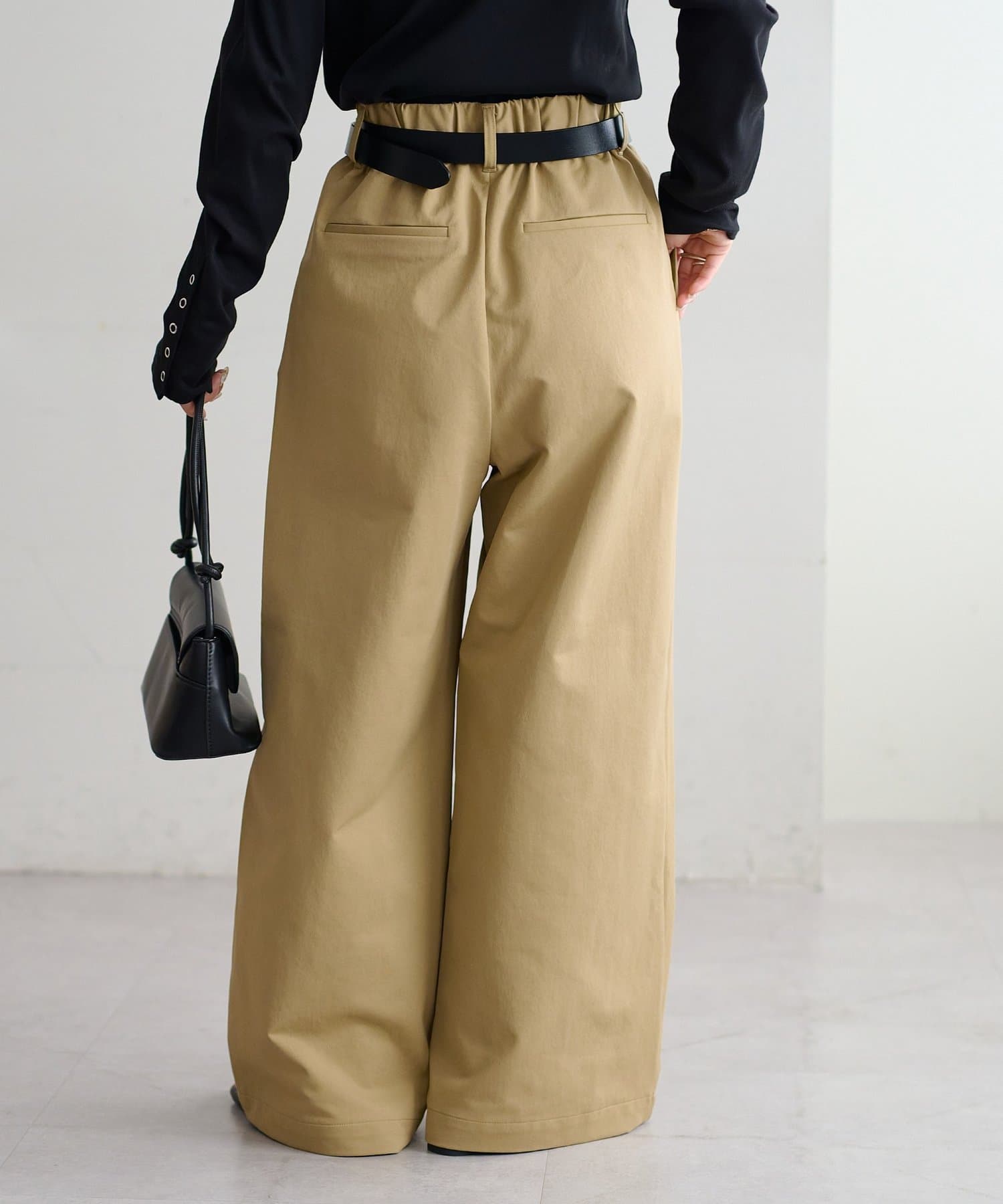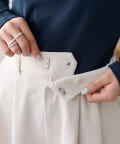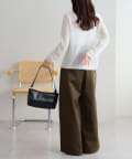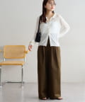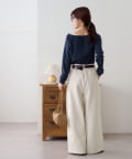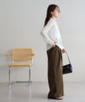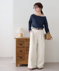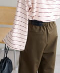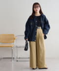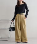 ・腰回りに余裕があるので、ボリューム感のあるトップスをインしたスタイルもごわつきにくく、バランスよく着ることができます!