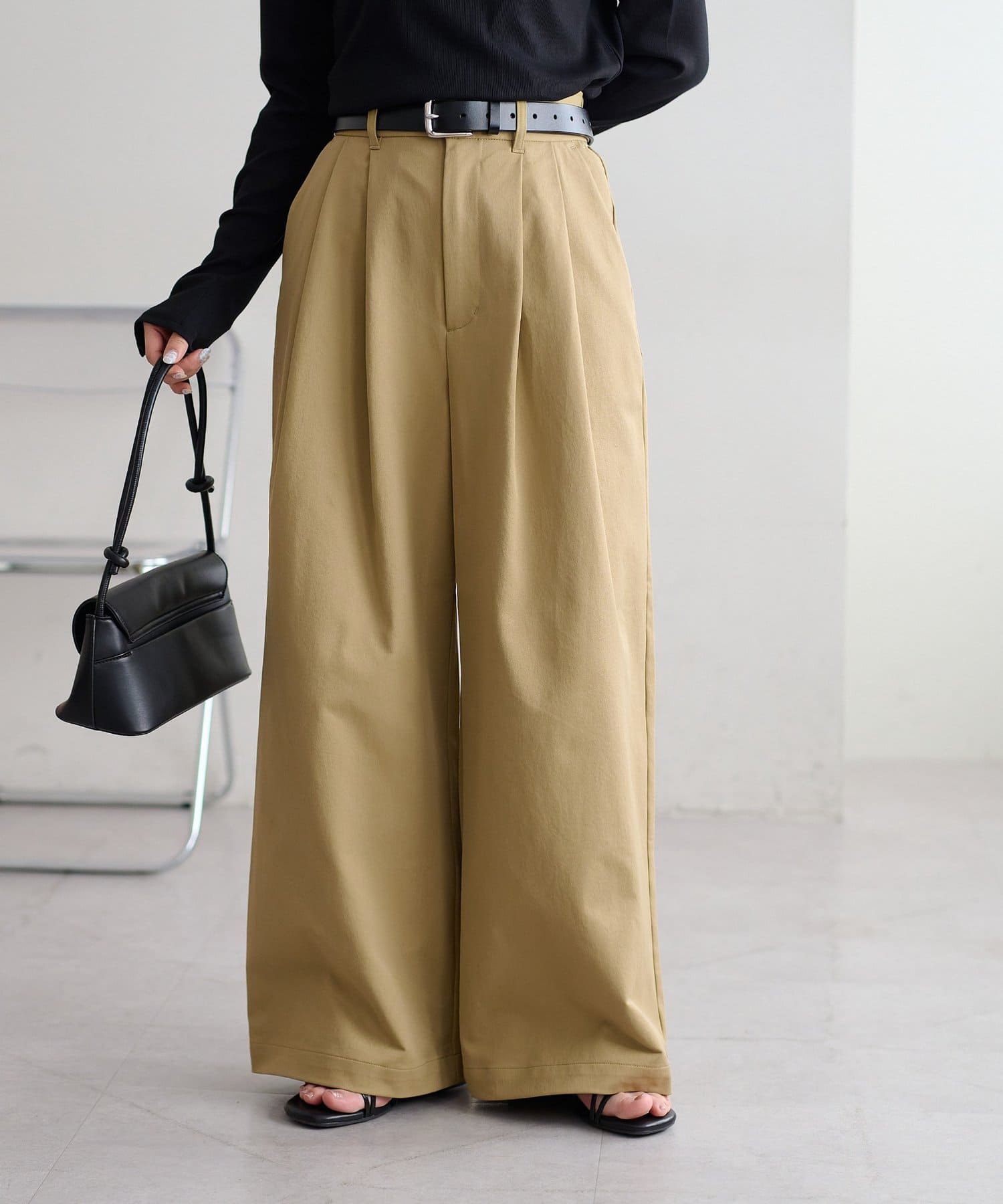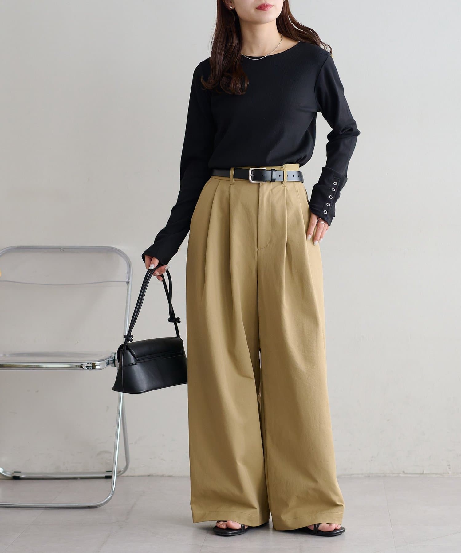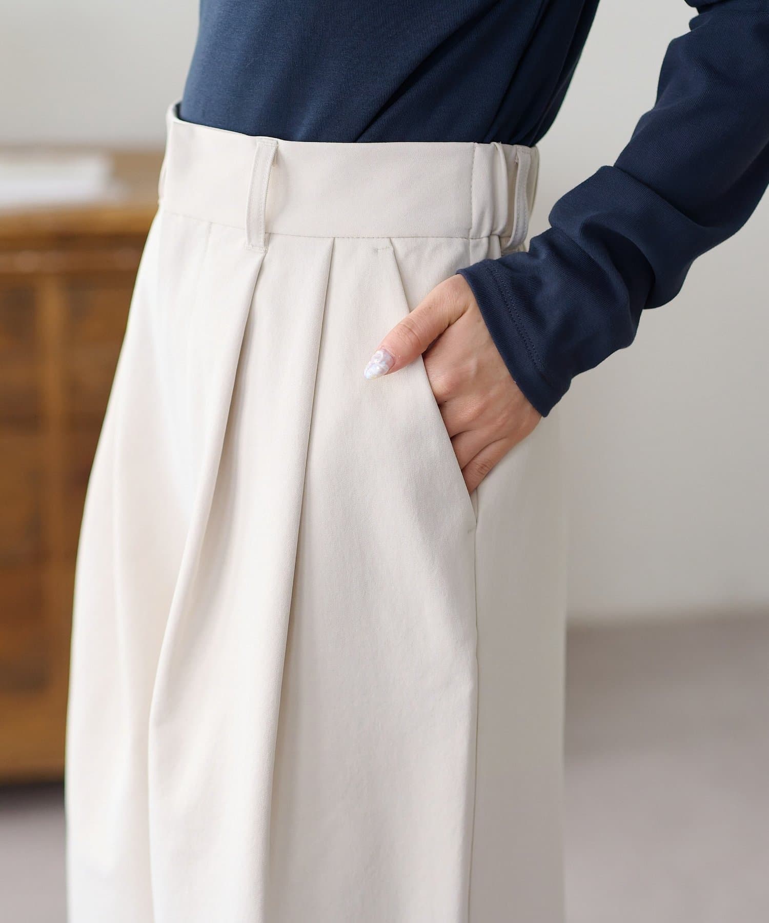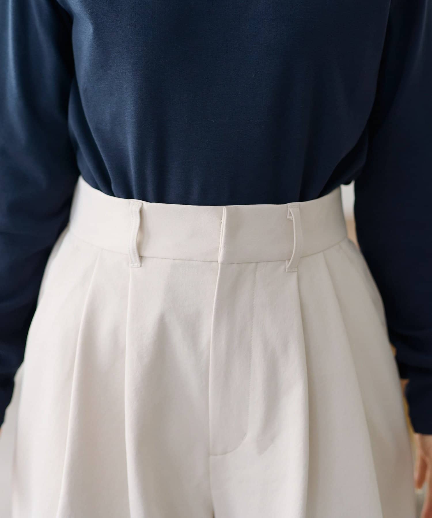 ・2タックが入っていることで、シンプルなトップスを合わせてもこなれ感が出ます。