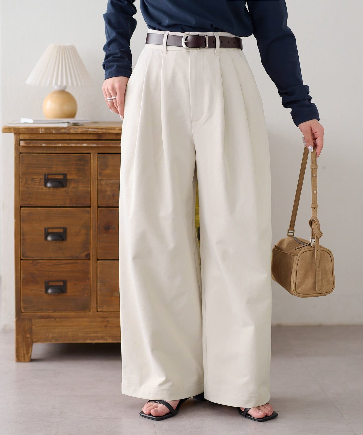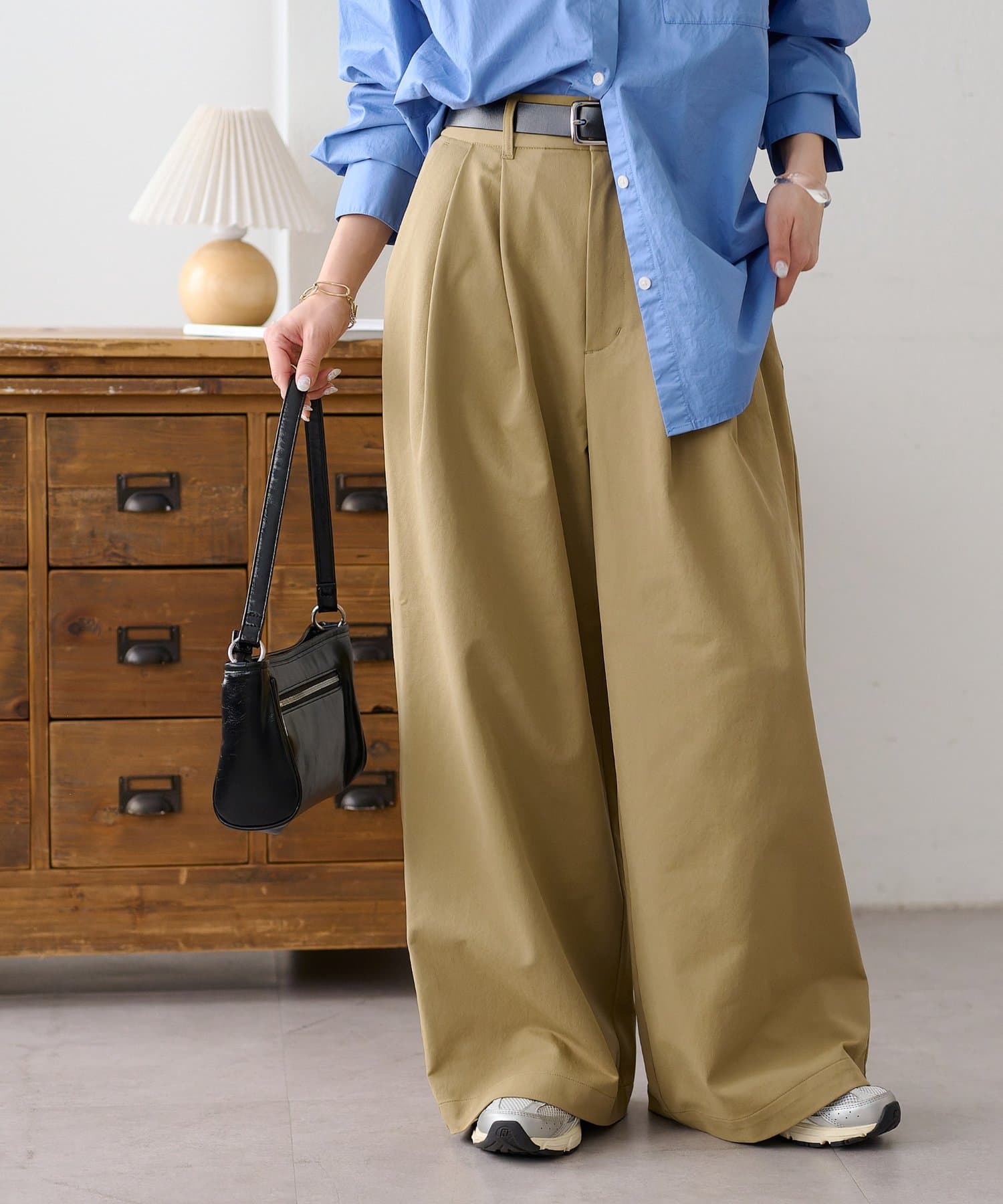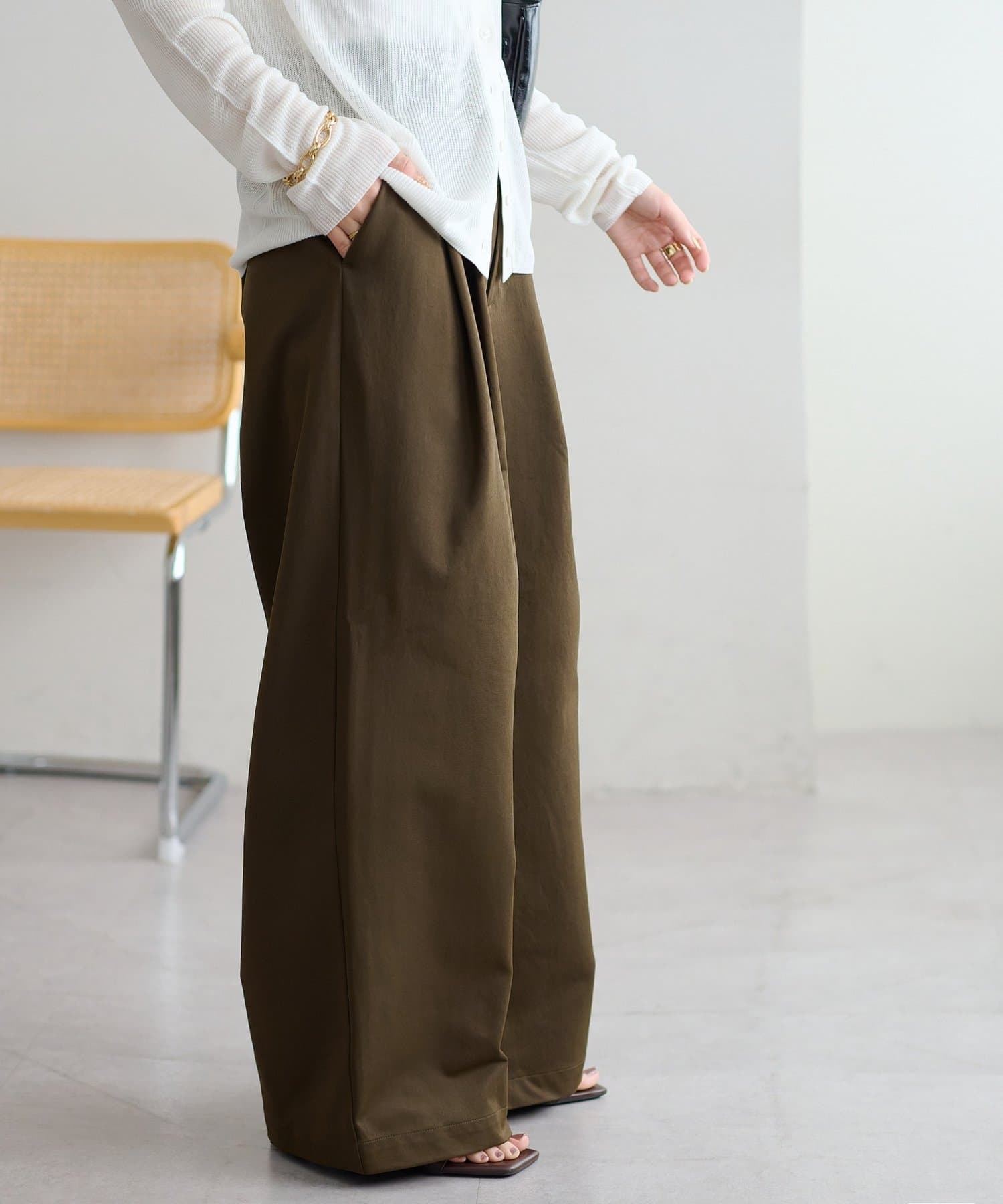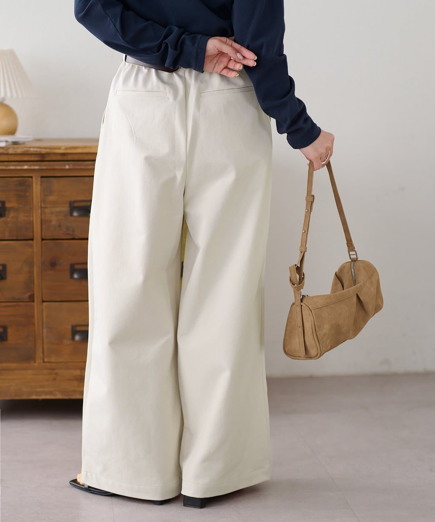 ・2タックが入っていることで、シンプルなトップスを合わせてもこなれ感が出ます。