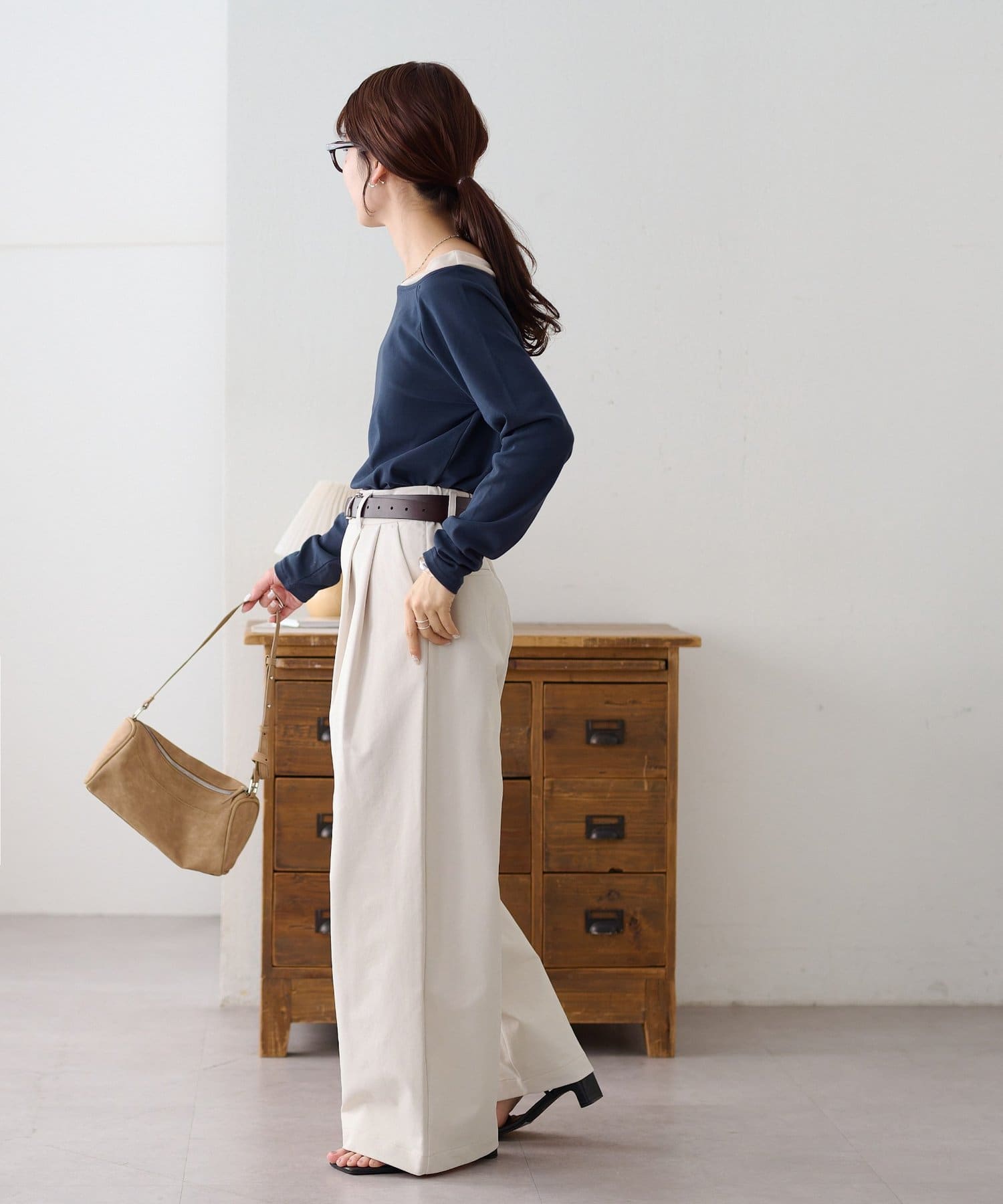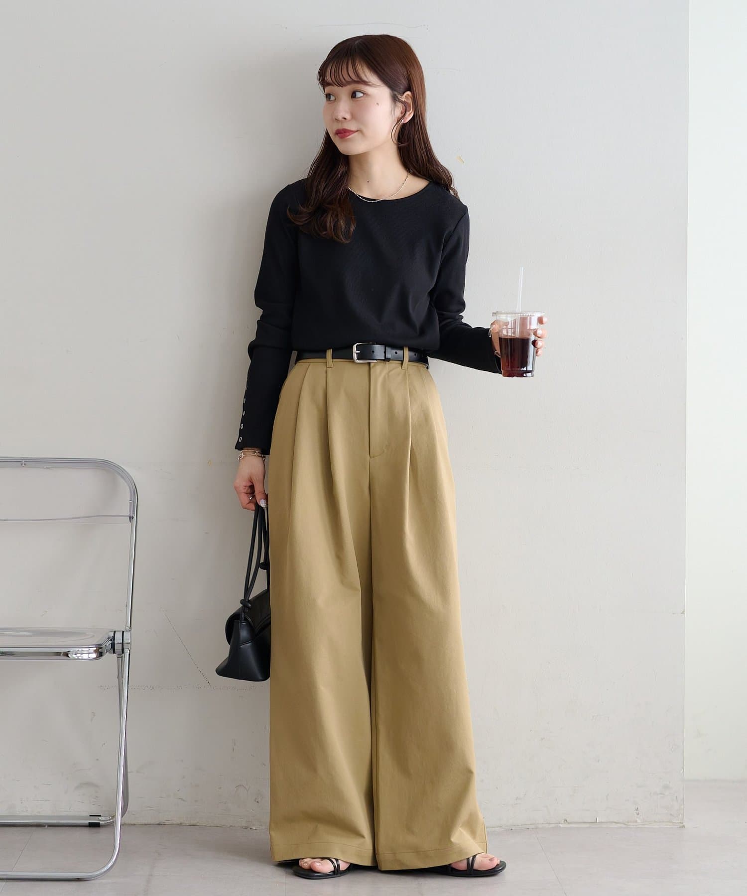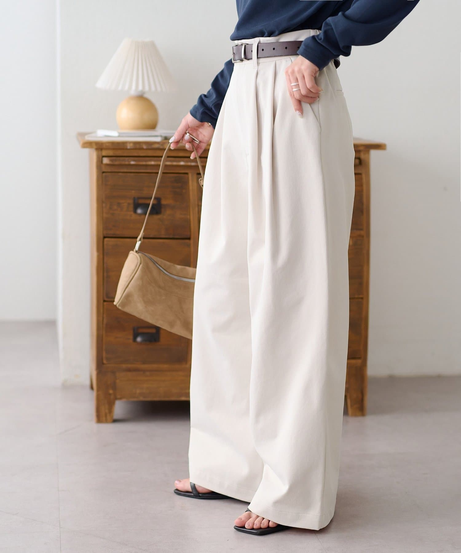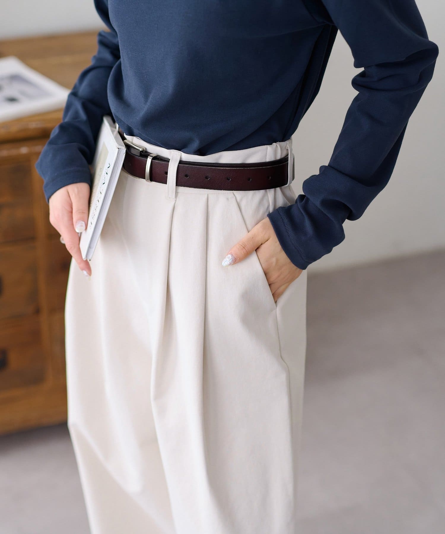 ・2タックが入っていることで、シンプルなトップスを合わせてもこなれ感が出ます。