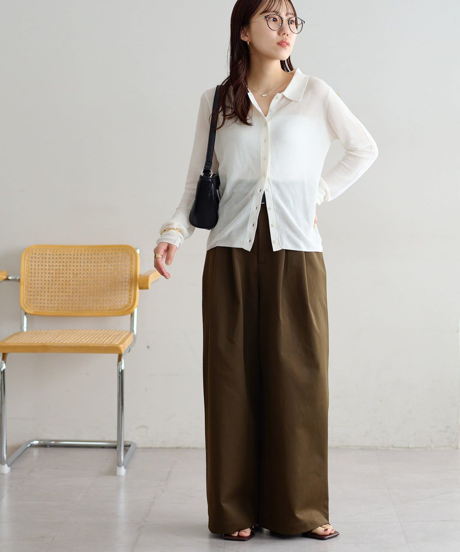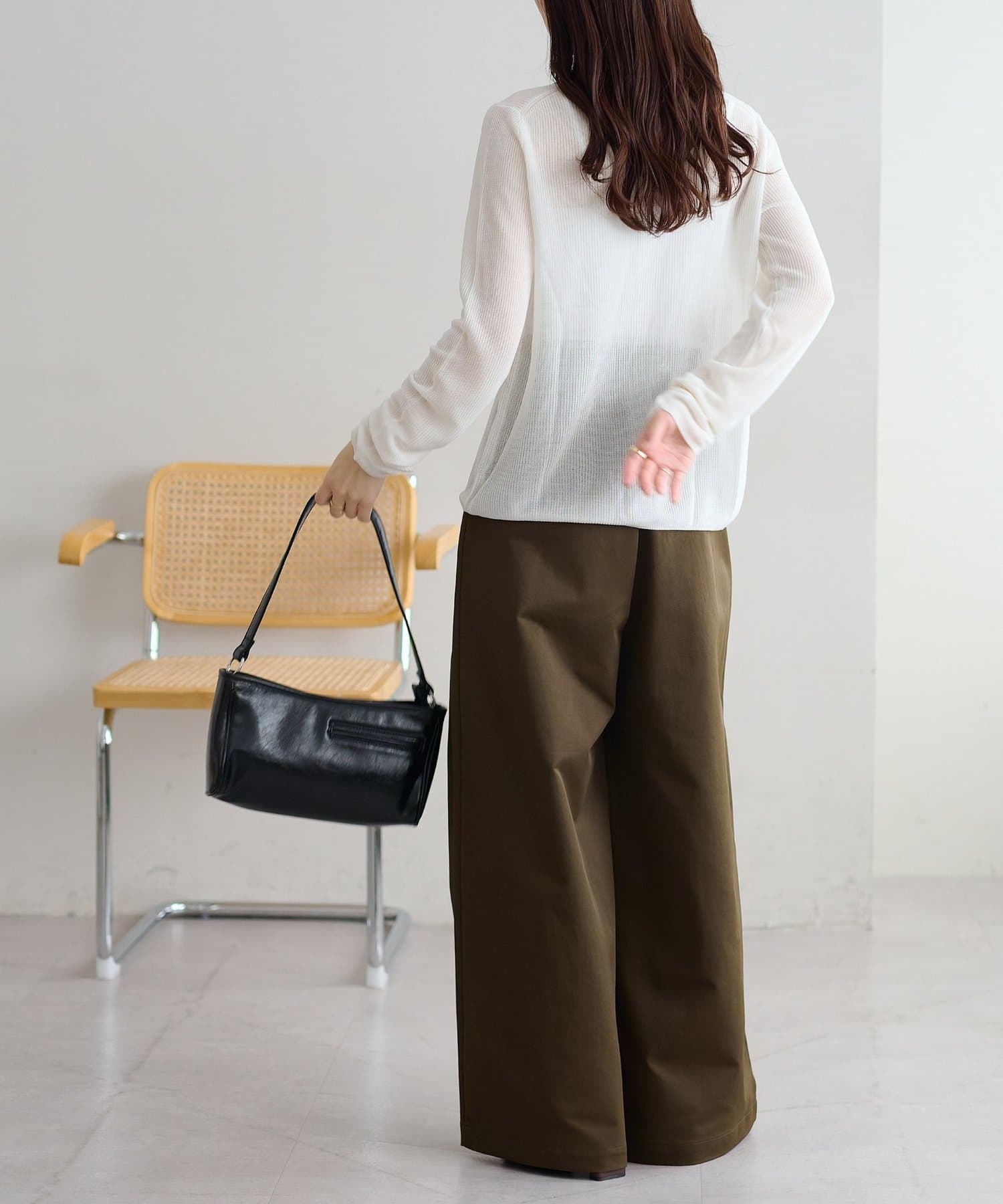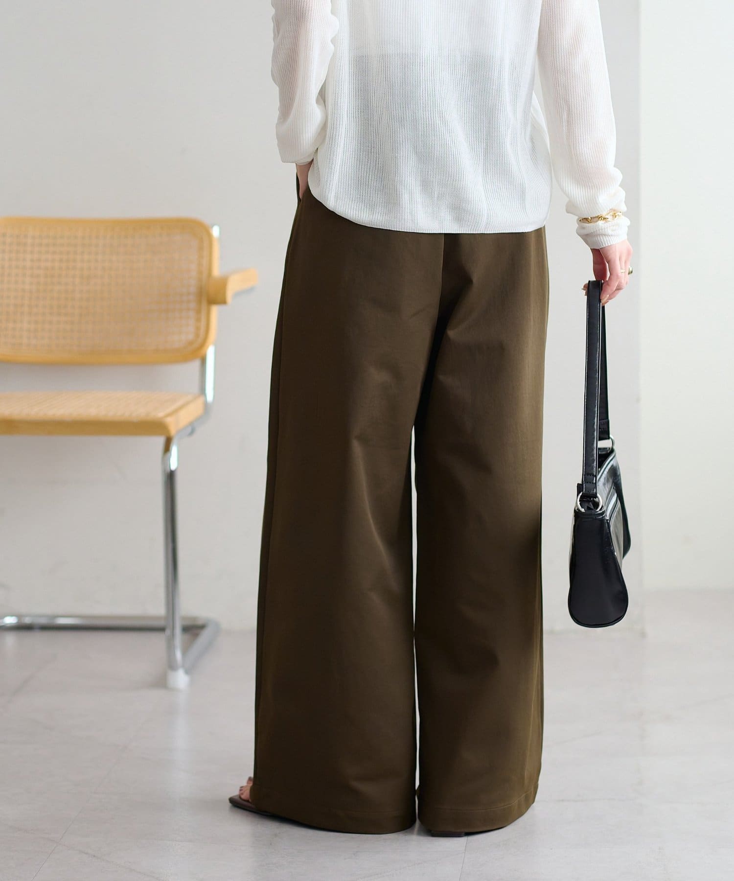 ・下半身のラインを拾わない、美脚効果のあるワイドシルエット
