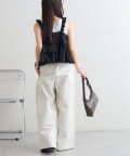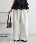・腰回りに余裕があるので、ボリューム感のあるトップスをインしたスタイルもごわつきにくく、バランスよく着ることができます!
