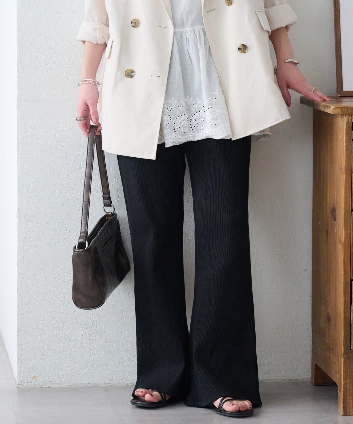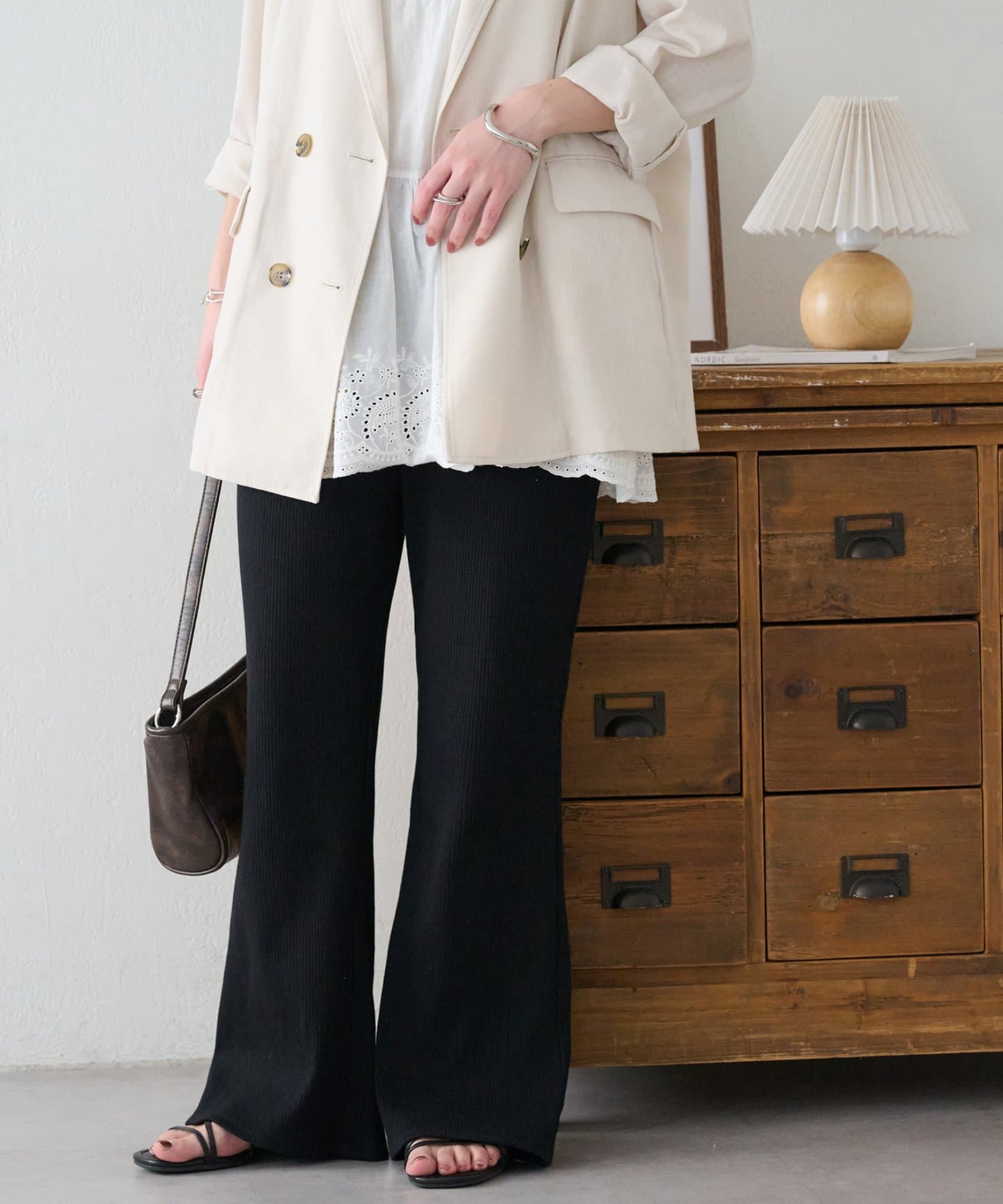 ・リブの縦ライン×スリムフレアのシルエットで美脚が叶う