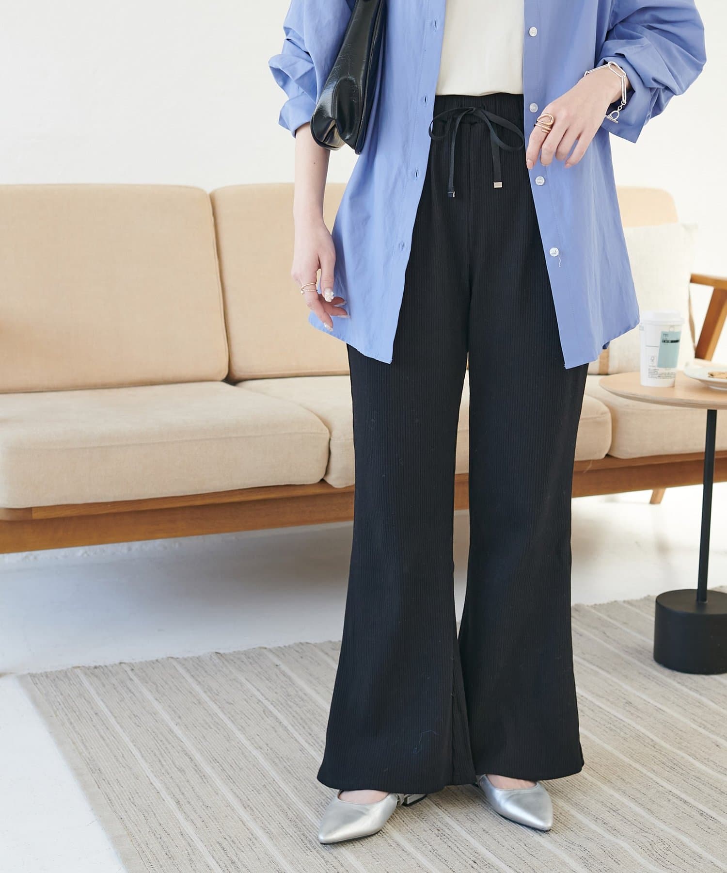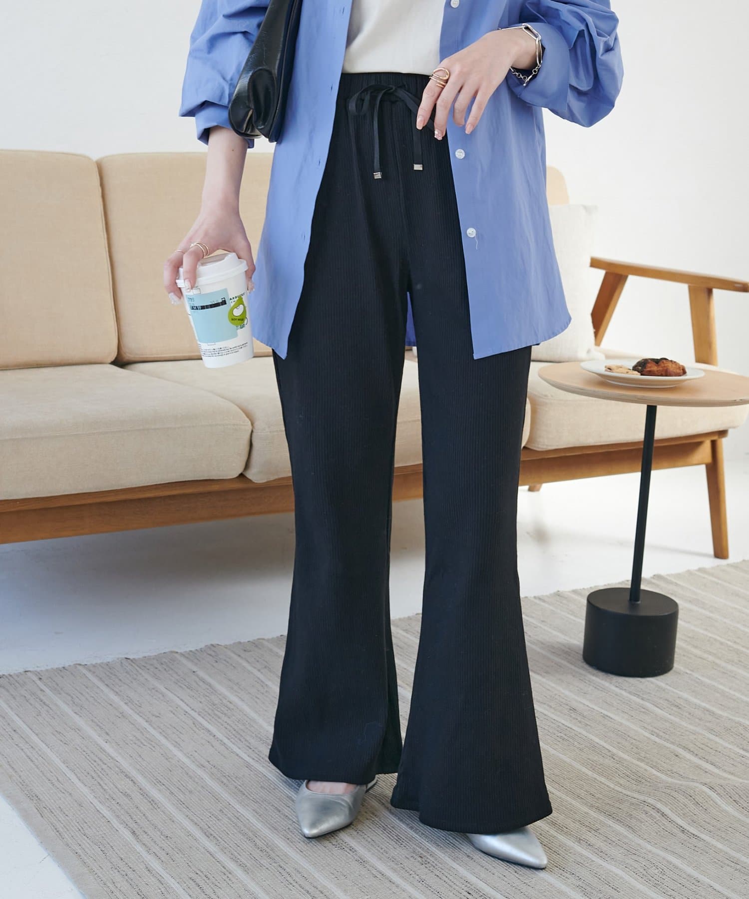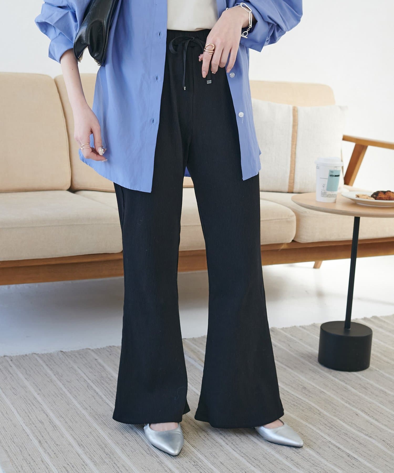 【WEB限定】リブフレアパンツ