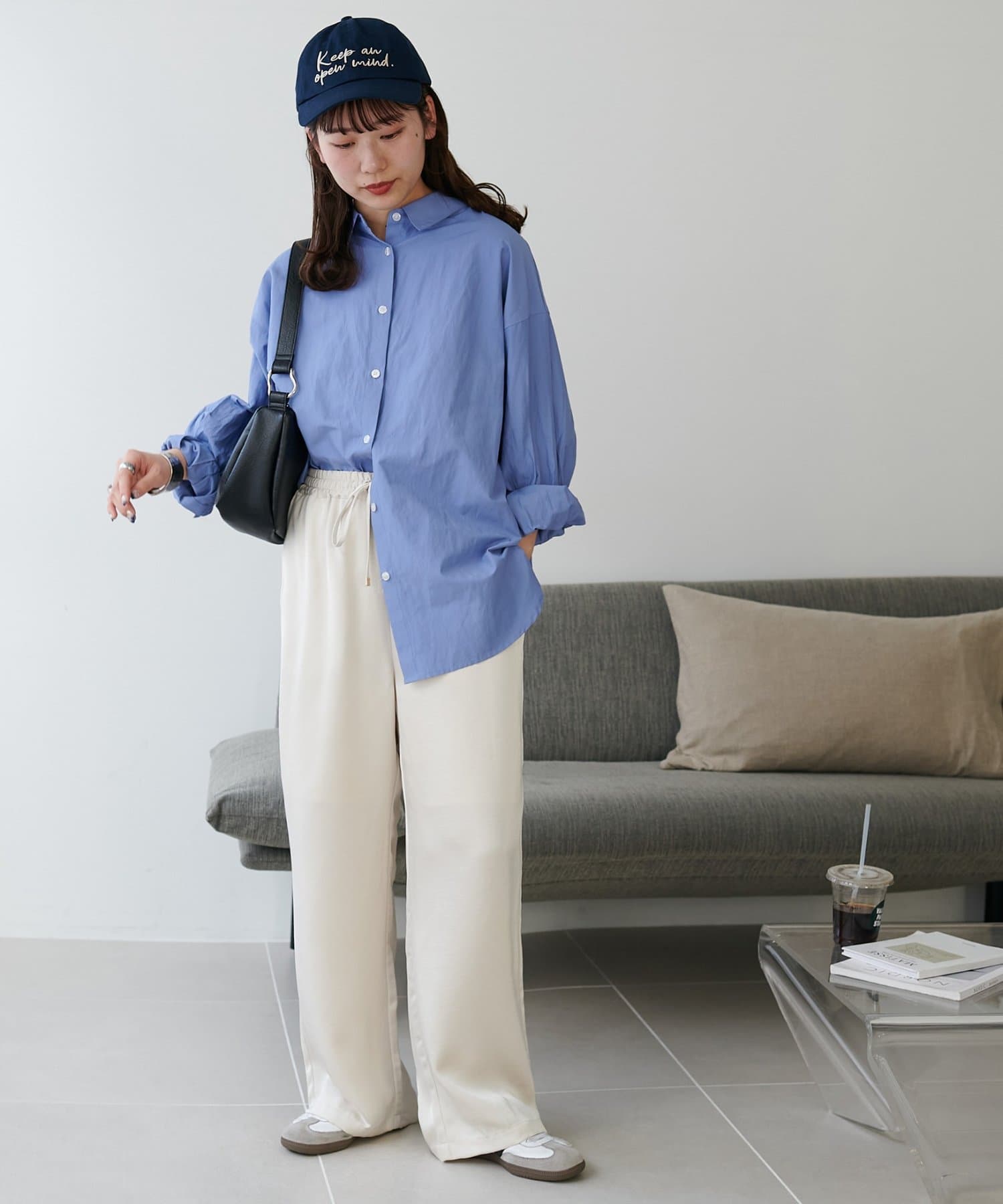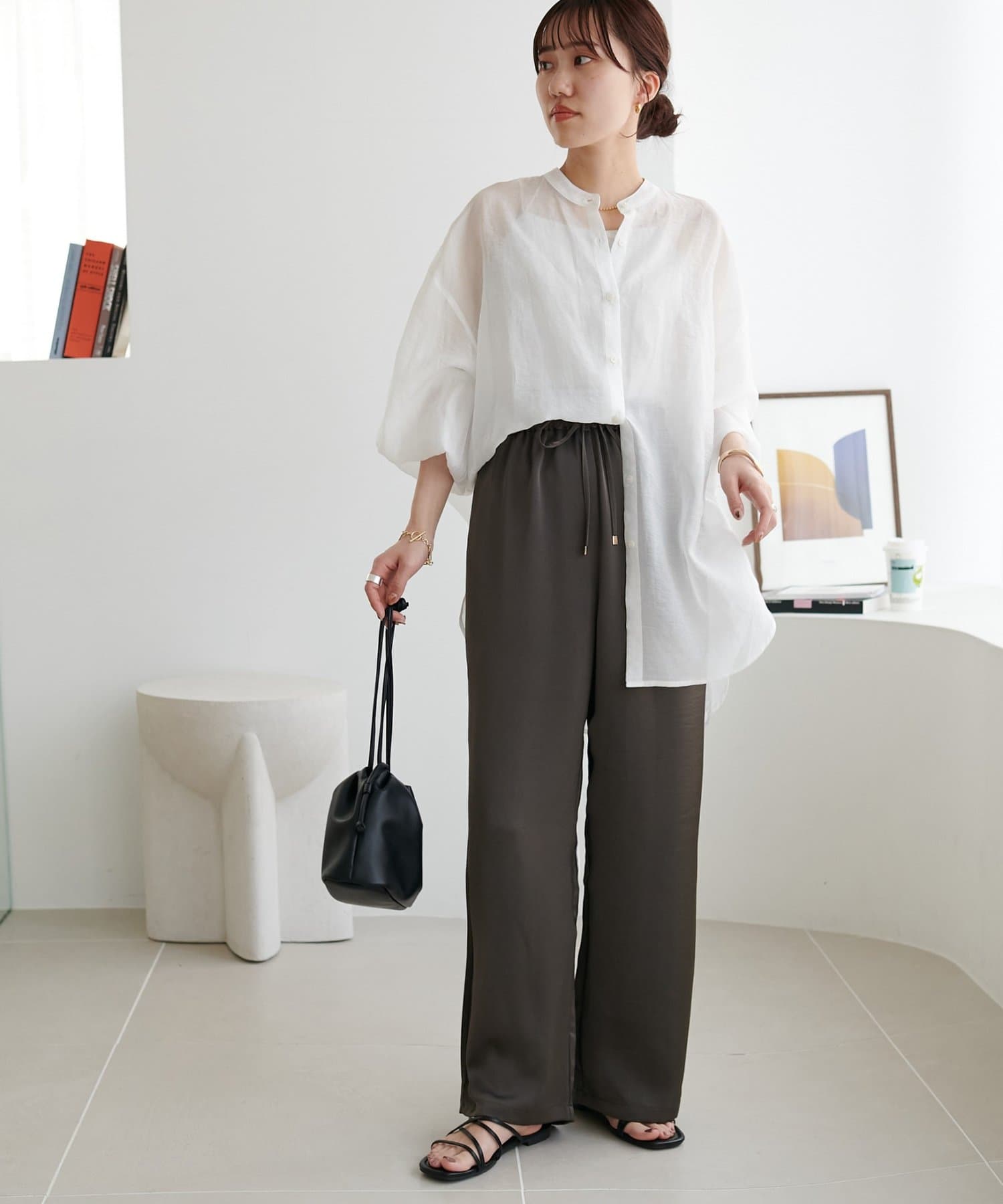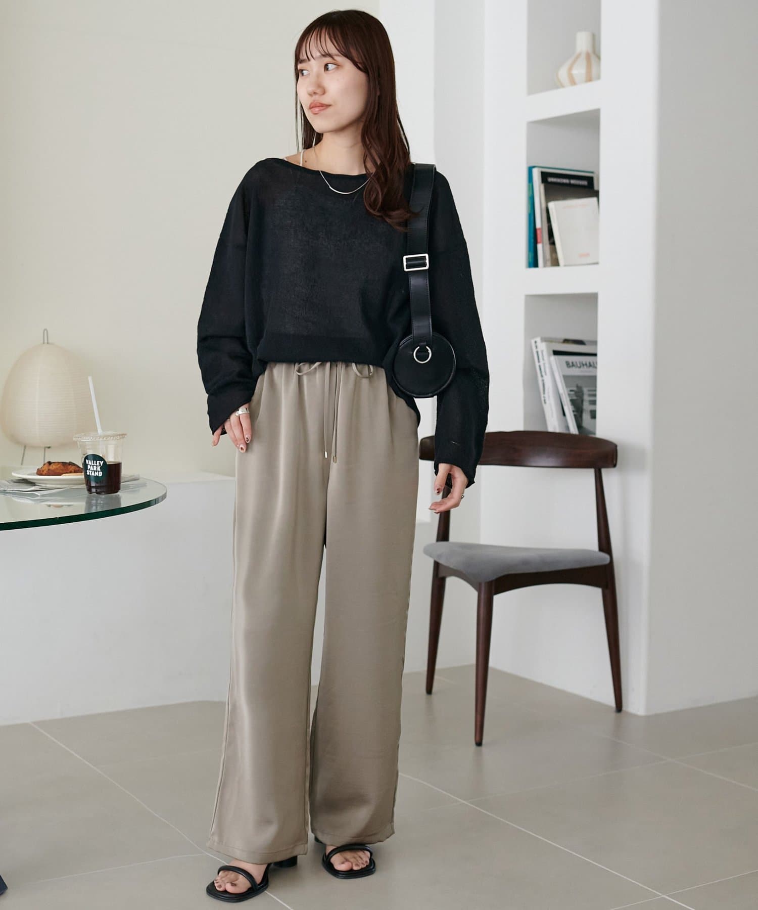 リラックス感のあるワイドシルエットながら、すとんと落ちる生地感でラフすぎず大人な印象に。