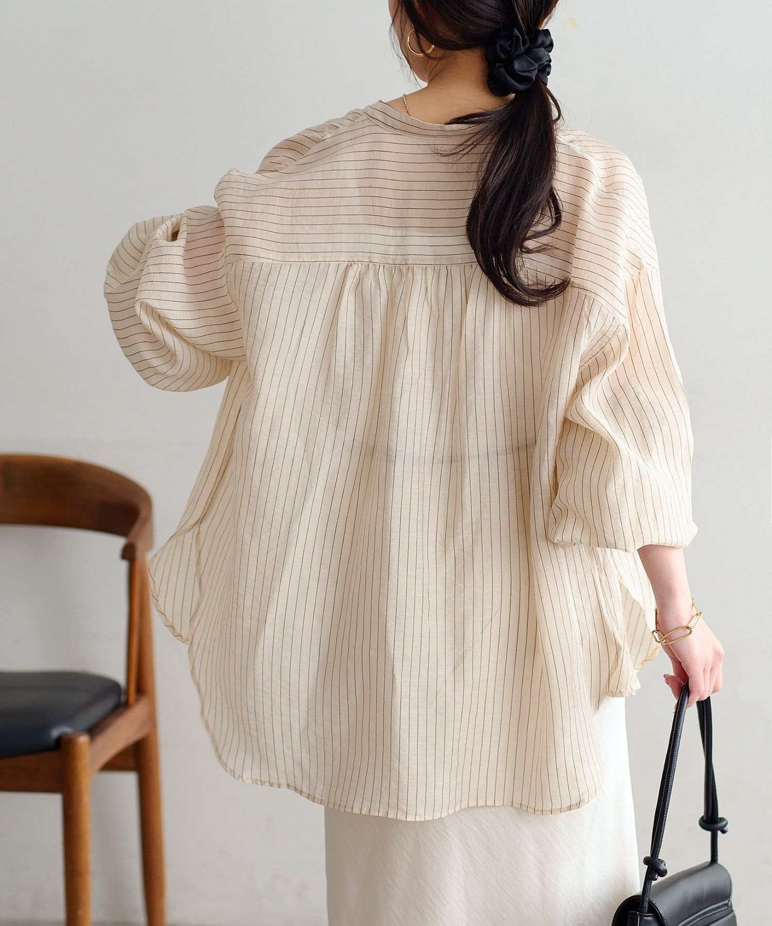 軽やかな透け感で魅せる、大人のシアーストライプシャツ